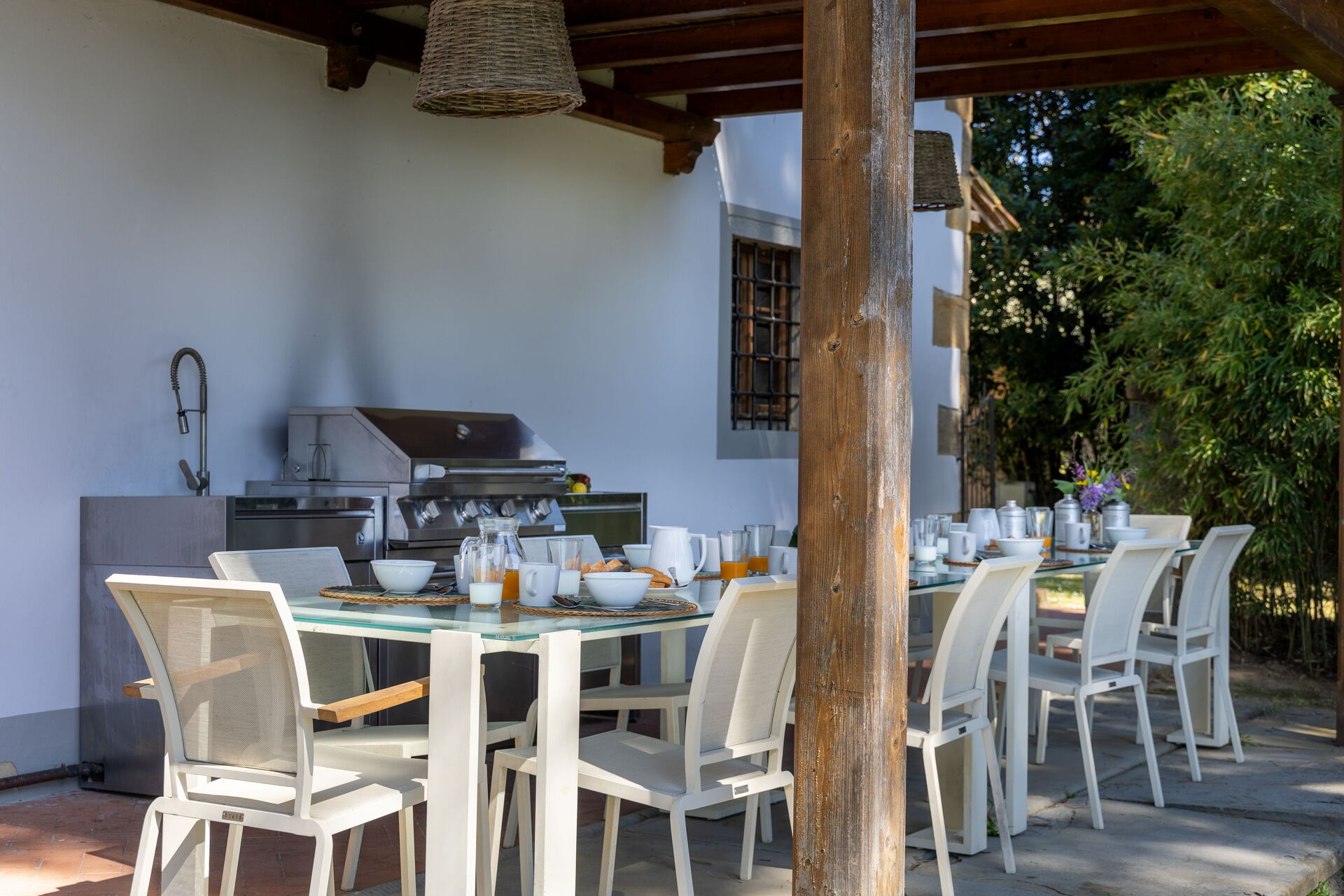 - Véranda aménagée avec cuisine extérieure et espace barbecue.