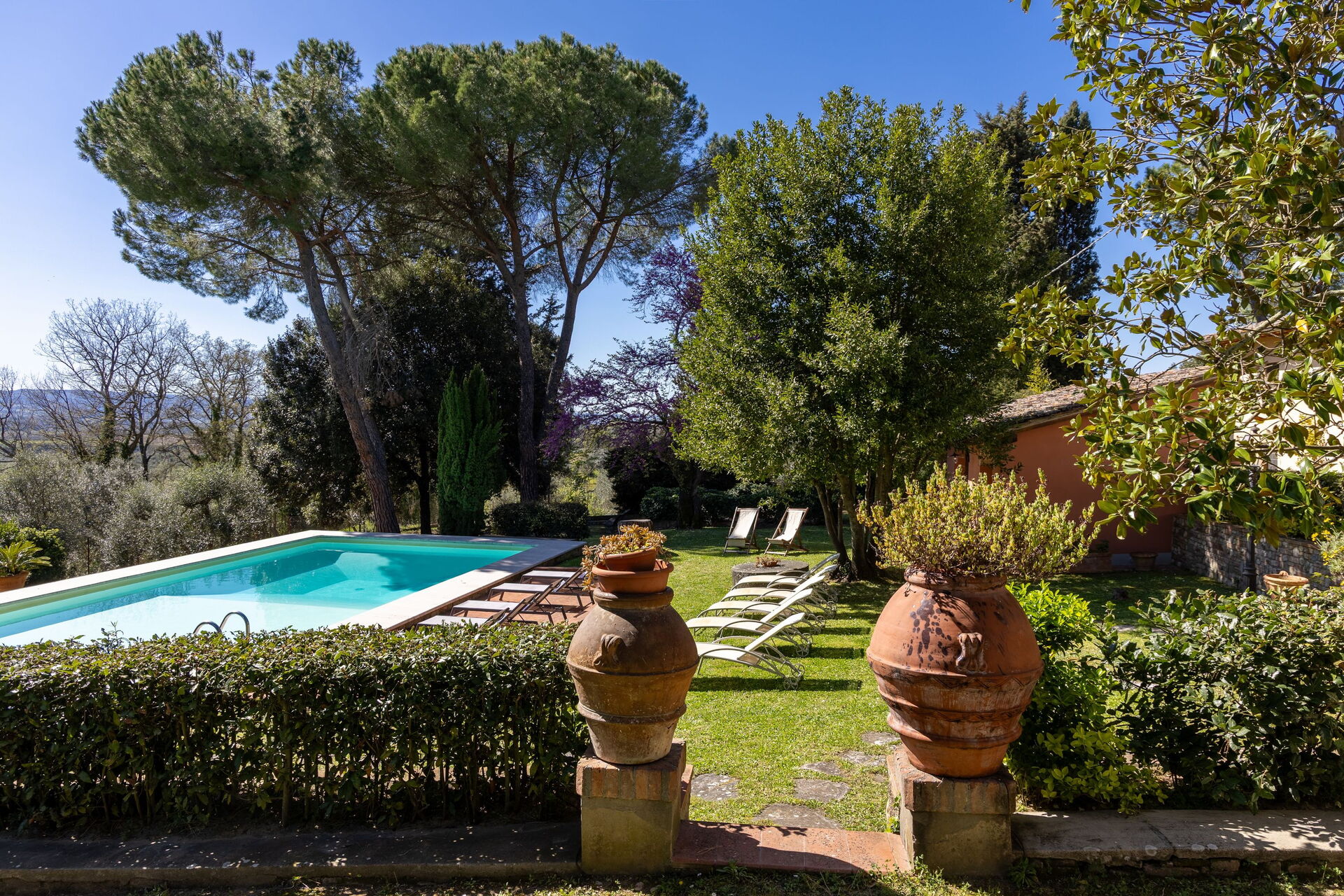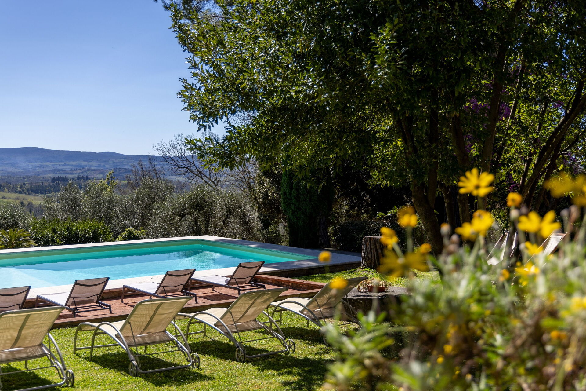 Exceptionnelle la maison, son jardin, sa piscine et sa vue, au milieu des oliviers avec une vue sur le village de San gimignano. Un vrai coin de paradis ❤❤❤