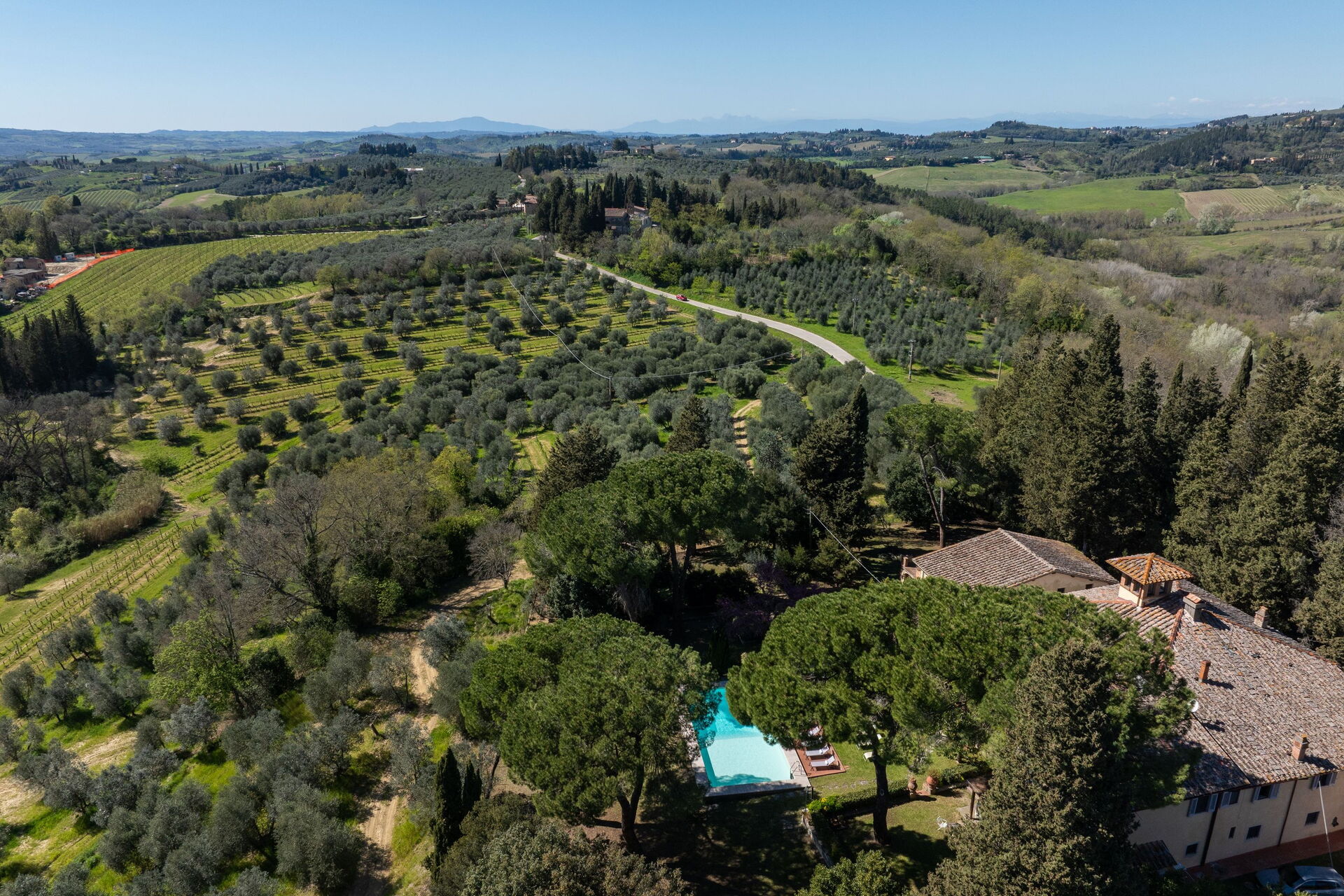 Lovely setting amidst olive groves, peaceful with beautiful views of the Tuscan hills. There were 13 of us and we had more than enough space for privacy when desired, and many indoor and outdoor gathering places to choose from when we wanted to be together. Full kitchen, nicely appointed bedrooms and sparkling clean remodeled bathrooms. Excellent restaurant up the street that we frequented twice, Paese di Campenelli, and easy access to Certaldo for groceries. Don't miss Certaldo Alto charming hill town and home to 14th century writer Boccaccio. Highly recommend for families and groups.