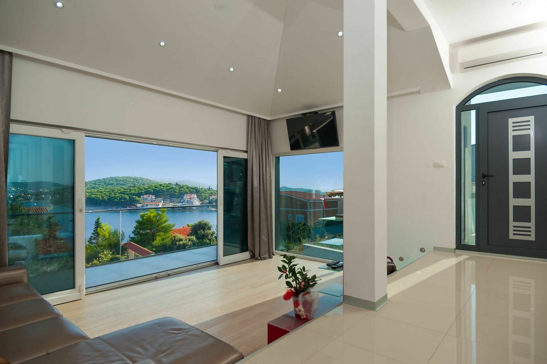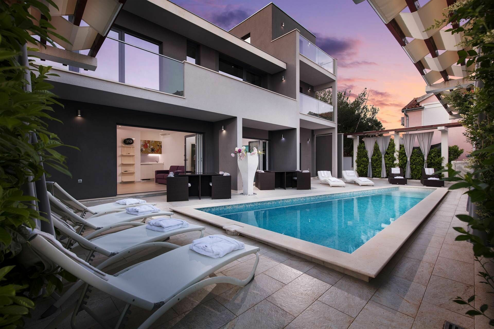 Si vous cherchez une maison de luxe pour passer vos prochaines vacances en Croatie, Villa Martinis est faite pour vous. Cette splendide propriété est divisée en 4 appartements à louer à un seul groupe pour garantir privacy et tranquillité à ses hôtes. Grâce à ses 4 chambres à coucher, la villa peut accueillir jusqu'à 8/15 personnes dans dans un cadre élégamment meublé et décoré avec des objets de design et artistiques. La villa est dotée de tout le confort moderne et le luxe comme : home cinema, air conditionné, connexion Internet Wi-Fi et appareils électroménagers de dernière génération.