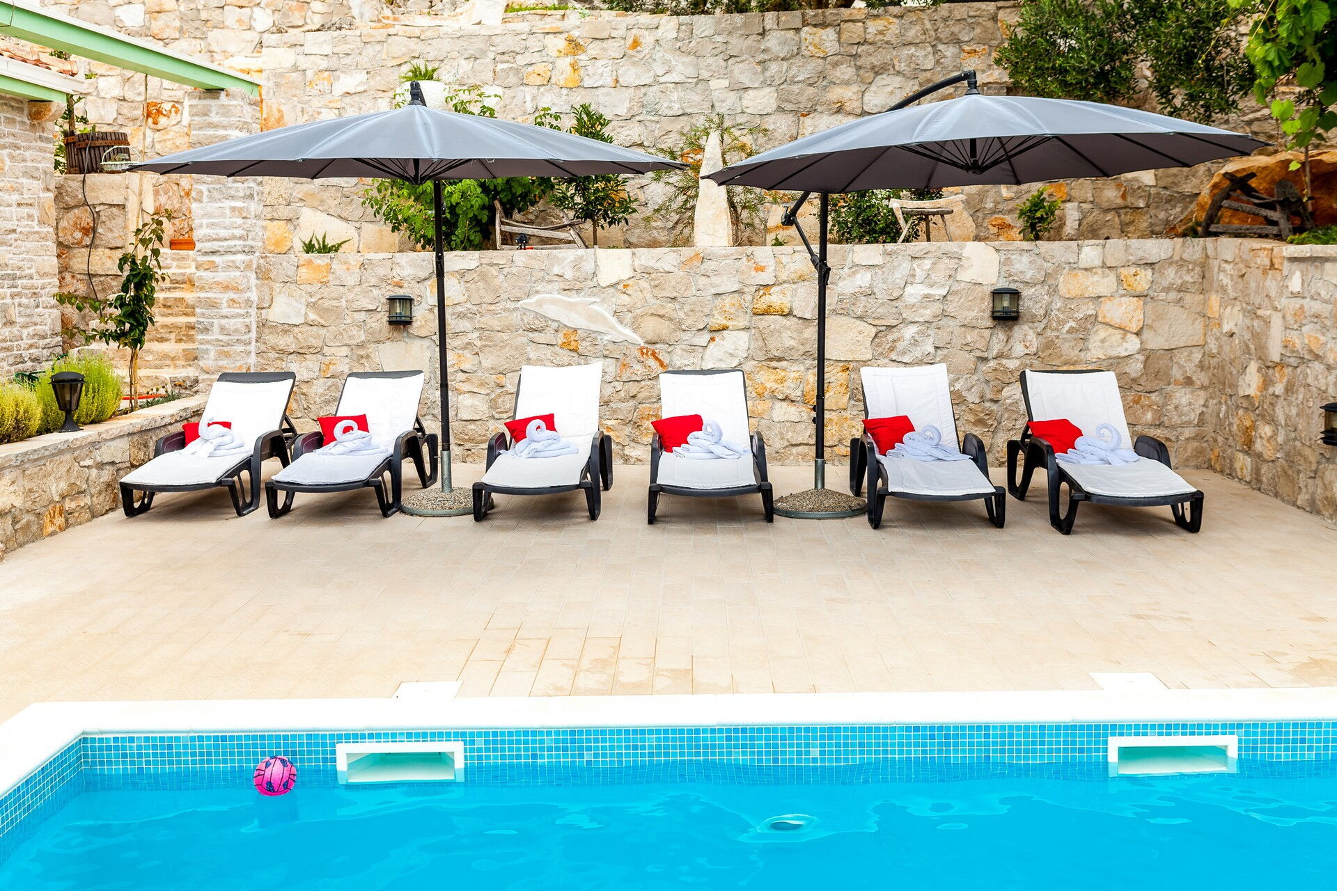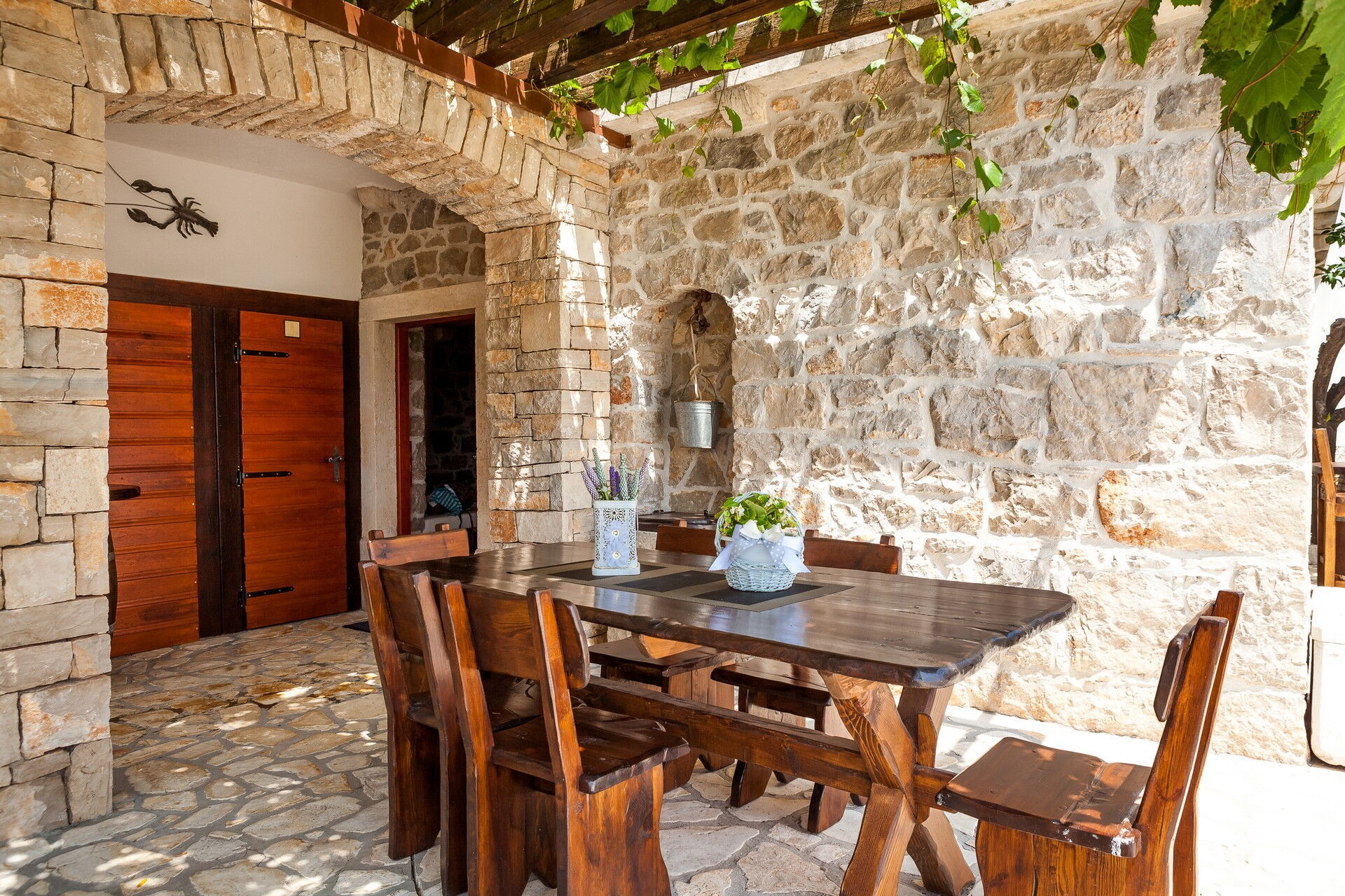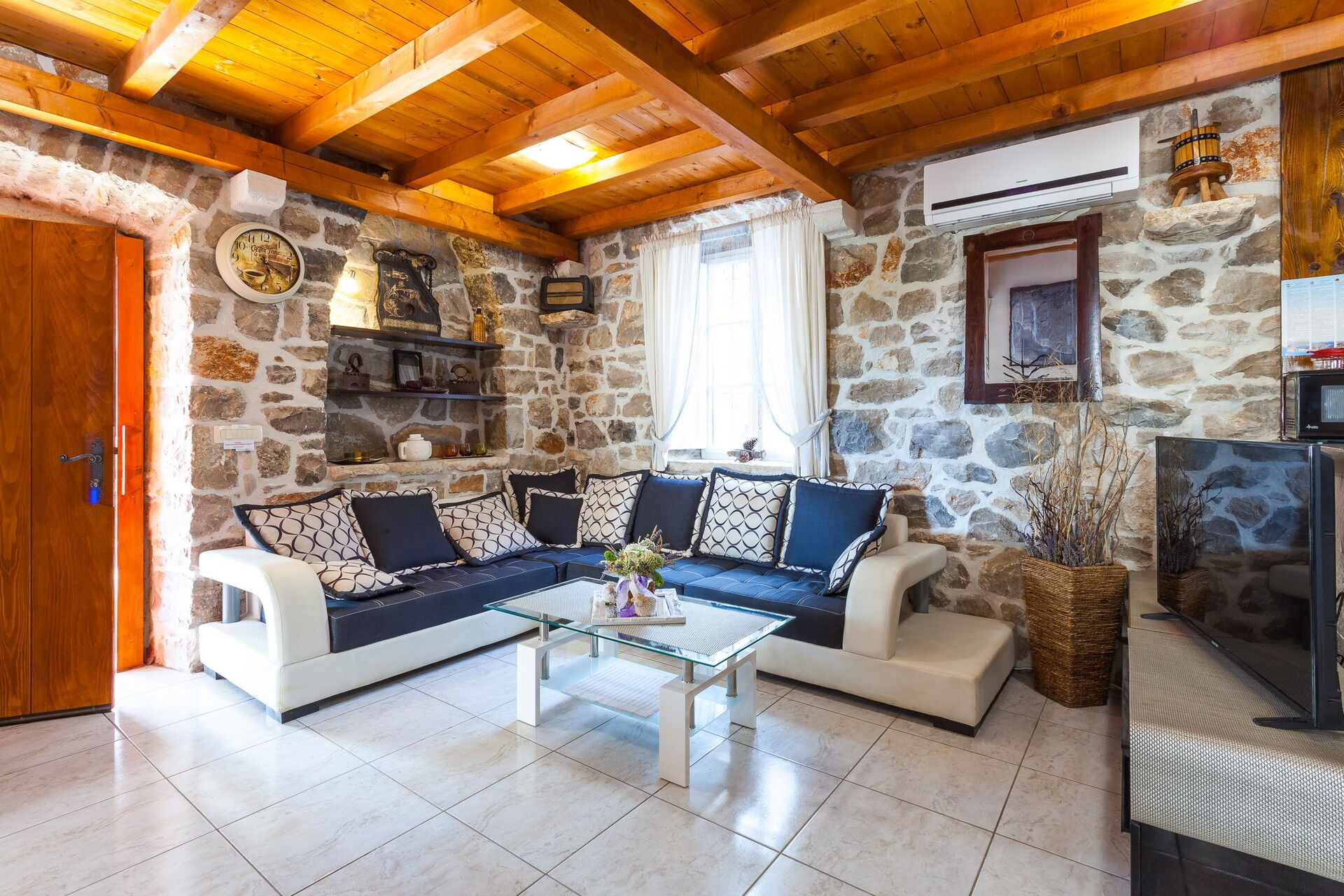 Cette villa de location de vacances exclusive se compose de 3 petits appartements et peut accueillir jusqu'à 14 personnes. La particularité de ce petit hameau est l'utilisation de la pierre, qui constitue tous les murs des habitations et pave l'ensemble de l'espace extérieur. Deux des trois appartements sont d'anciennes maisons dalmates dont les intérieurs ont été dûment rénovés, tout en préservant leur caractère originel.
