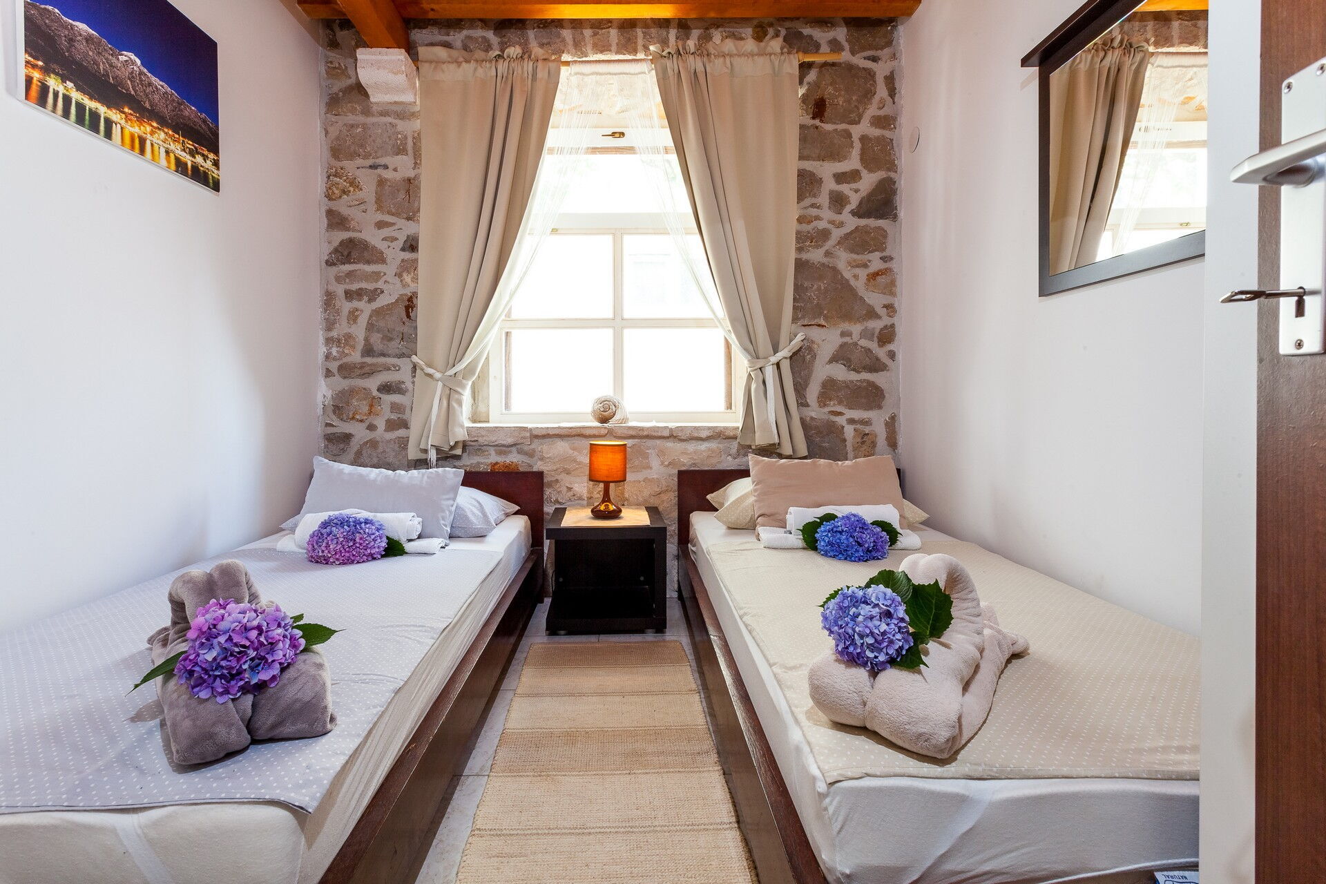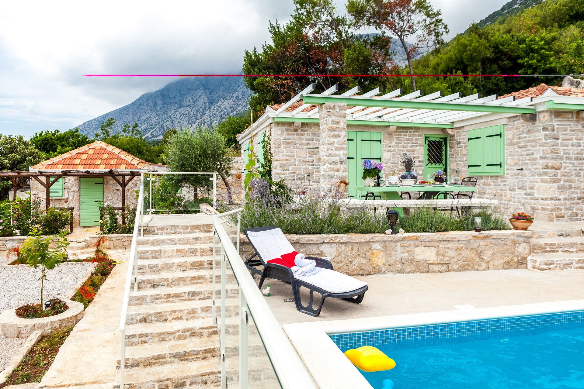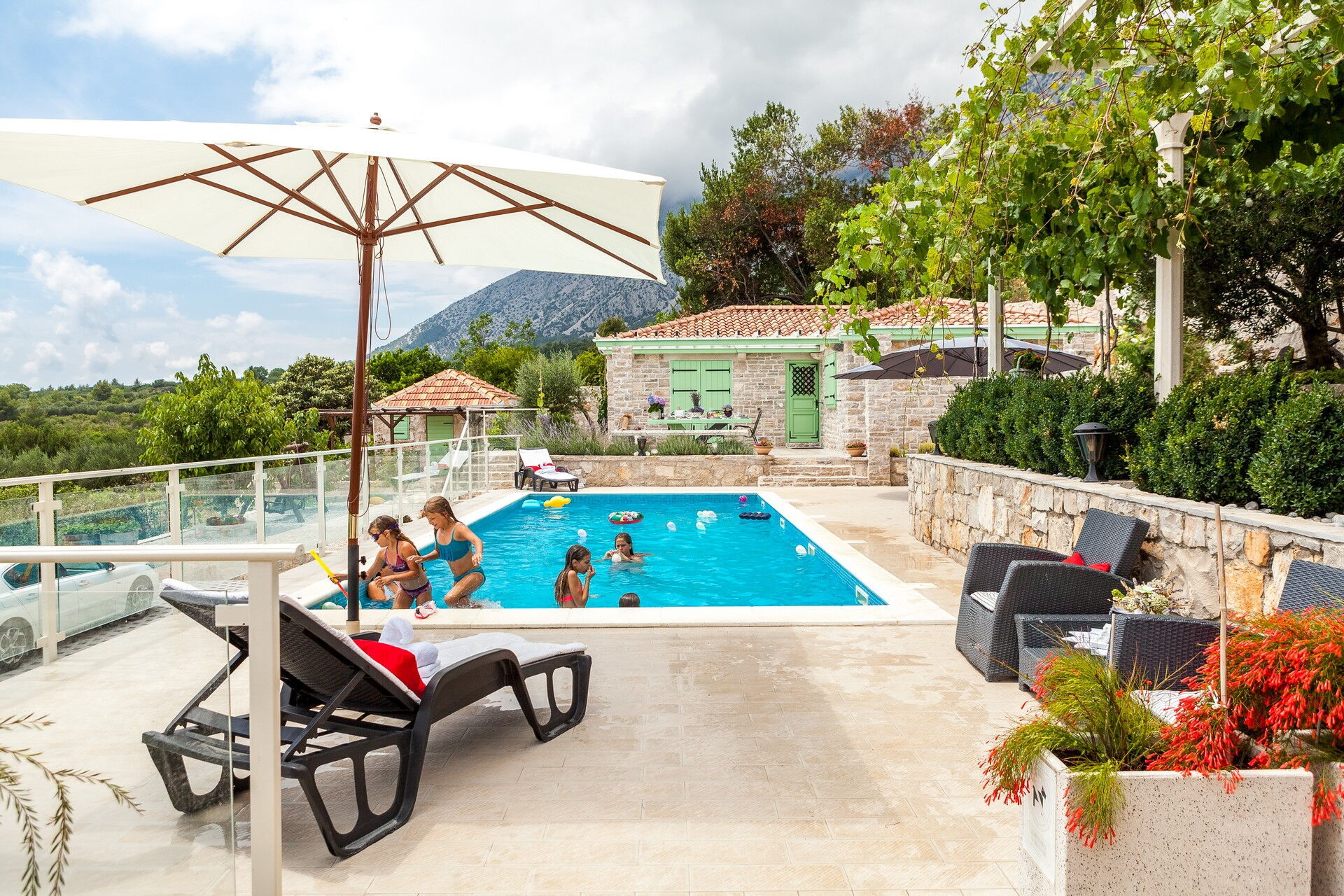 Cette villa de location de vacances exclusive se compose de 3 petits appartements et peut accueillir jusqu'à 14 personnes. La particularité de ce petit hameau est l'utilisation de la pierre, qui constitue tous les murs des habitations et pave l'ensemble de l'espace extérieur. Deux des trois appartements sont d'anciennes maisons dalmates dont les intérieurs ont été dûment rénovés, tout en préservant leur caractère originel.