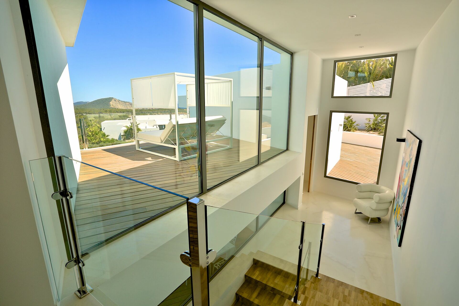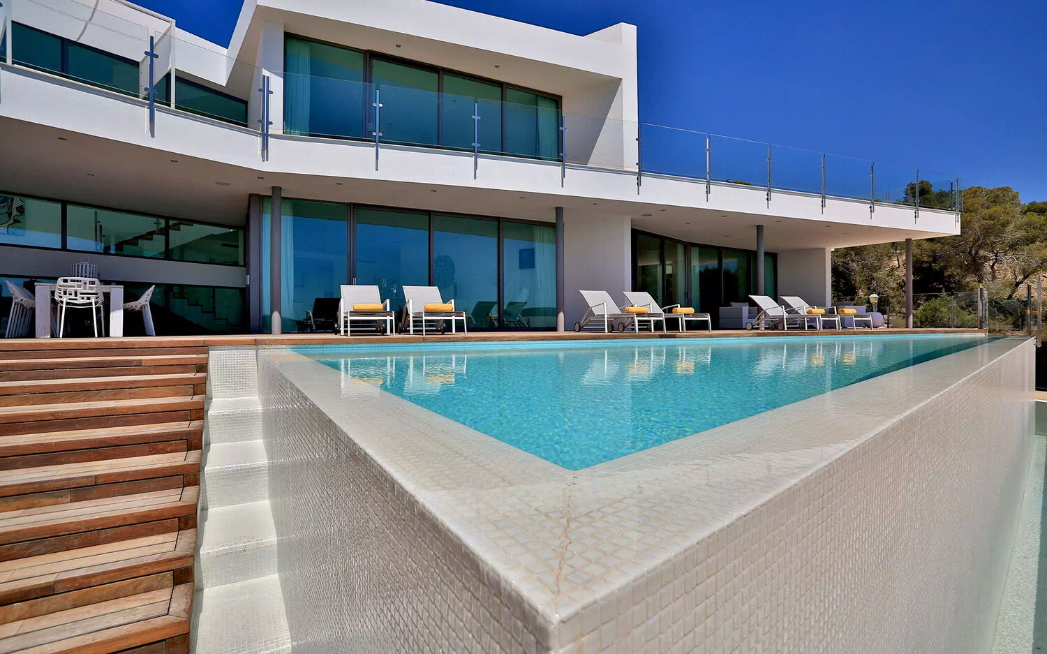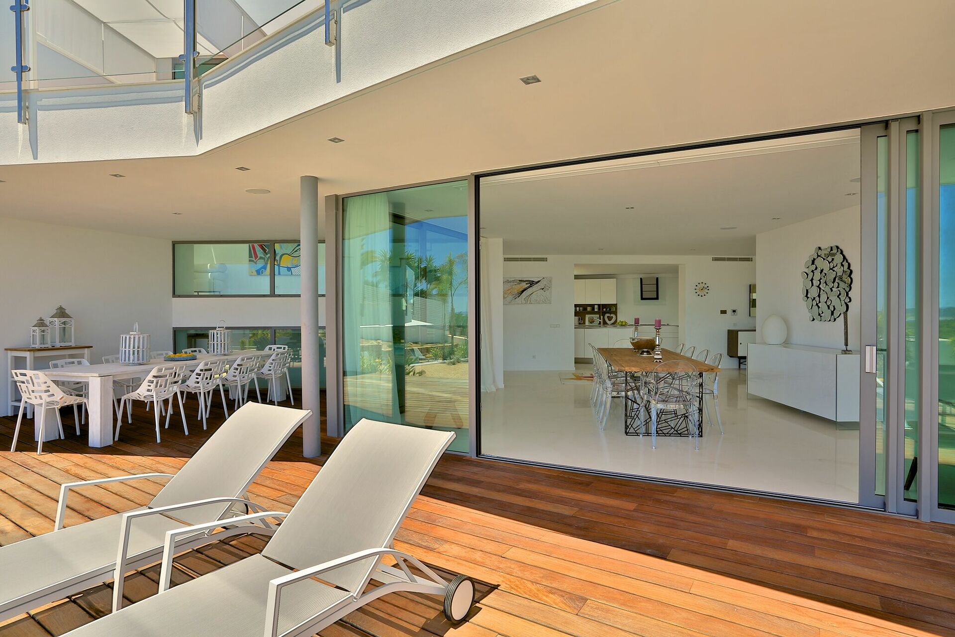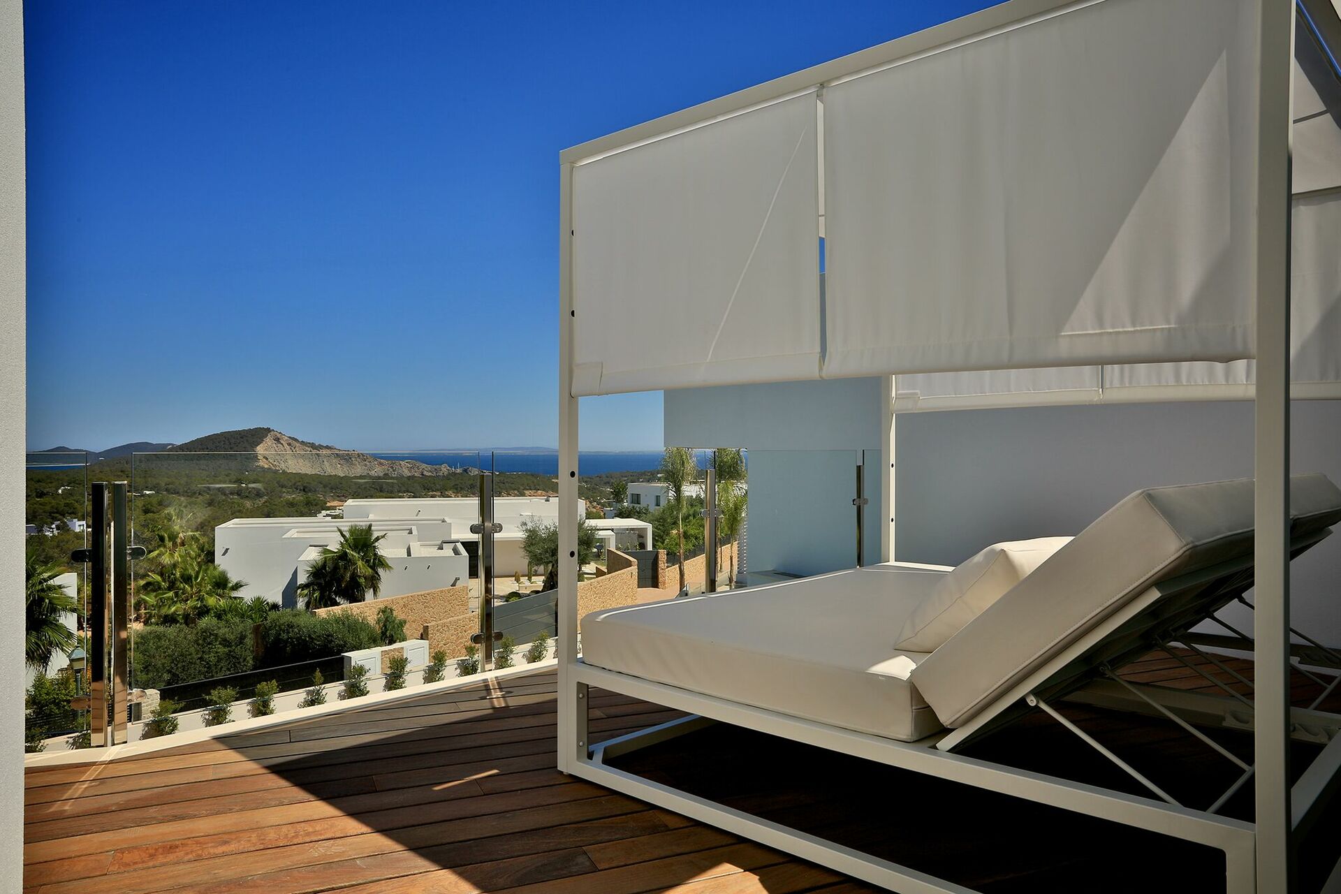 La particularité d’ Alegre Villa sont certainement ses extérieurs caractérisés par de grandes terrasses qui donnent sur la nature environnante et des quelles vous pourrez jouir d’une vue magnifique et panoramique sur la mer et les eaux cristallines de Es Torrent. Une zone living à l’extérieur (petits fauteuils, tables et chaises) est le lieu idéal pour préparer déjeuners, dîners et apéritifs entre amis ou avec votre famille.