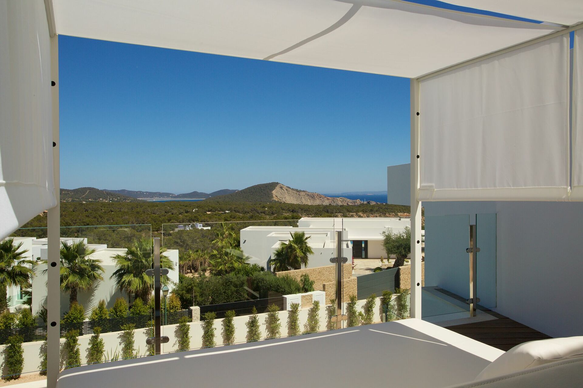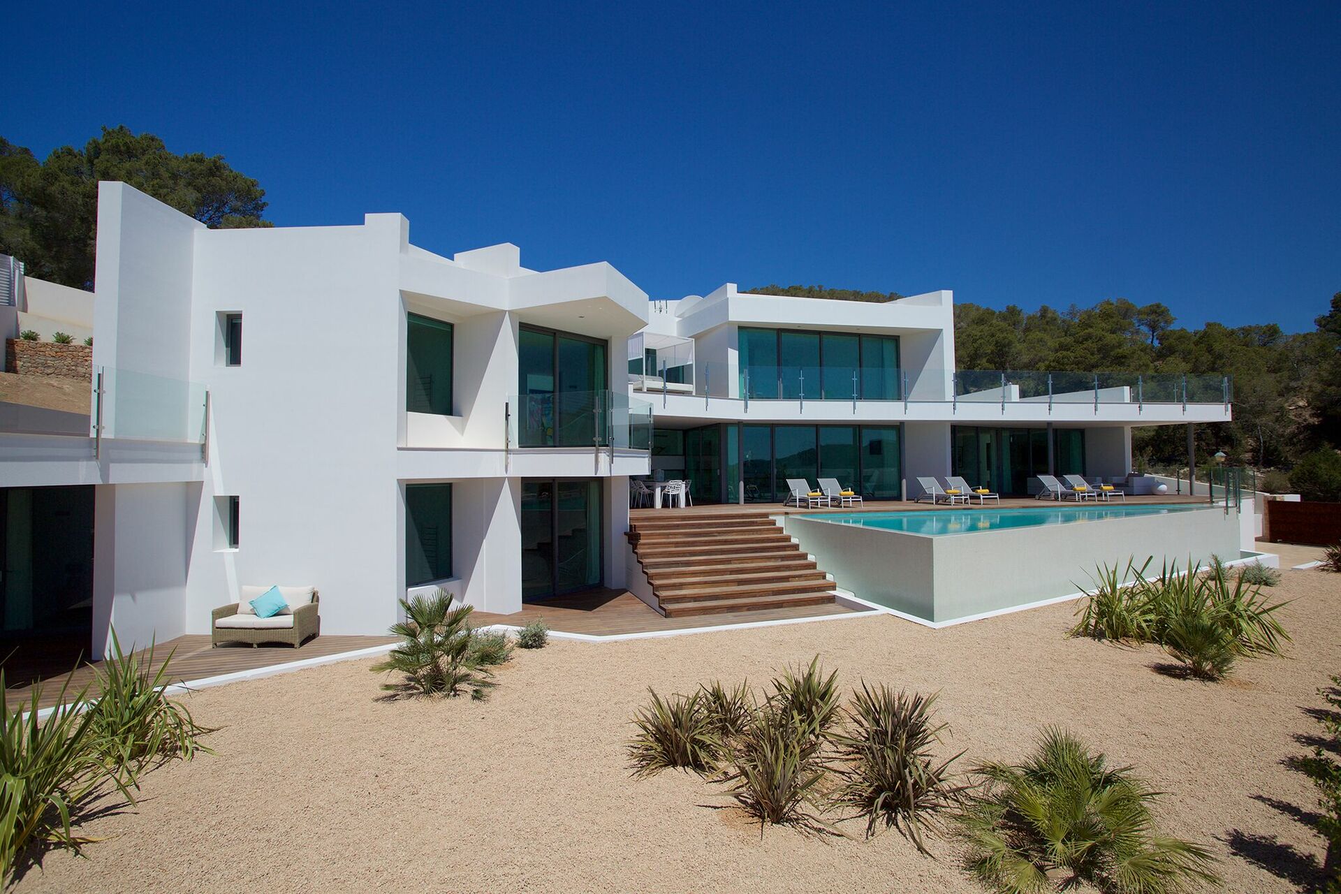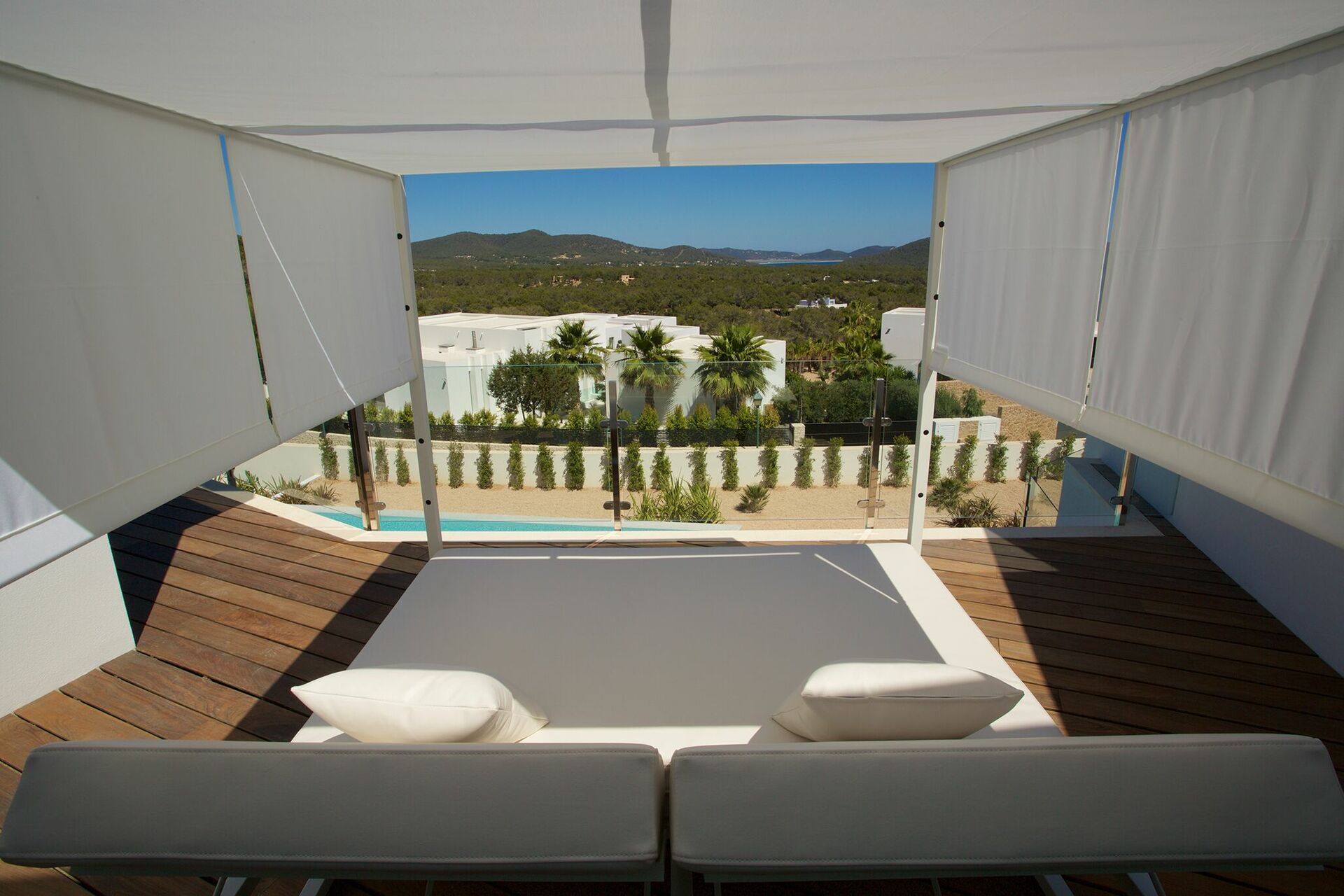 La piscine privée est réservée à l’usages des hôtes. C’est un endroit idéal pour passer les chaudes journées sous le soleil d’Ibiza, se rafraîchir au bord de la piscine ou simplement profiter du soleil sur les chaises longes du solarium.