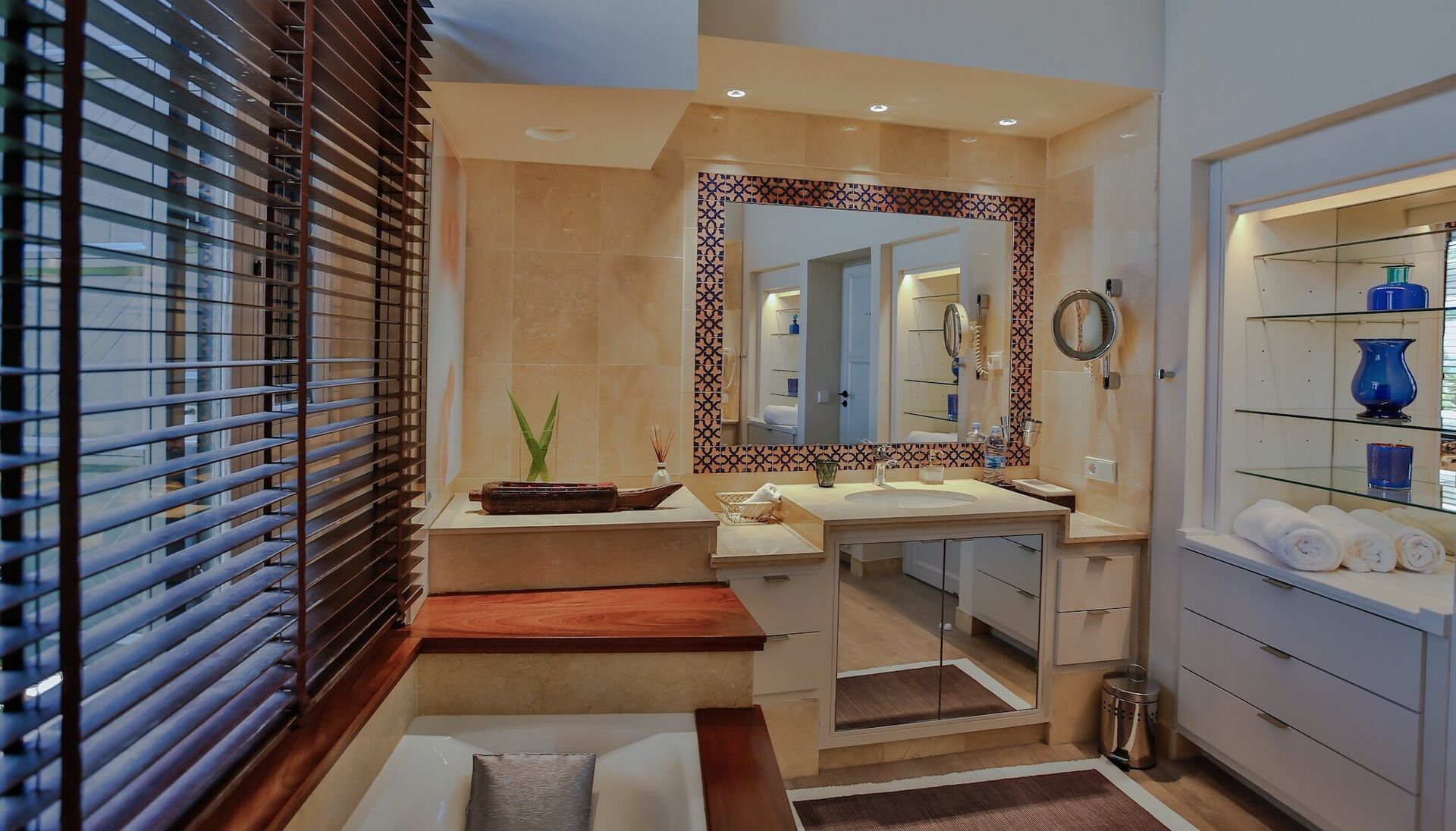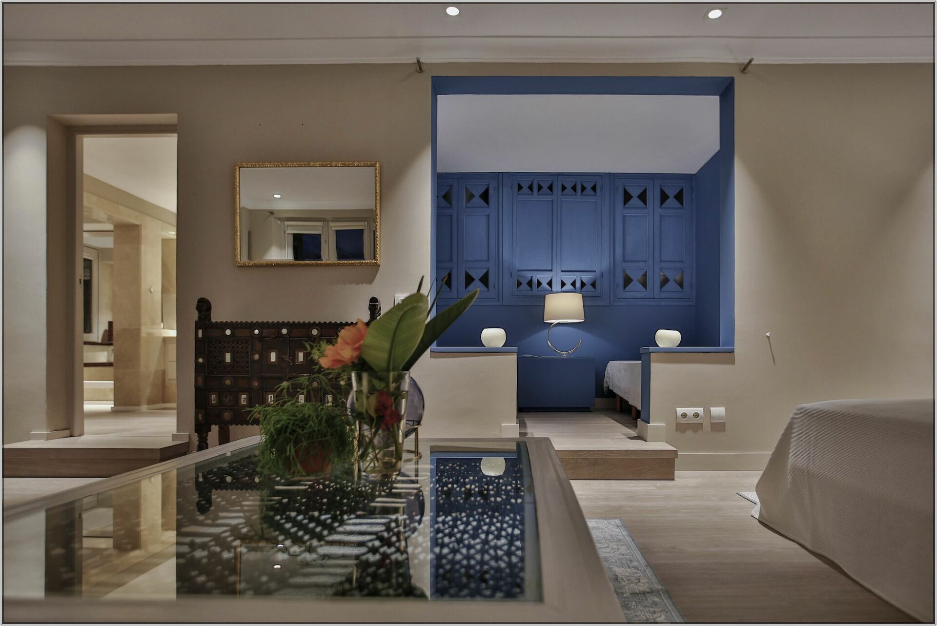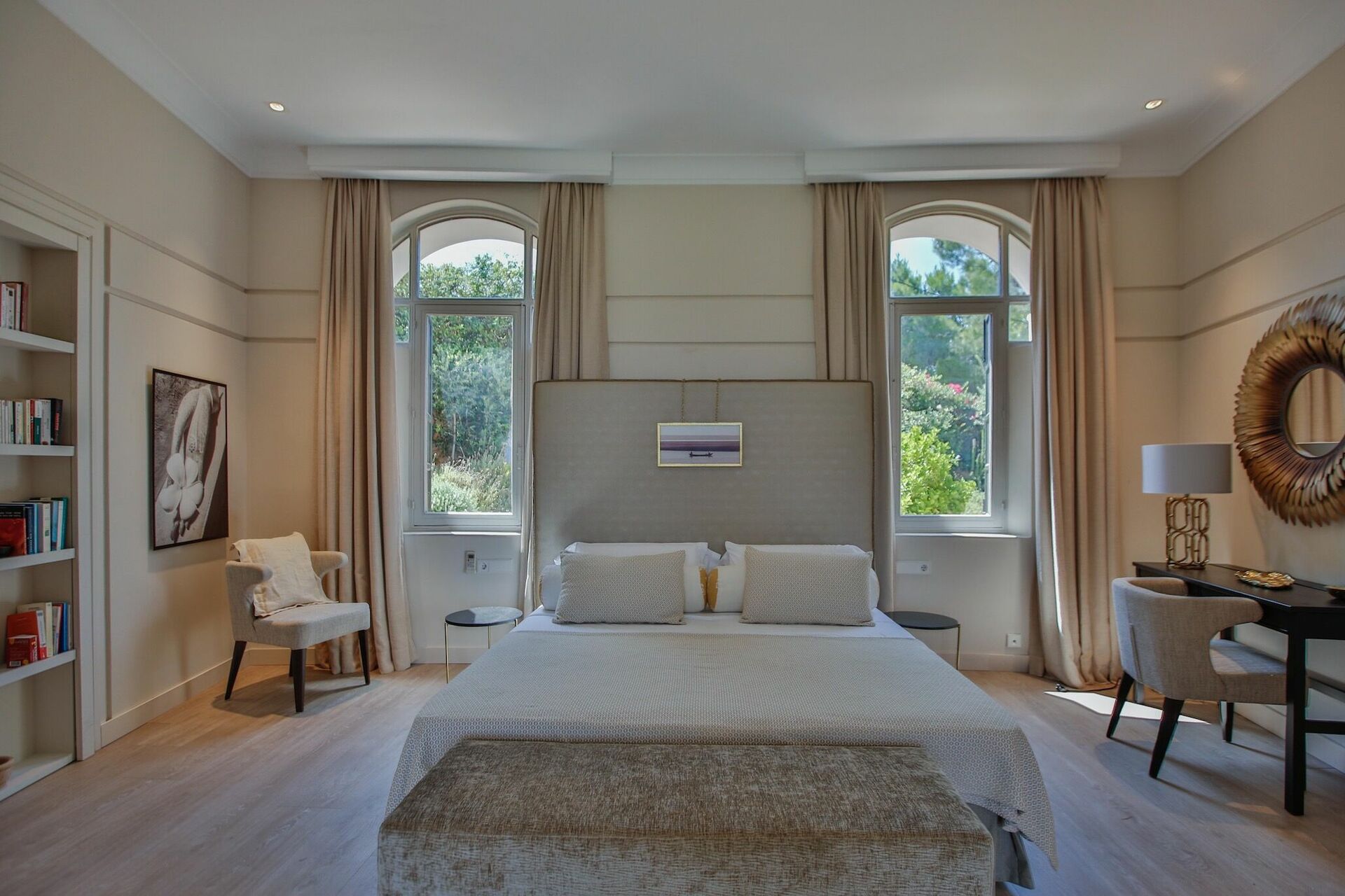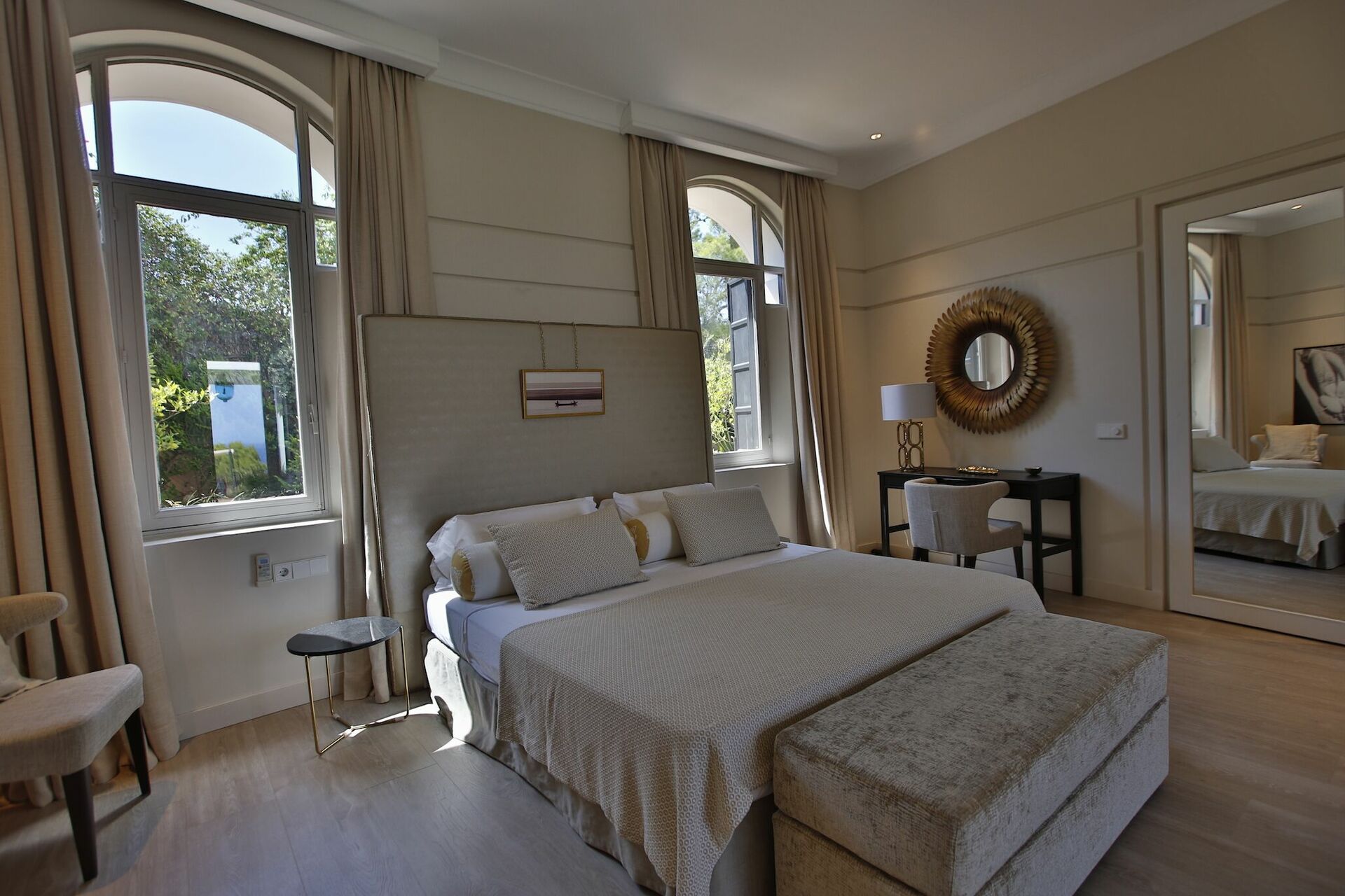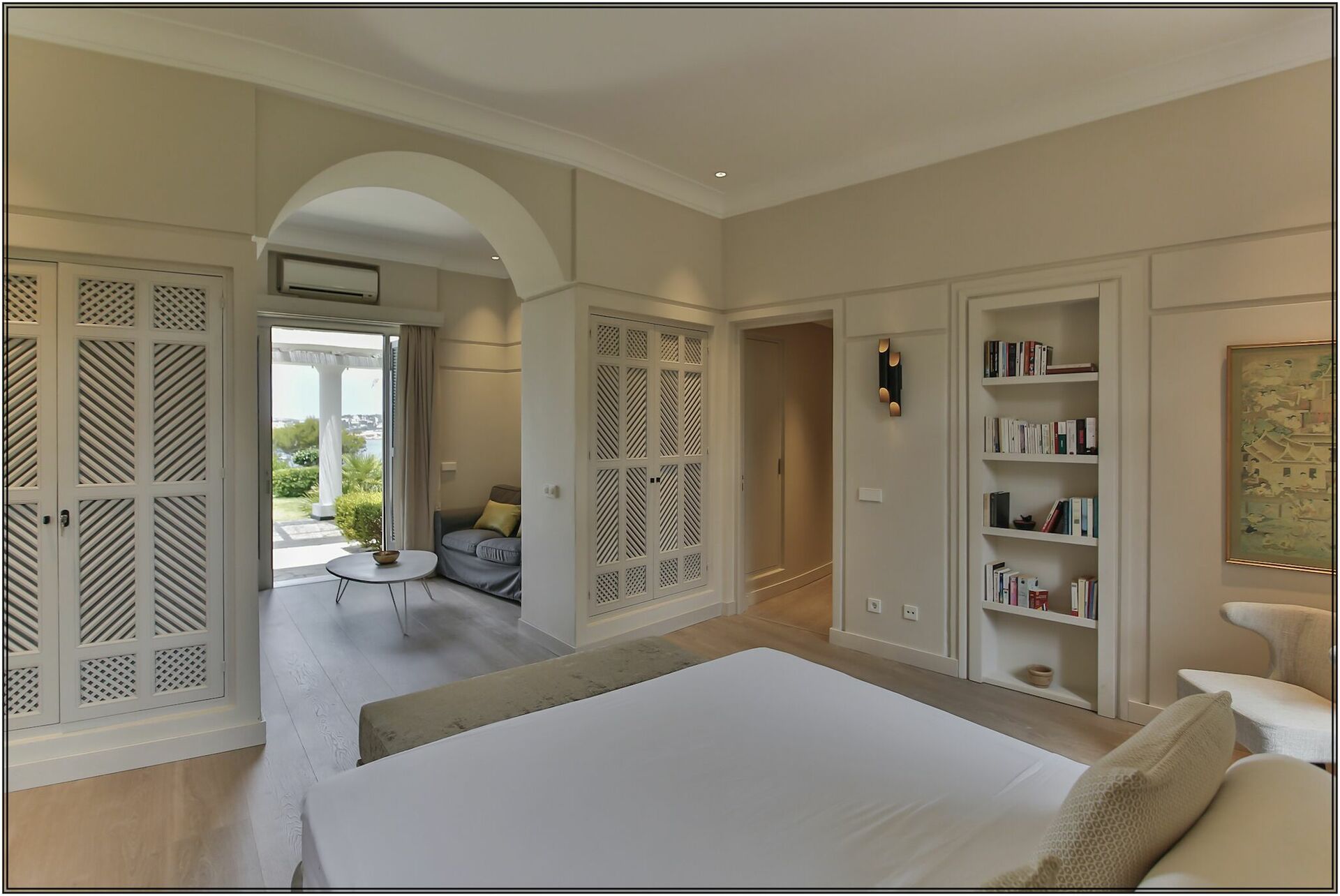 - 1 suite avec lit king size, zone séjour, accès sur la terrasse et grande salle de bains privée avec baignoire et douche;