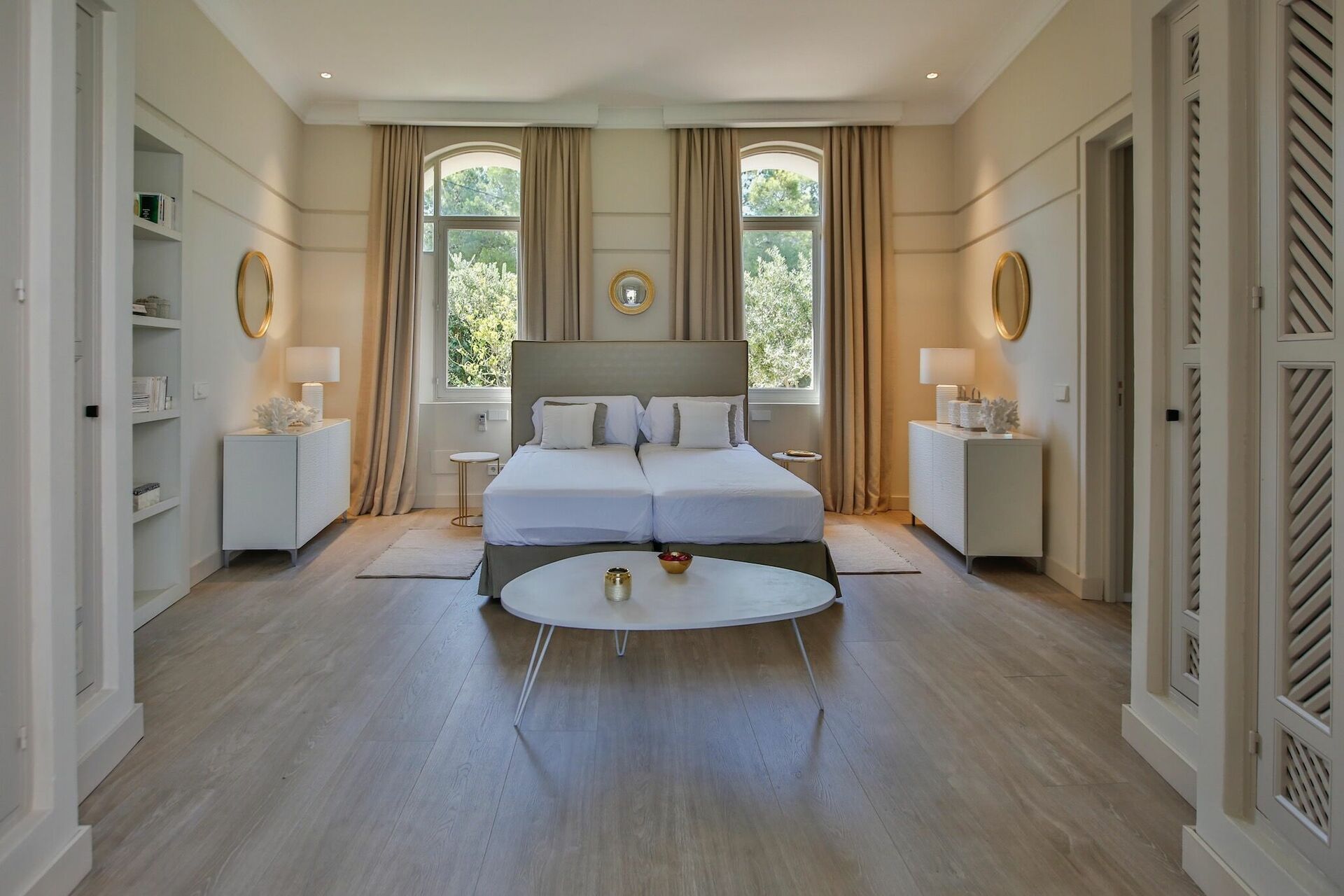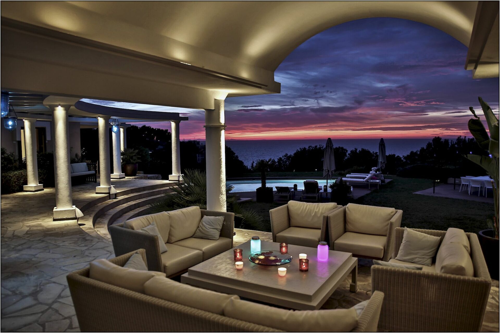 Cette magnifique propriété se développe sur deux étages en forme de demi-cercle pour jouir d’une vue à 180° sur la mer et les baies environnantes. Grâce à ses 6 chambres à coucher et ses nombreuses zones communes, la villa peut accueillir jusqu'à 12 personnes dans des intérieurs savamment et élégamment meublés. Le grand salon se prolonge pour créer une grande zone living extérieure d'où vous pourrez jouir d’une splendide vue panoramique et profiter de la brise marine.