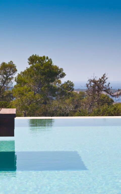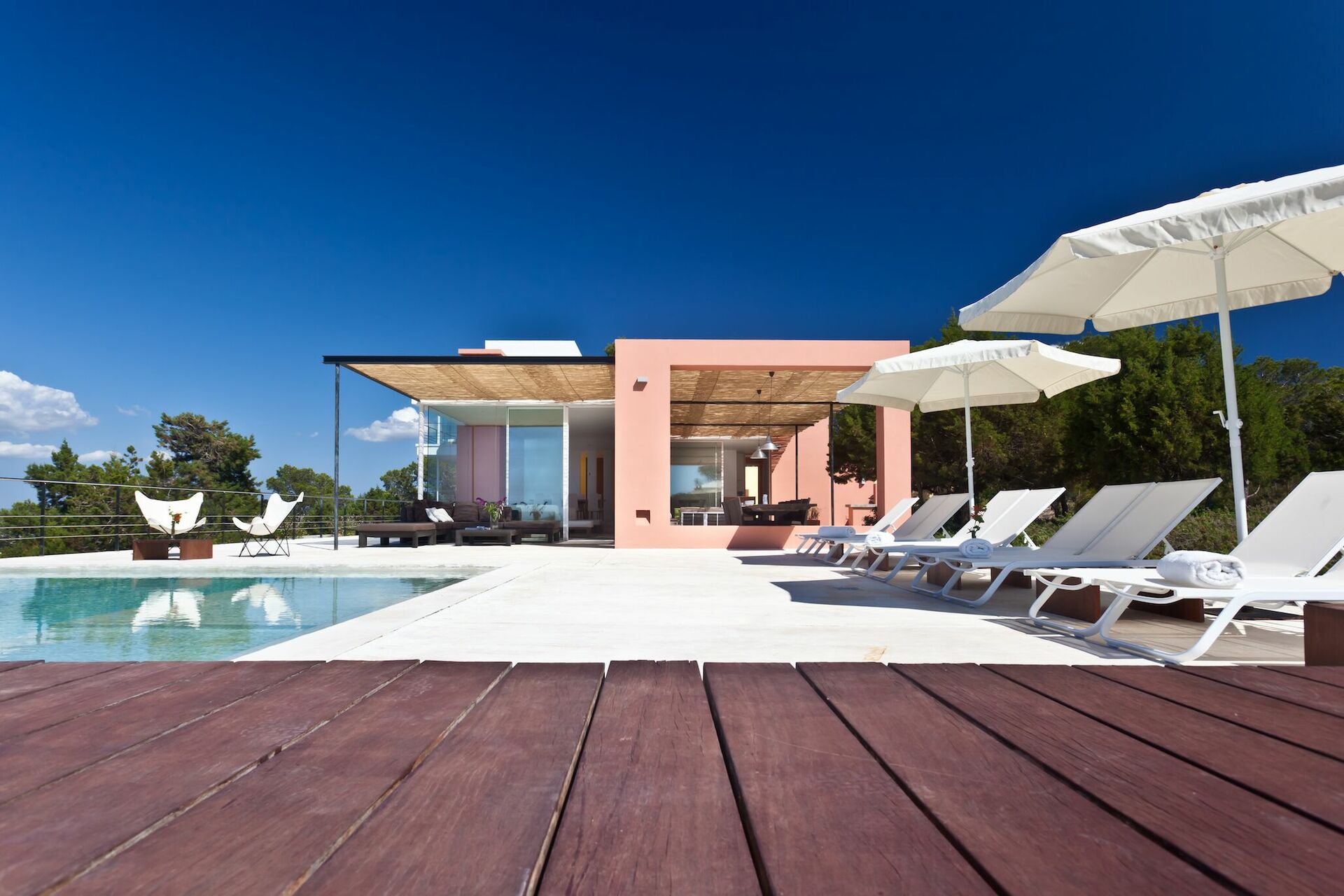 Villa de luxe en location proche de la mer à Ibiza. Position tranquille et panoramique, entourée de 37 km2 de forêt.