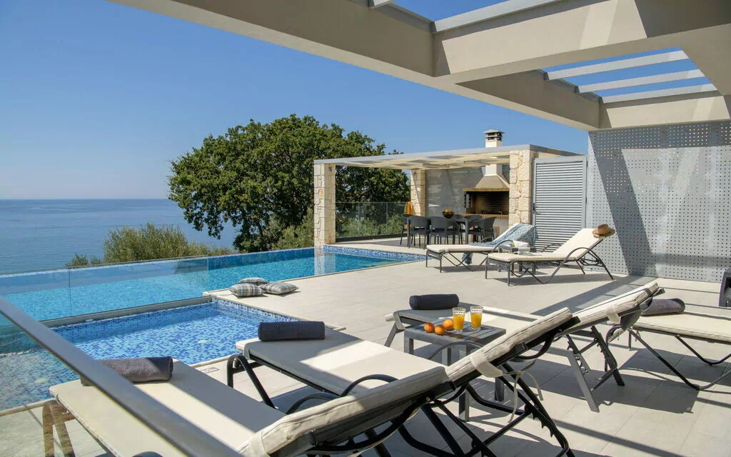Située dans la pittoresque partie sud-ouest de Corfou, la Villa Alkyoni est une villa au caractère contemporain et raffiné dominant la côte d'Agios Mattheos depuis une position surélevée et panoramique. Cette propriété se distingue par ses grandes parois vitrées qui inondent les intérieurs de lumière naturelle, offrant une vue imprenable sur la mer Ionienne. Sa force réside dans l'équilibre entre modernité et nature : un refuge frais et ventilé, parfait pour ceux qui recherchent des vacances de classe loin des circuits touristiques bondés, tout en étant à moins de 1,5 km des célèbres plages de sable fin de la côte ouest.Bien-être Familial et Espaces Panoramiques