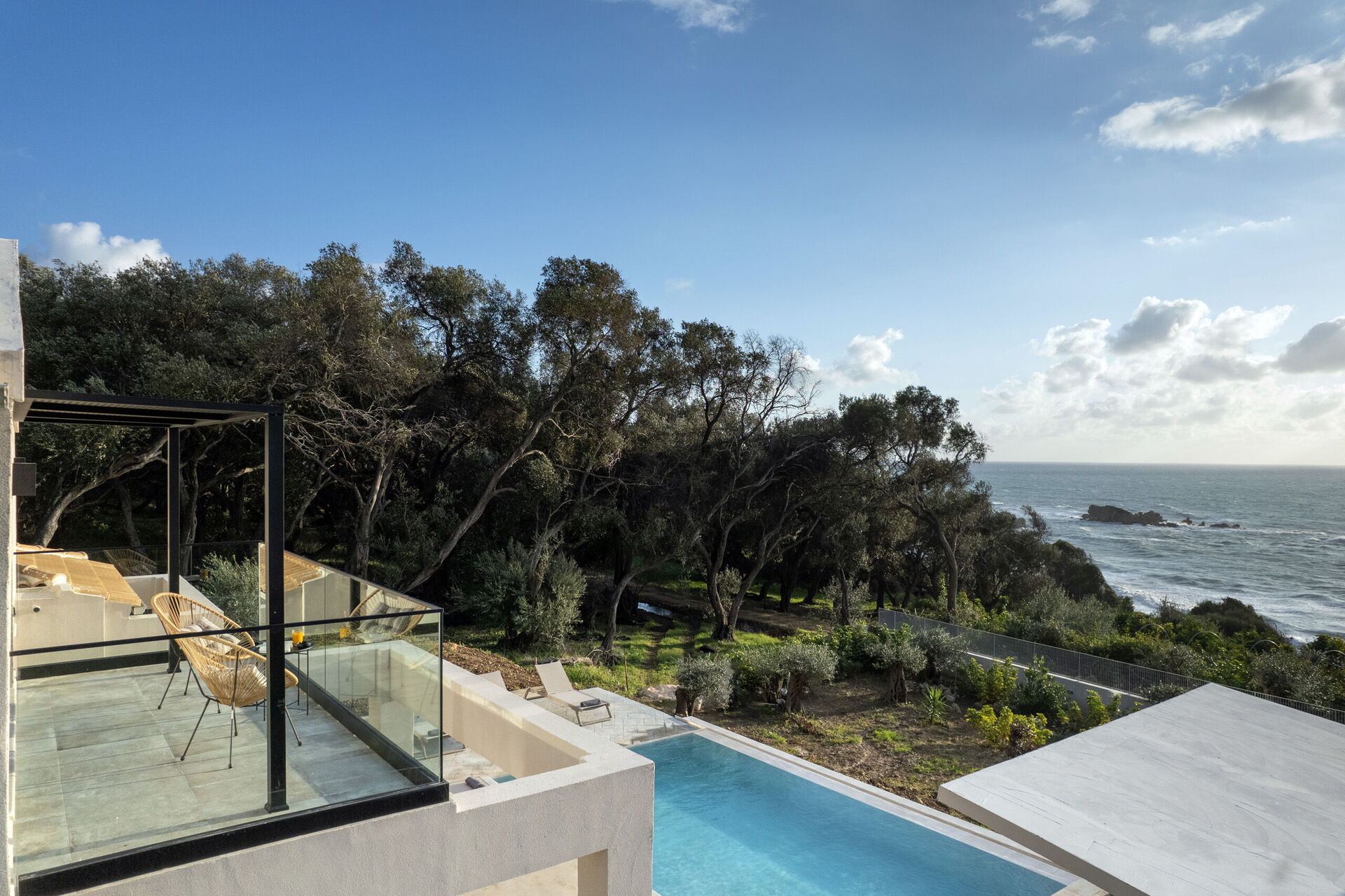 - espace extérieur panoramique avec vue sur la mer