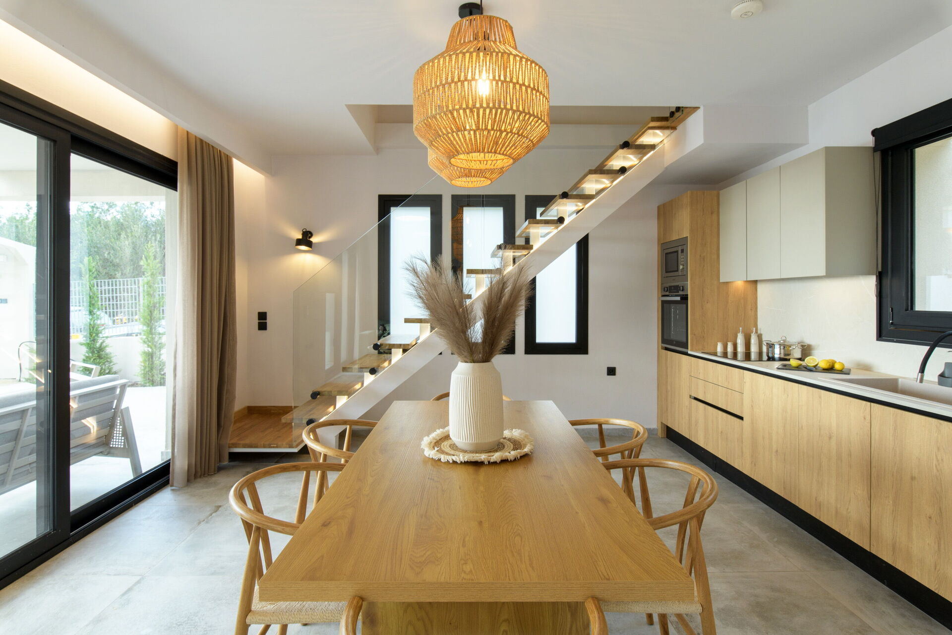 Le véritable atout de la villa pour profiter du soleil est le grand espace piscine, conçu pour la détente de toute la famille. L’espace extérieur panoramique propose des coins idéaux pour partager des dîners conviviaux au coucher du soleil grâce à la zone barbecue et au solarium aménagé.