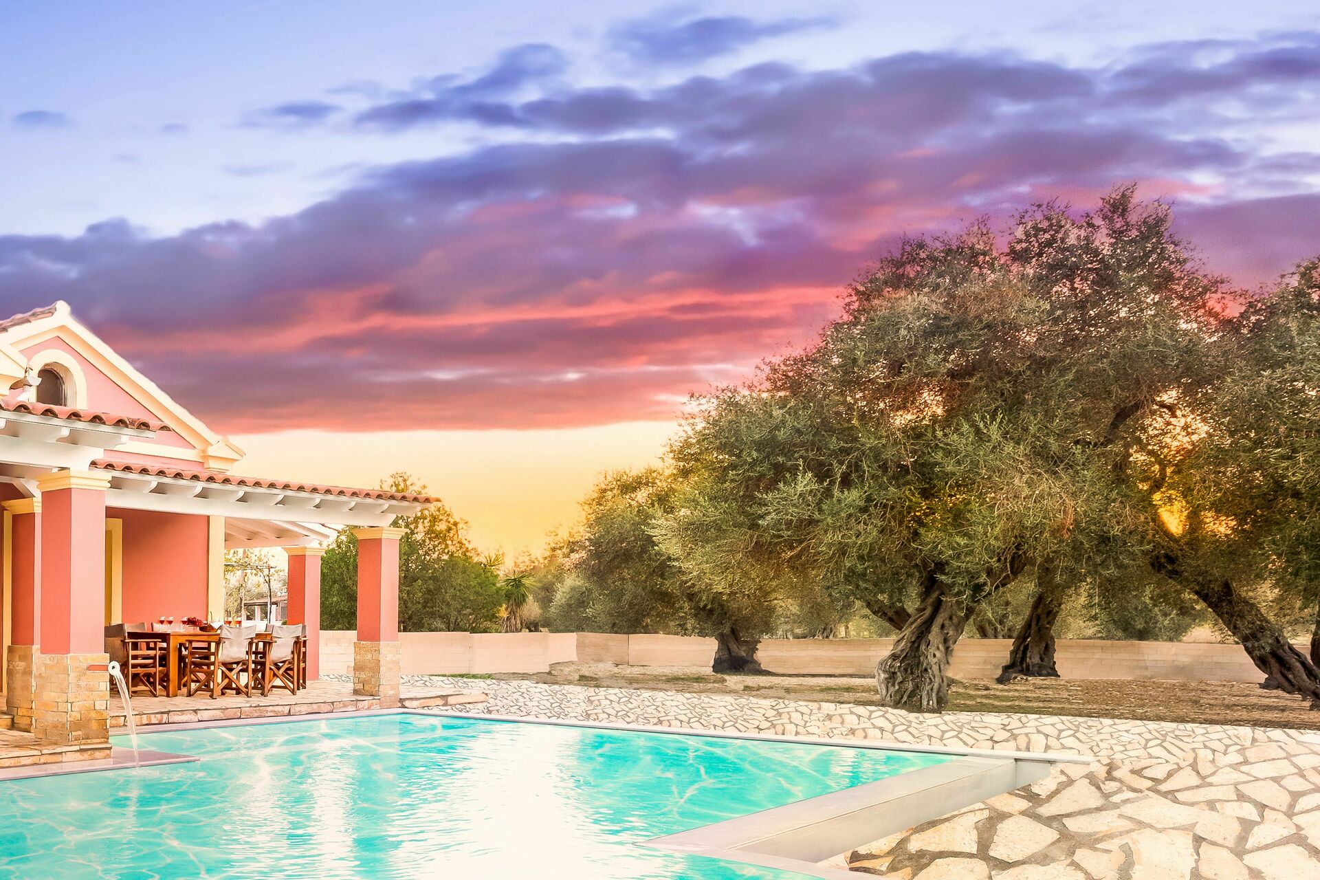 Villa Dinos: bassin, Été