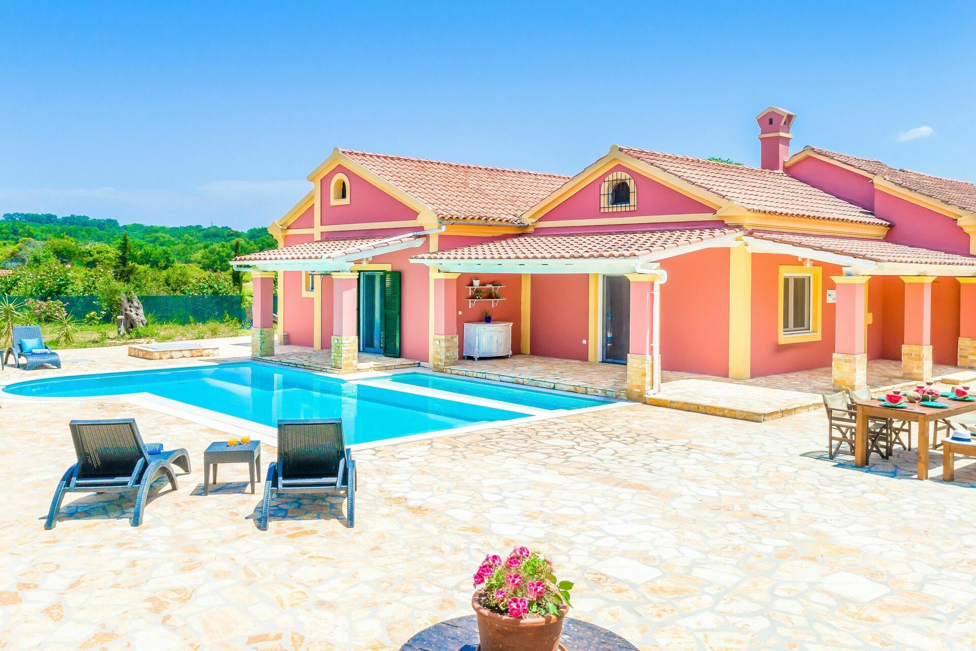 Very enjoyable and a total relaxing experience.Great villa. Well designed and well kept. Nicely decorated and inviting.The villa is approximately an hour drive from the airport. A car/ vehicle is essential as there is one taxi service operating in the area and you are not guaranteed a taxi when requested. Nearest supermarket approximately 20 minute drive. The villa is a quiet and peaceful/ secluded location.The kitchen/ dining area open plan design meet our needs, and there was also the option to dine outdoors which was a great.Bedrooms were a good size and all air conditioned. Master bedroom has an en suite, and Master/ second bedroom have patio doors leading to the pool / outdoors.The beach is a short drive from the villa or a 30 min walk. Local mini mart supermarket is a 5 min drive and are also available to deliver, which was excellent.Cleaning took place twice a week. Villa was cleaned and maintained to an excellent standard.On the website there is no mention of a car being essential, however the owner notified guests and is a useful sources of information. Great large pool which also has a separate children’s pool which is fantastic and accommodating feature.Bathrooms are nicely designed, family bathroom spacious and adequate for 5he size of the villa.The owner was welcoming and friendly. They ensured we had everything we needed to enjoy our stay and answered any queries