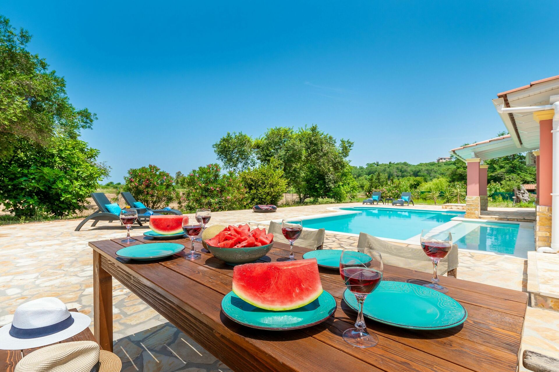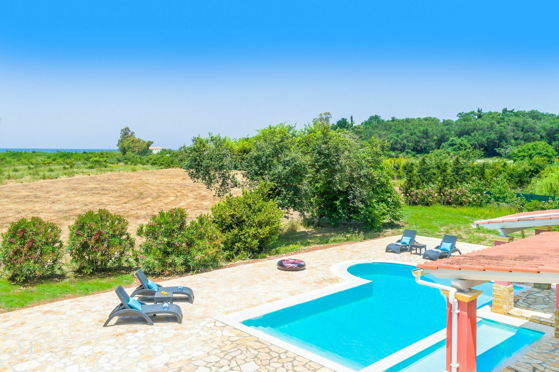 The house is beautifully located in the country. Not perfect for the beach but the pool is big enough and very well maintained with no chlorine smell or taste.