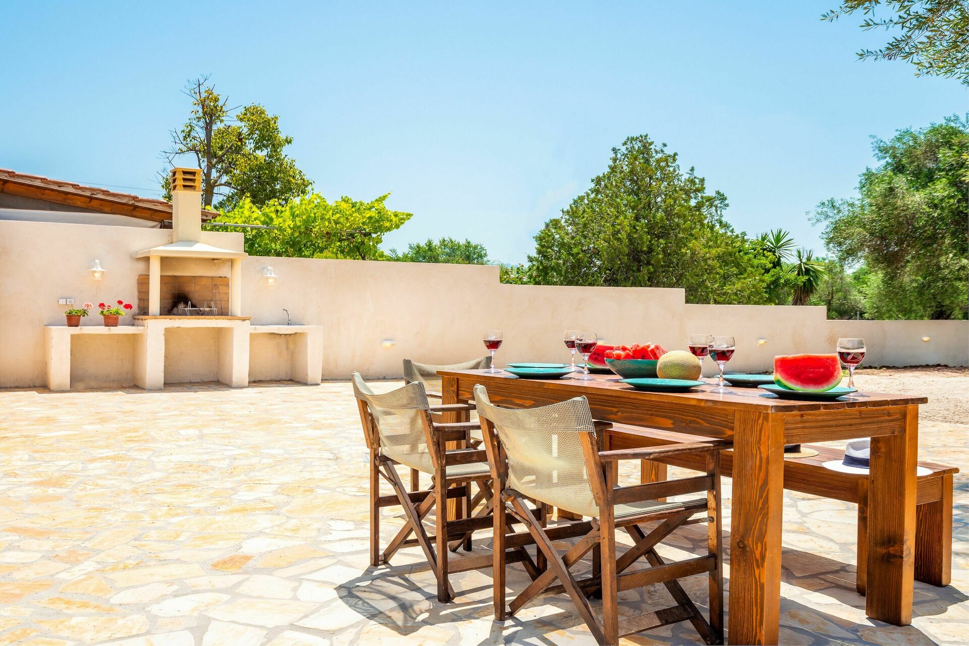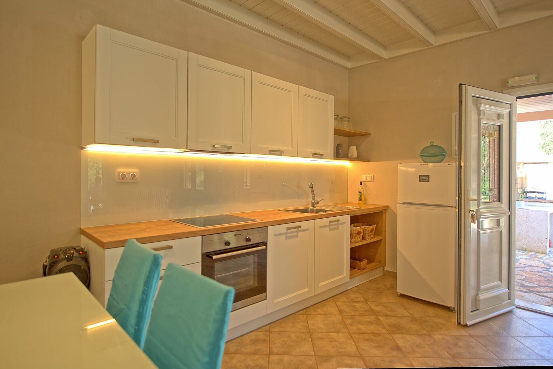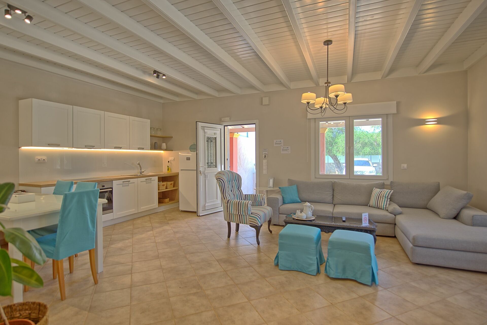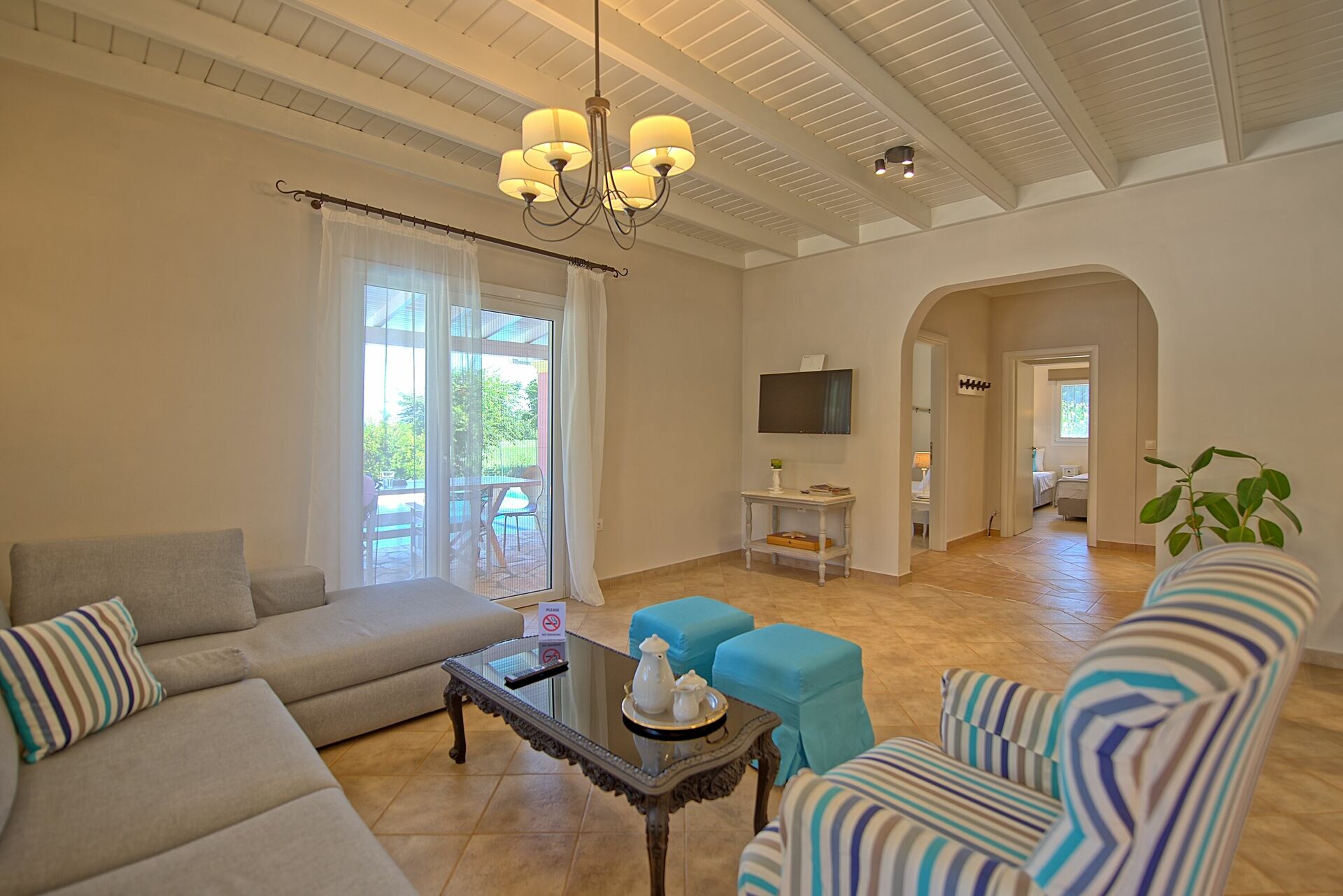 For anyone thinking of staying with small children, the fact that the villa is all on one level is also convenient, and the place is well stocked with plates/knives/forks etc if you are thinking of self catering.