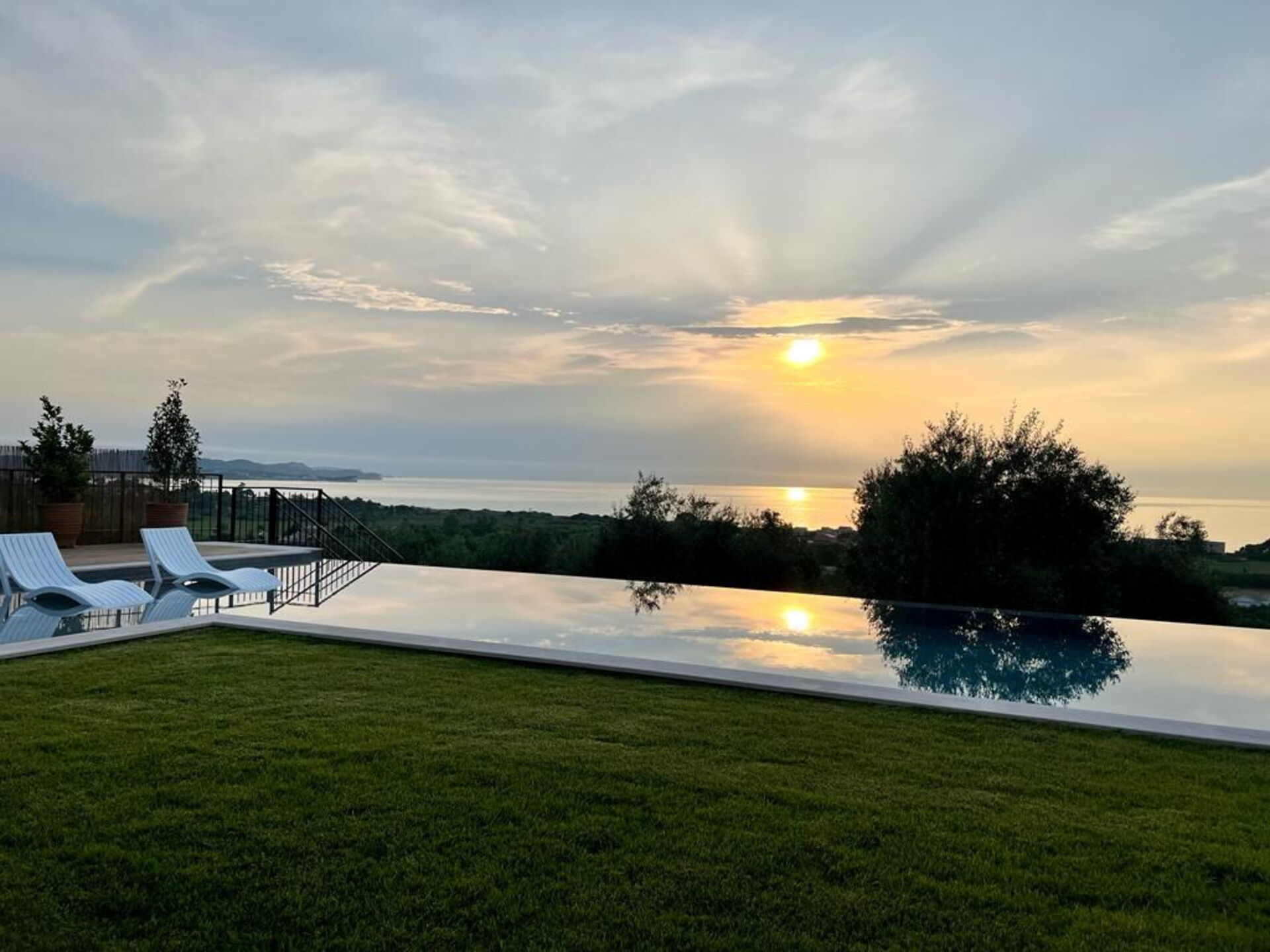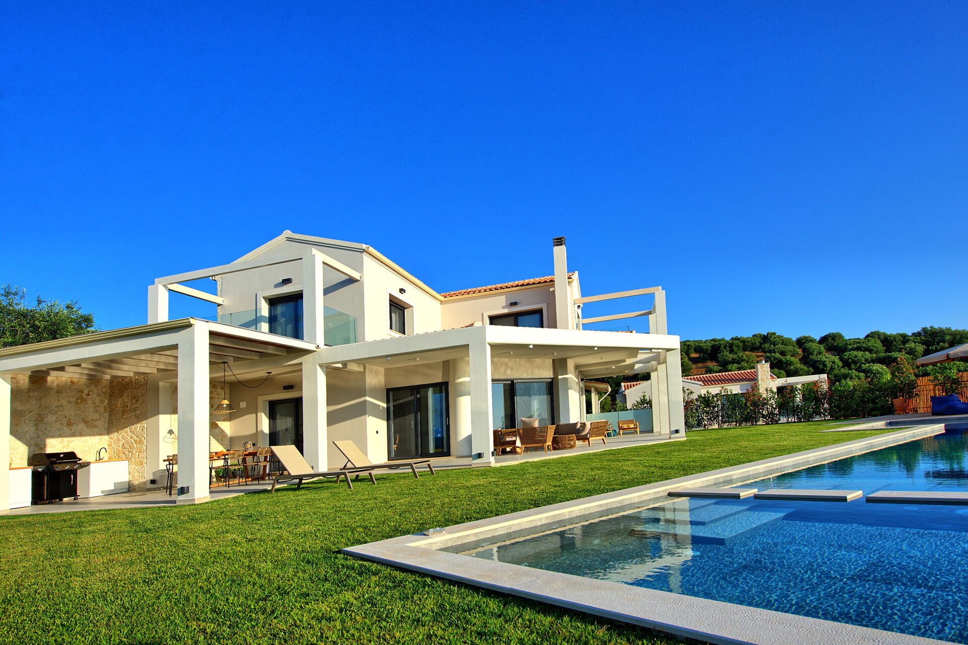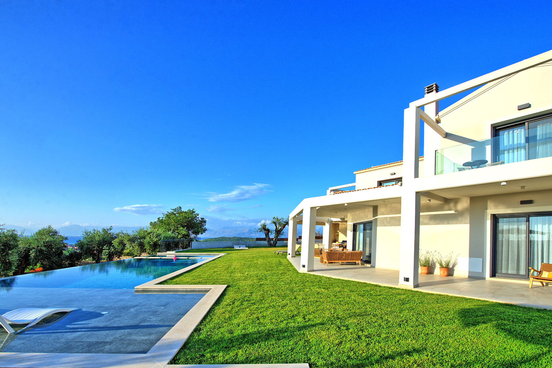 Belle villa de luxe avec fantastique piscine privée et vue panoramique sur la mer à Corfou entre Kassiopi et Acharavi.