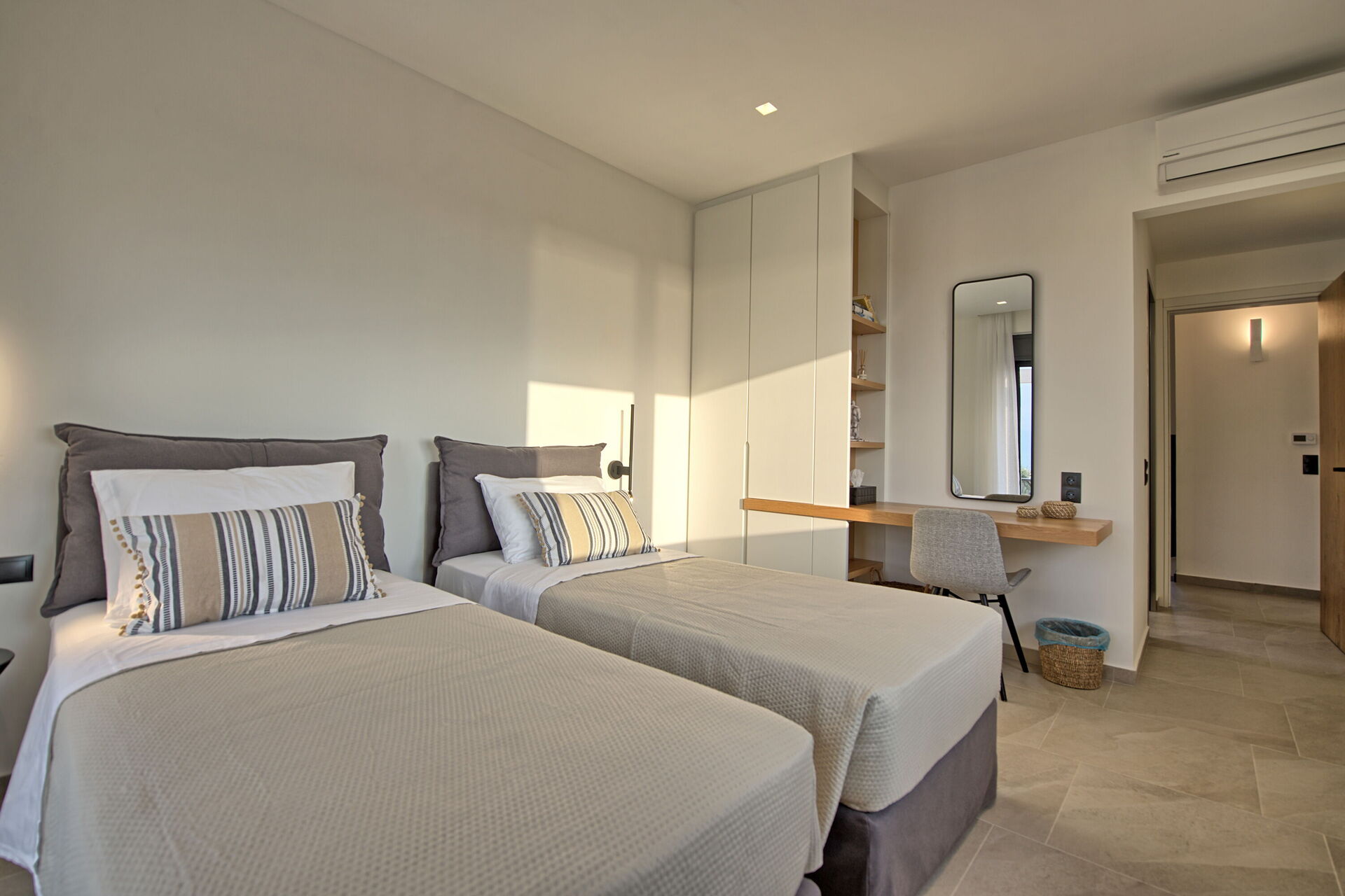 Stunning villa with great views and excellent privacy. Comfortable beds and pillows, clean linen and blackout blinds. Similar beautiful villa next door but not overlooked. Great views. Beach not far away but recommend a car to make a short drive to shops, tavernas etc.Would definitely recommend.