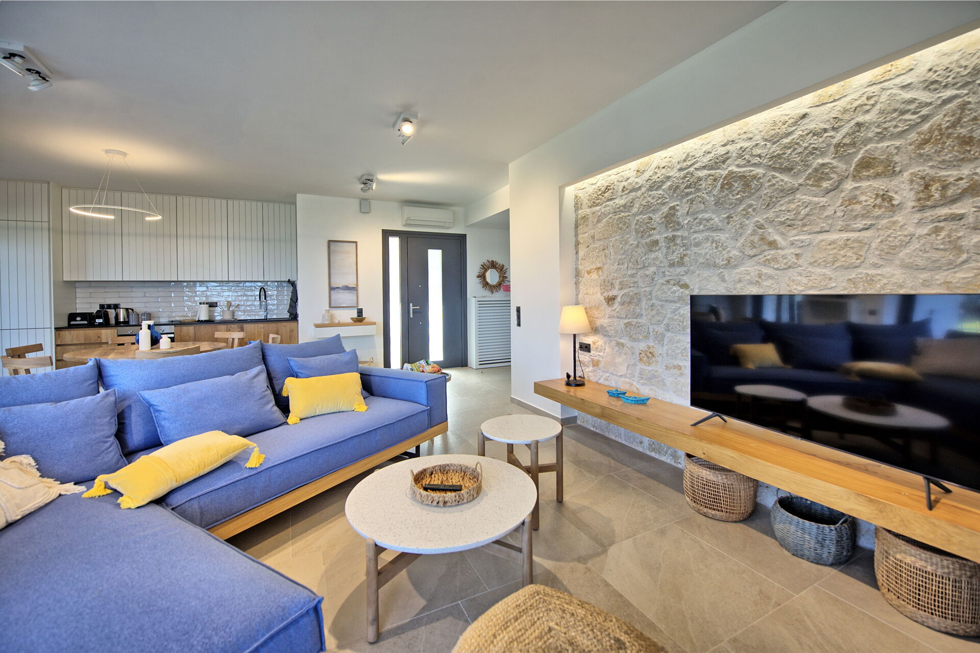 Diese Unterkunft war einfach nur wunderschön. Wir waren erst etwas skeptisch, weil die Fotos zu gut aussahen. Aber sie entsprechen genau der Realität, wobei die Villa sogar noch schöner als auf den Bildern ist. Man hat einen tollen Ausblick aufs Meer, sogar wenn man im Pool schwimmt. Die Einrichtung ist wunderschön, jedes Zimmer hat einen Balkon, von dem man einen noch besseren Blick hat. Es war super sauber, alle wichtigen Utensilien waren vorhanden. Alle zwei Tage kam eine nette Reinigungskraft und hat komplett sauber gemacht, Handtücher gewechselt und die Betten gemacht. Ganz besonders hat uns auch die überdachte Essecke mit der Outdoorküche gefallen. Insgesamt war der Garten sehr schön gestaltes mit vielen Sitz- und Liegemöglichkeiten. Es gibt wirklich nichts negatives zu berichten, außer vielleicht, dass man schon die untenliegende Straße hört, aber das ist kaum vermeidbar. Die Kommunikation mit Evelina war super! Insgesamt der beste Aufenthalt bei AirBnB, den wir je hatten :)