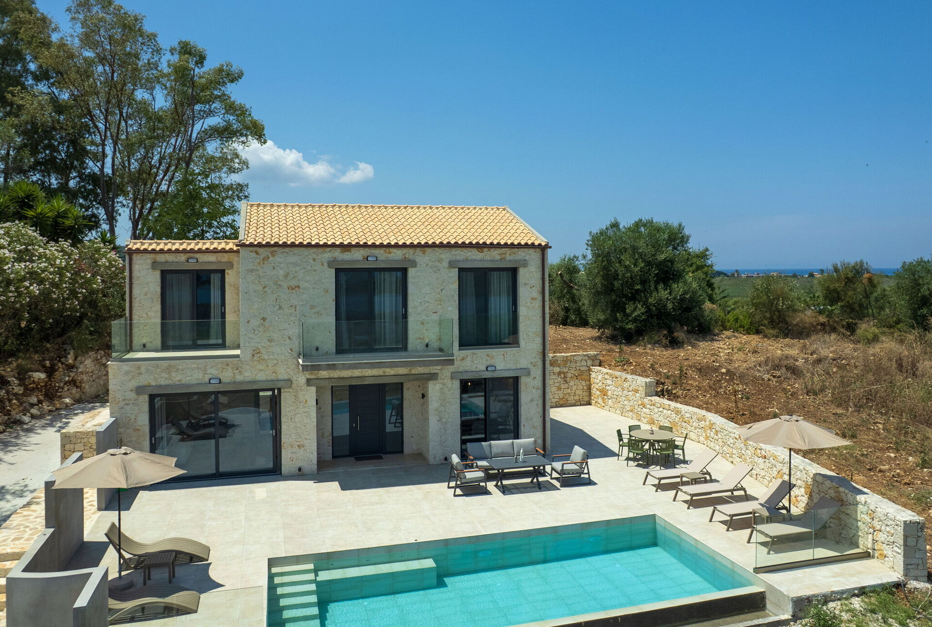 Villa Emys est une fantastique villa de luxe avec piscine privée. Sur le plan architectural, Villa Emys est une des villas en location les plus originales de Corfou.