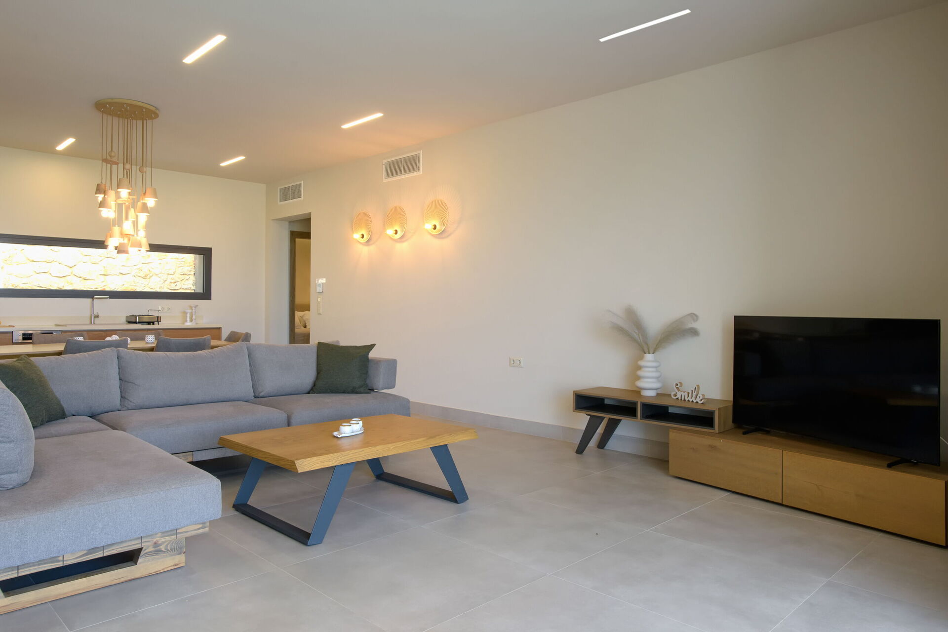 We arrived after midnight in a very dark an wet night, when we opened the doors to the villa we were pleasantly surprised how modern an clean the villa was all bedrooms had on suites, the kitchen was well equipped also there’s a dishwasher and a washing machine a couple of things which could help as it was October an been raining the pool was to cold to enter. Suggestion would be be a jacuzzi there is plenty of room to fit one , one other note we found it difficult to find as there is no road side markings on the main road to get to the off road where the villas are other than the two remarks we all had a great time.