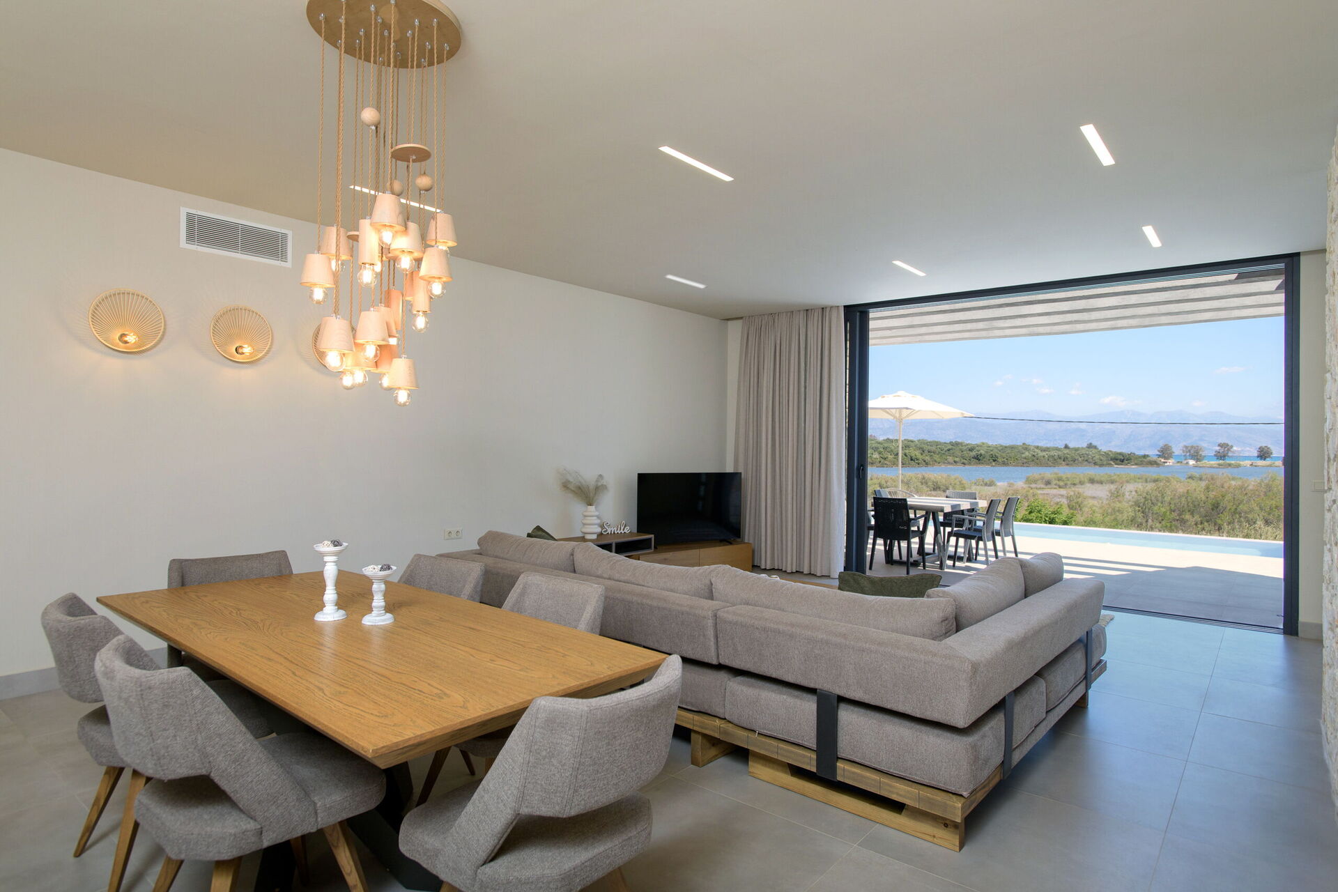 In principle, I should not write too positively, because why break up the competition for the future. honestly though the villa is brilliant new with a large pool three comfortable bedrooms. Everything works very well. The kitchen is well equipped. The view of Albania is beautiful. Location, in a quiet and peaceful place. No loud and drunk tourists. To a nice beach about 15 - 20 minutes on foot. To the Lola store, open until late run by a very nice Greek woman, 10 minutes on foot. Beautiful sunsets on Acharavi beach. 15 minutes by car to the wonderful beaches of Kassiopi. Housekeeping is very nice. They solved all problems very quickly. The only problem is mosquitoes, which are quite a lot. The house, however, is equipped with anti-mosquito nets. The owner solved all problems right away.