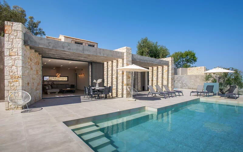 Cette villa en location à Corfou dispose de 3 chambres à coucher, 3 salles de bains, une grande partie jour et un fantastique espace extérieur idéal pour se détendre en jouissant du chaud soleil grec au bord de la piscine ou en préparant un délicieux barbecue.
