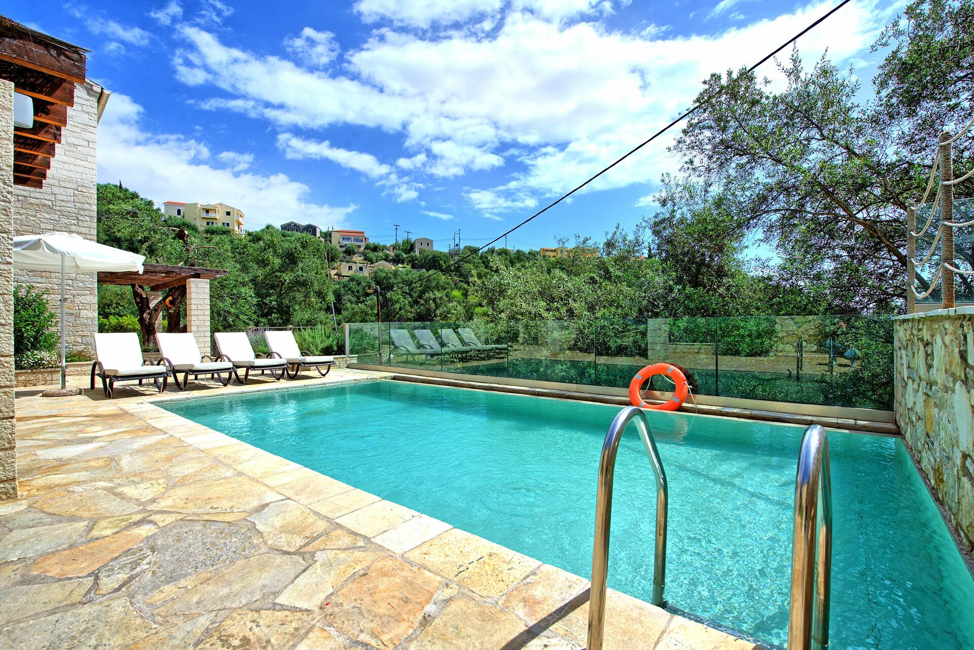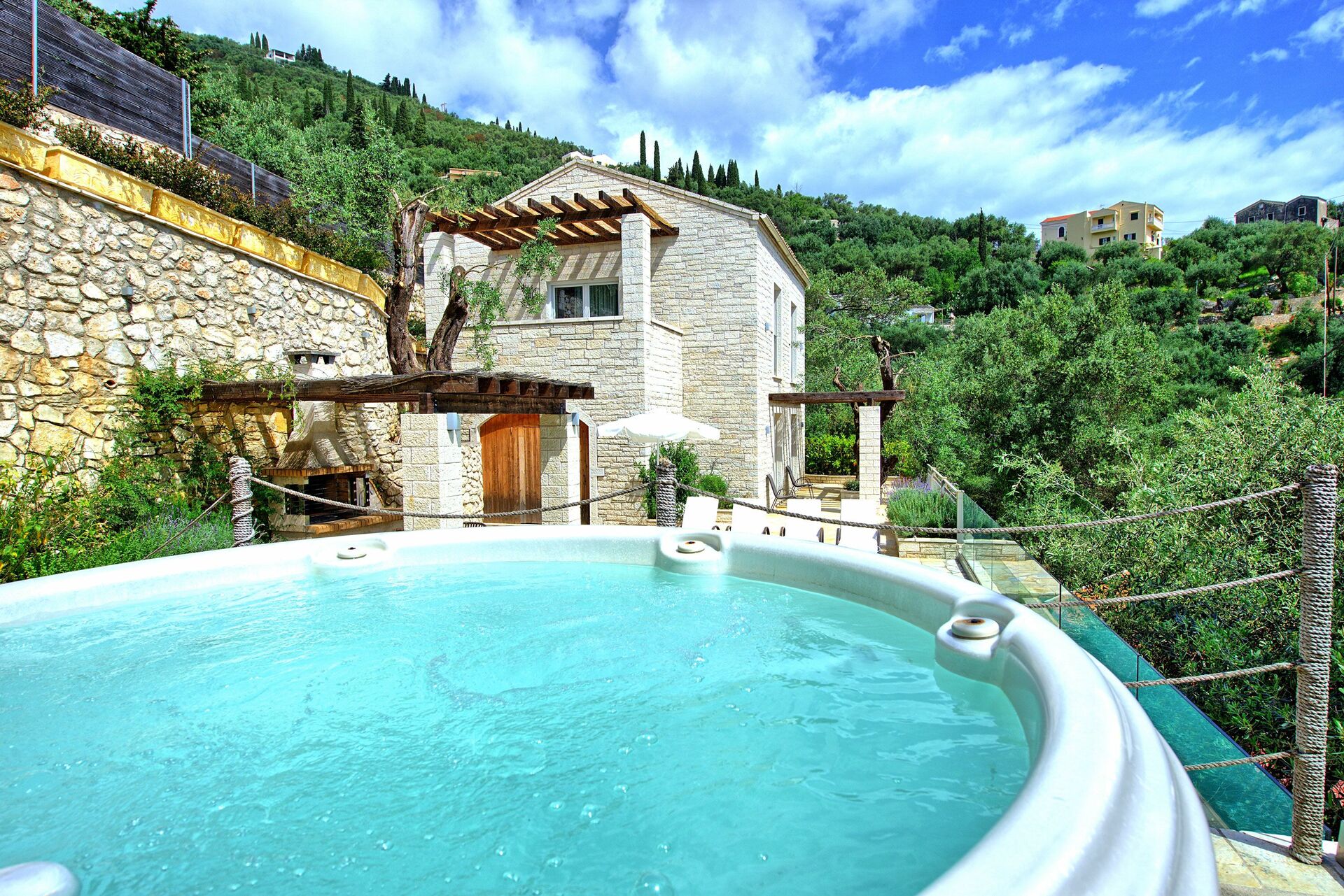 Great villa with perfect location; elevated on a hill, 10 min walking from a nice beach with great restaurant (Toula’s seaside). Bright and modern, with nice swimming pool and all amenities, finishing are OK, WIFI is slow… We would definitely recommend that place!
