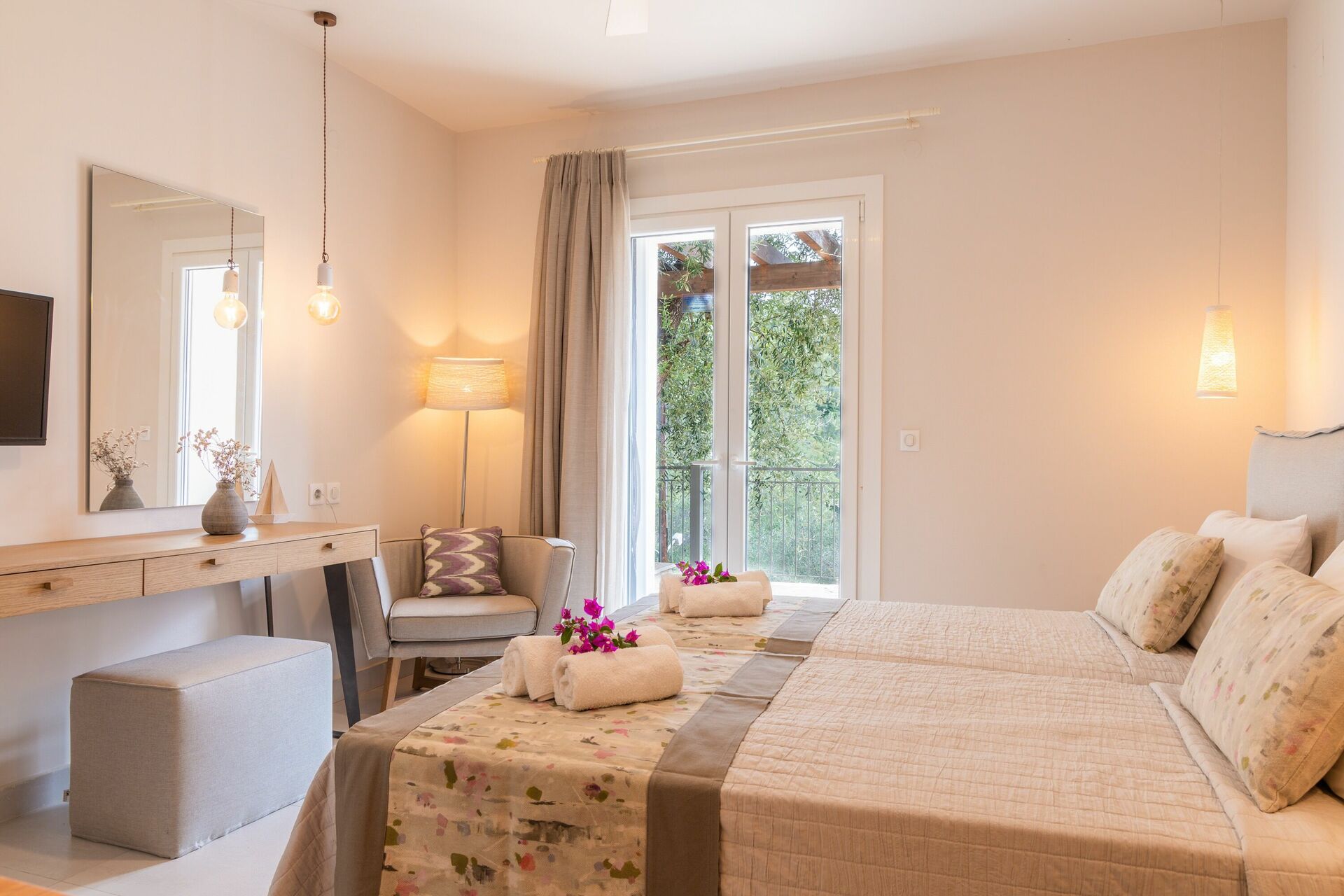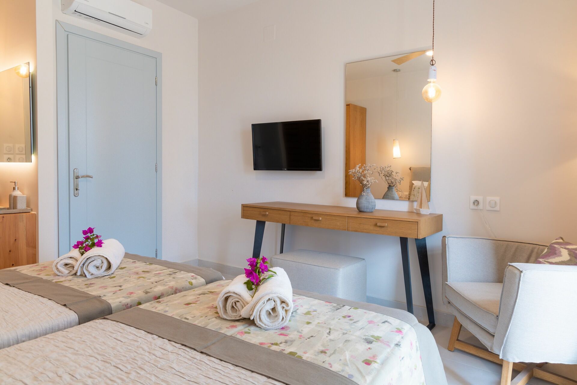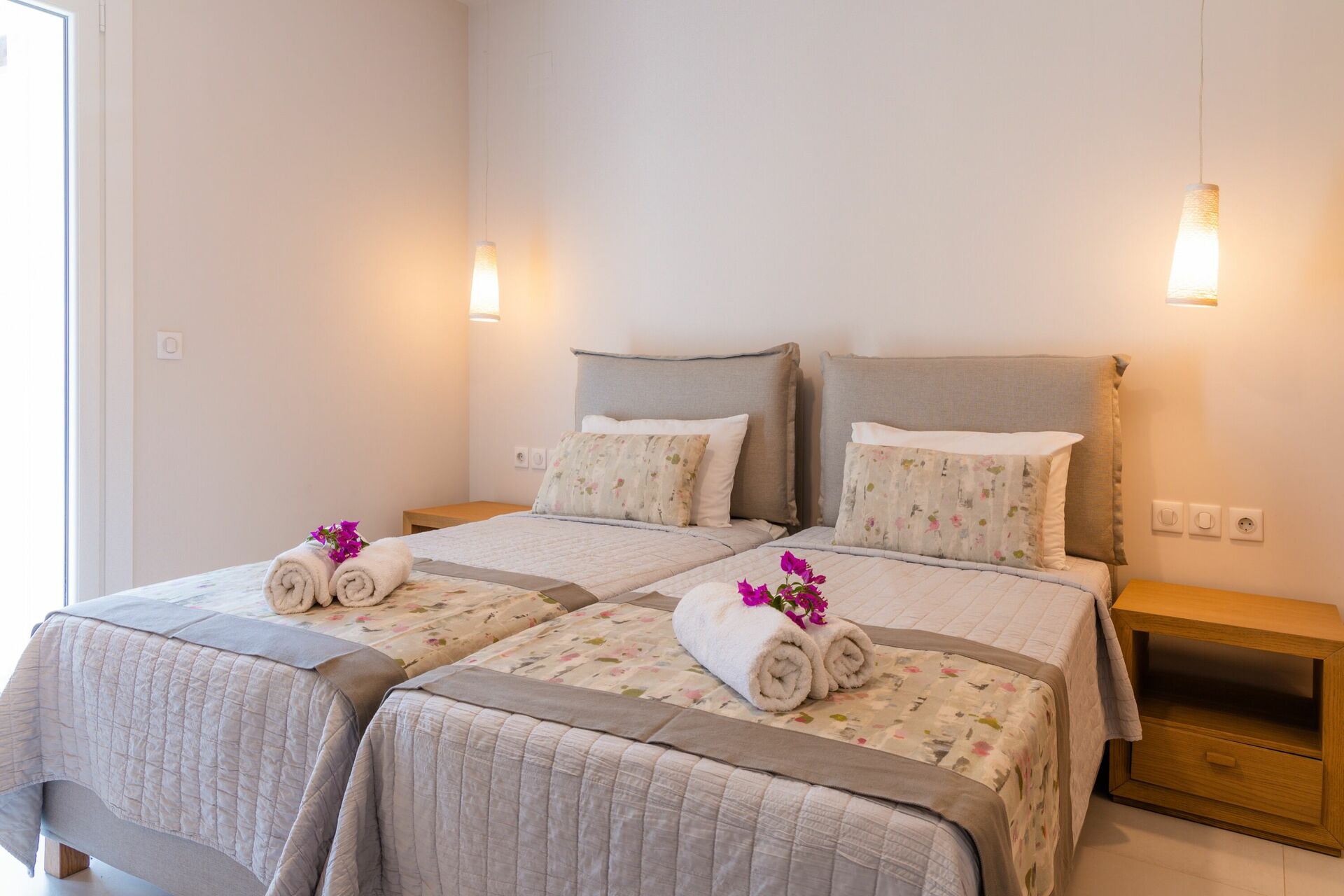 A lovely villa within walking distance of the beautiful Agni beach (bit of a hill on the way back up!) and it’s lovely restaurants. A really restful place, the pool area is great and a perfect view of the ocean from upstairs on the terrace. Comfortable beds and bedrooms downstairs, which meant we never needed to use the aircon despite it being 30 degrees most evenings!