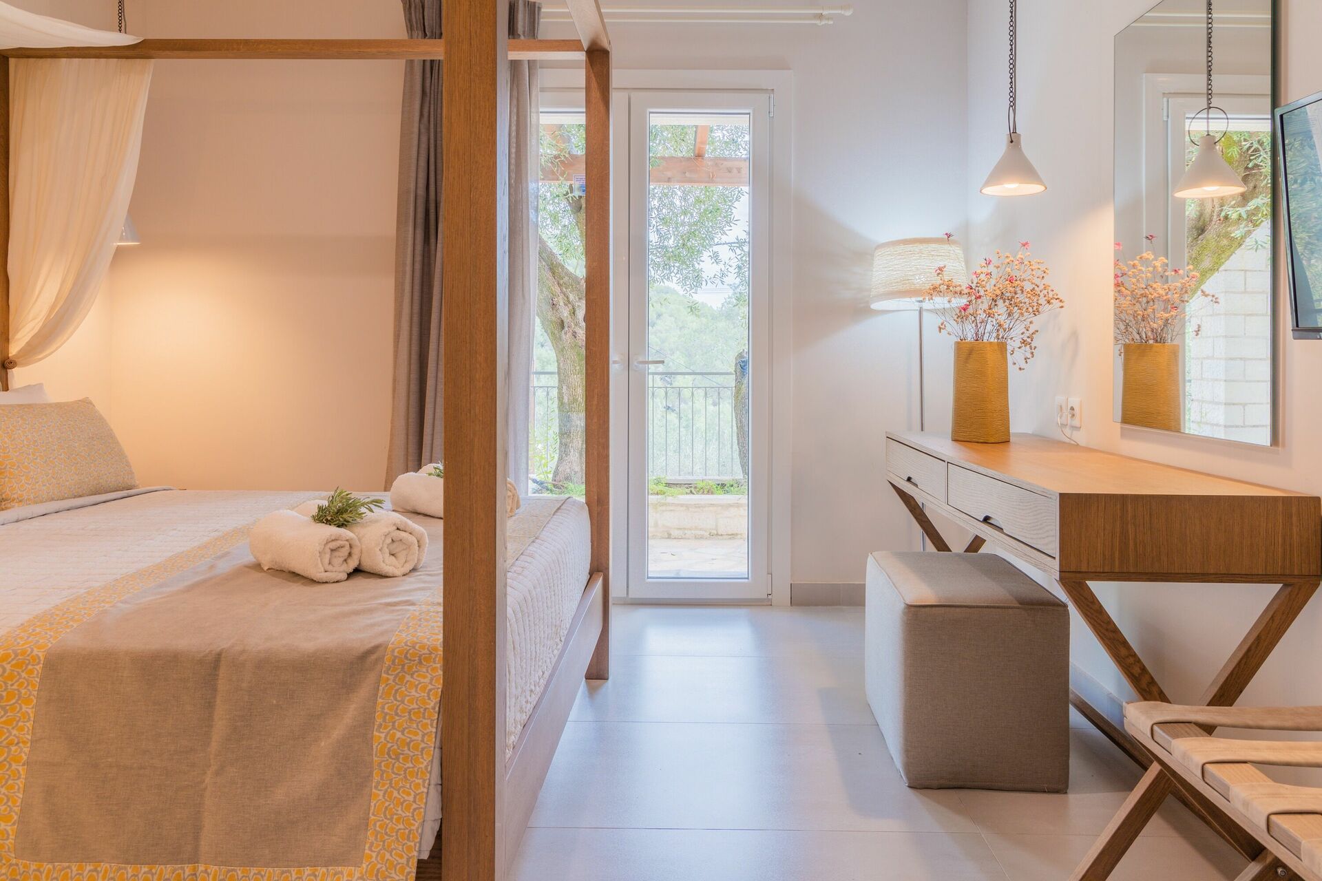 Distances: Agni (plage équipée et restaurants en bord de mer) à 650 m ; minimarket à environ 2,5 km ; Kalami à 4 km ; Kassiopi à 11 km ; Acharavi à 22 km ; Corfu Town à 27 km.