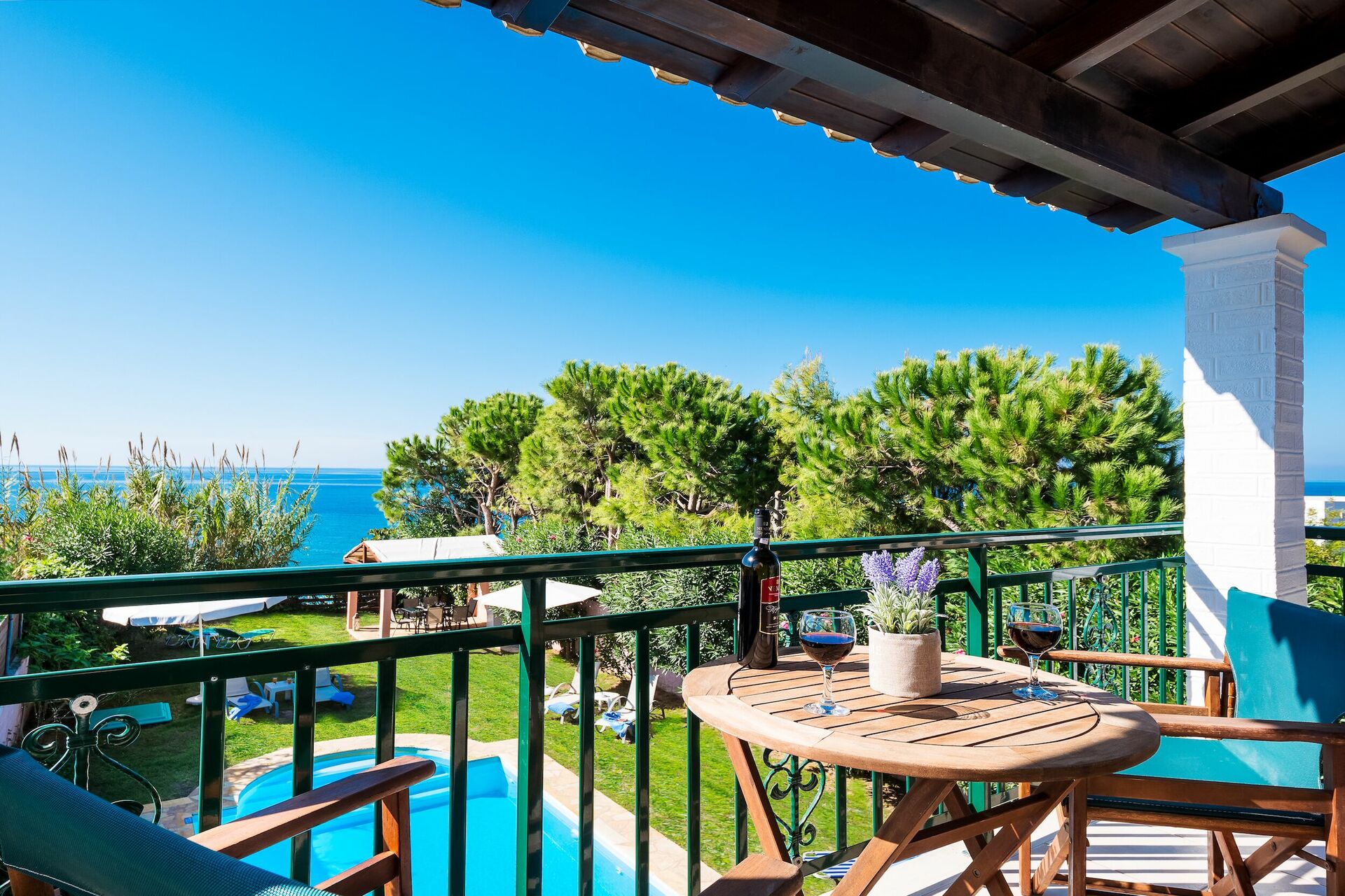 Beautiful view. Nice small private beach which is only shared with the neighboring villas.