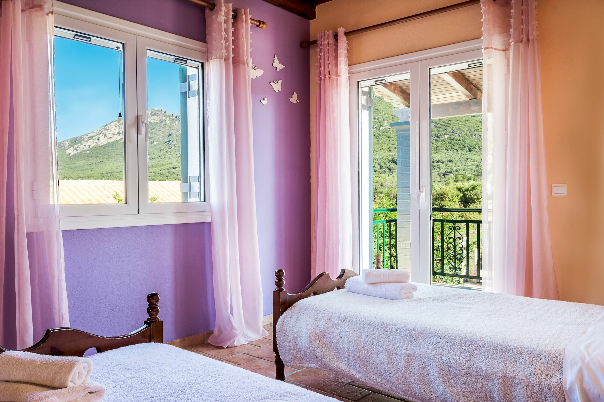 Distances: plage la plus proche Sikidi: à 500 m, taverne la plus proche: à 1100 m, commerces les plus proches: à 4 km (dans le village d’Agios Matheos), ville de Corfou (aéroport et port): à 25 km.