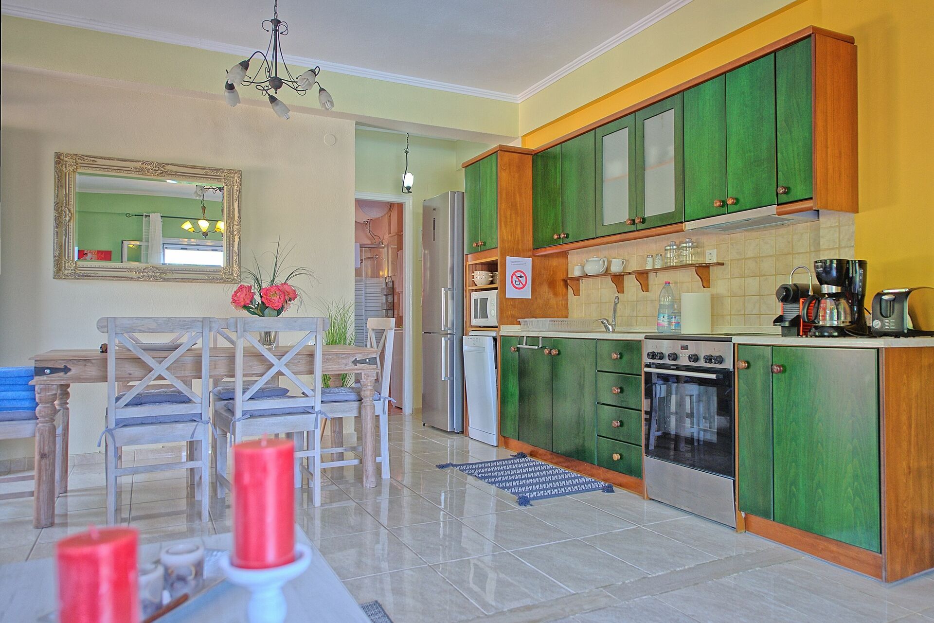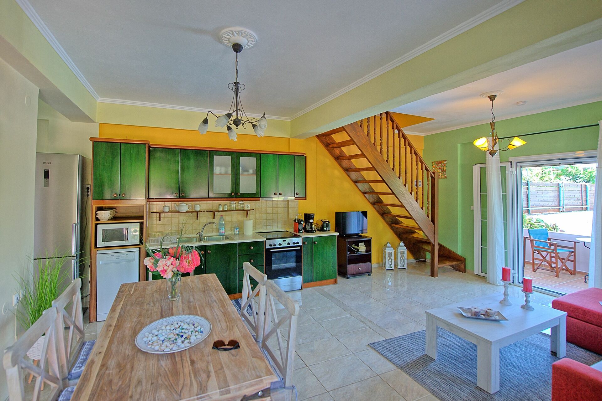 A beautiful place with the mountains behind and direct access to what was a lovely beach. Brilliant outdoor facilities where you could barbecue and watch the sun set. Kitchen was well equipped and the house had a great set up for us all. Quiet area but shops close by for all your needs. You will need a car. We had a wonderful stay and we were very lucky with the weather. Hope to return next year.