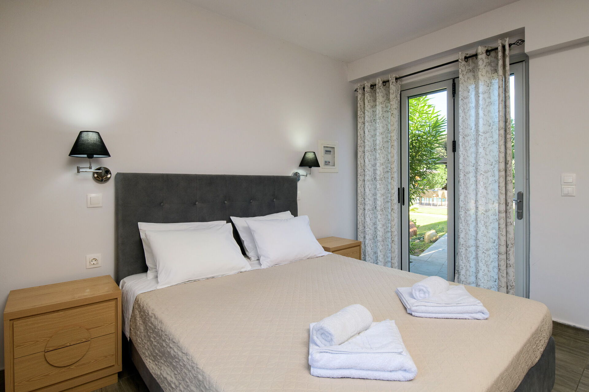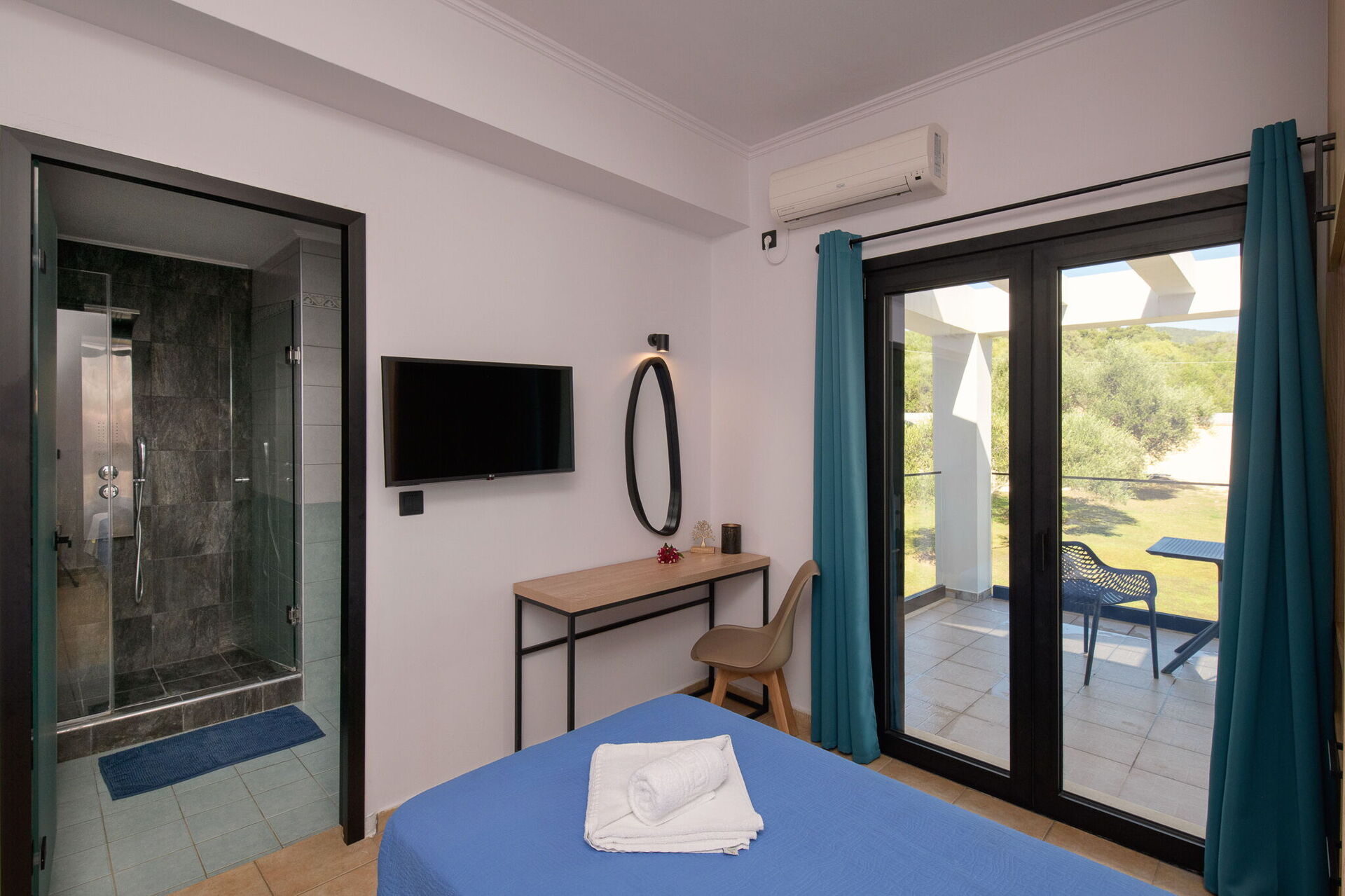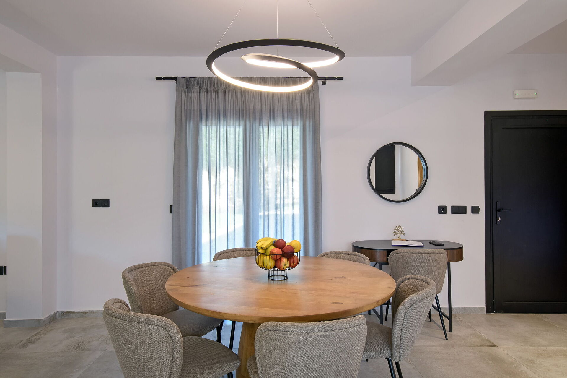 Cette belle demeure se trouve à courte distance de la mer et de la fameuse plage de Chalikounas, une somptueuse étendue de sable doré qui sépare le lac Korission de la mer, destination très prisée des surfeurs et des amateurs de Kitesurf grâce à son exposition favorable au vent.