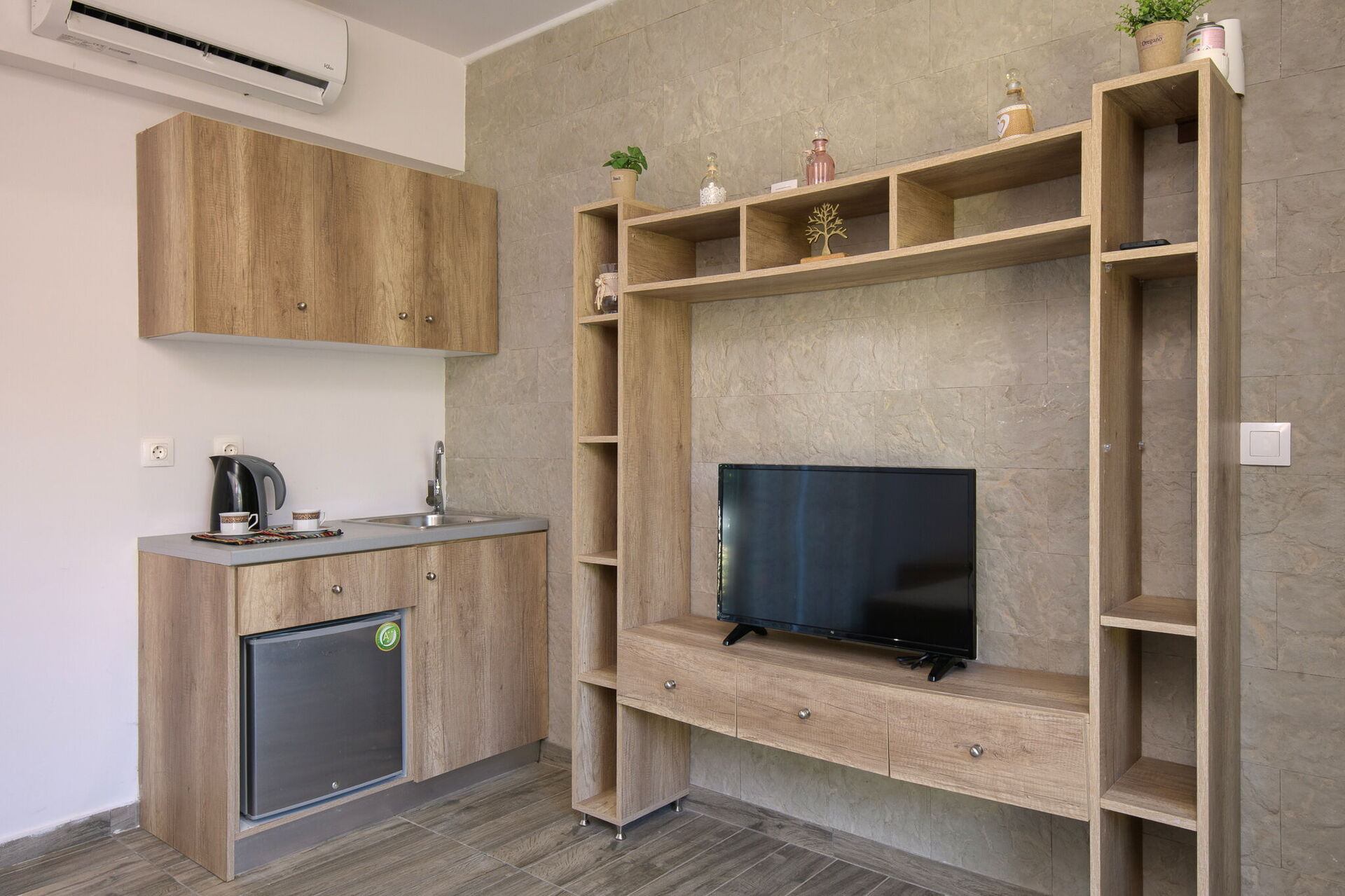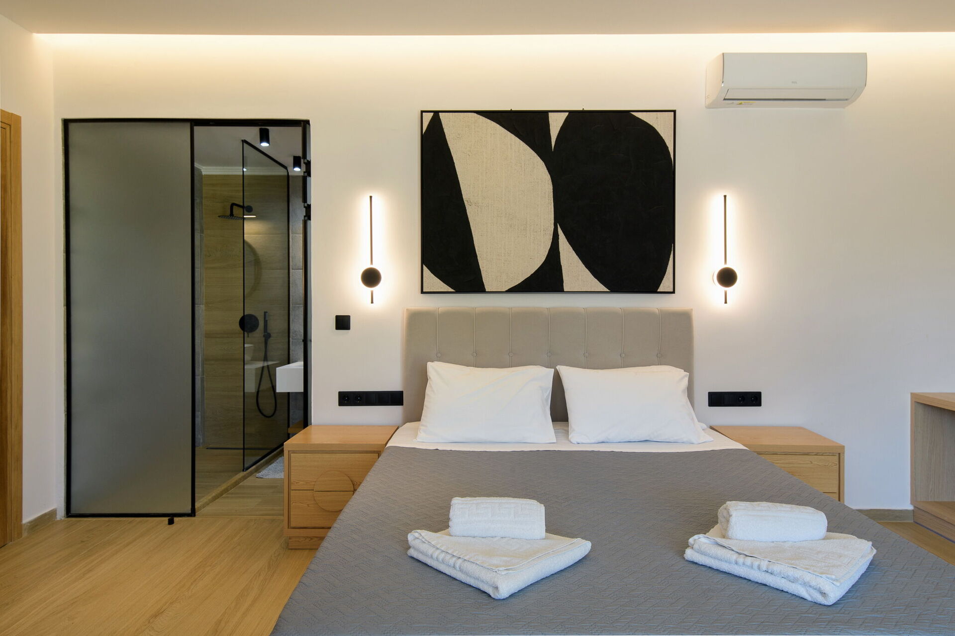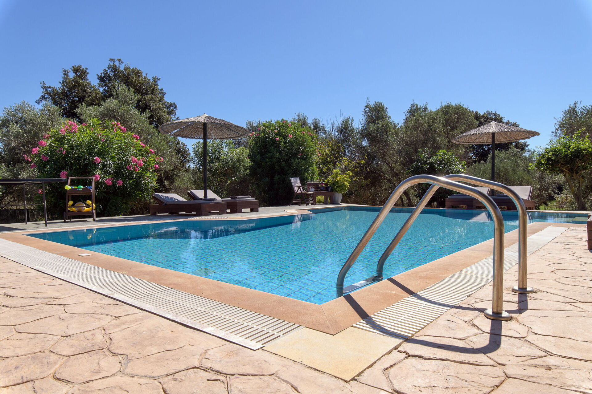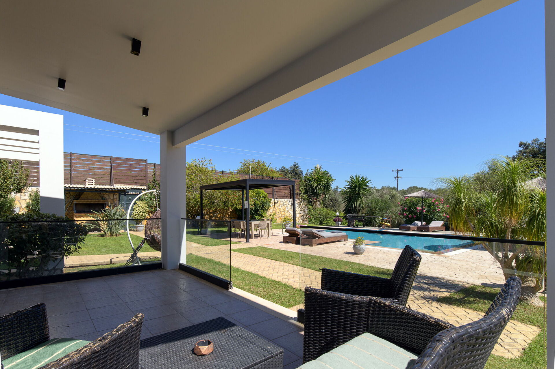 Les espaces extérieurs offrent des aires communes qui permettent aux hôtes de passer un agréable séjour en famille ou entre amis en se relaxant sous le gazebo équipé pour les repas en plein air ou dans le vaste espace piscine avec solarium, idéal pour des moments inoubliables sous le soleil de Corfou.