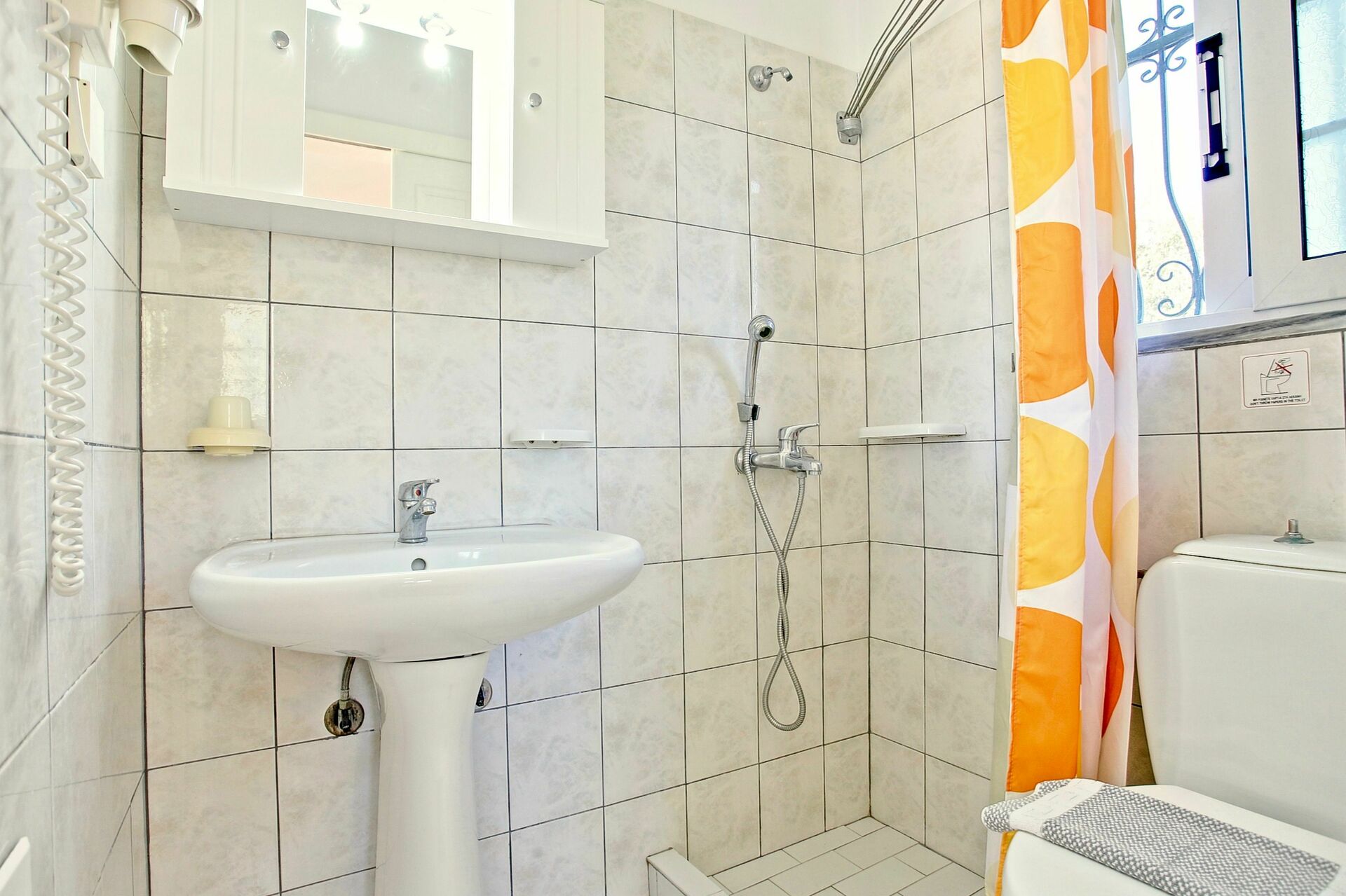 Premier étage : une chambre double (air conditionné), une chambre avec 2 lits à une place (air conditionné), salle de bains avec douche.