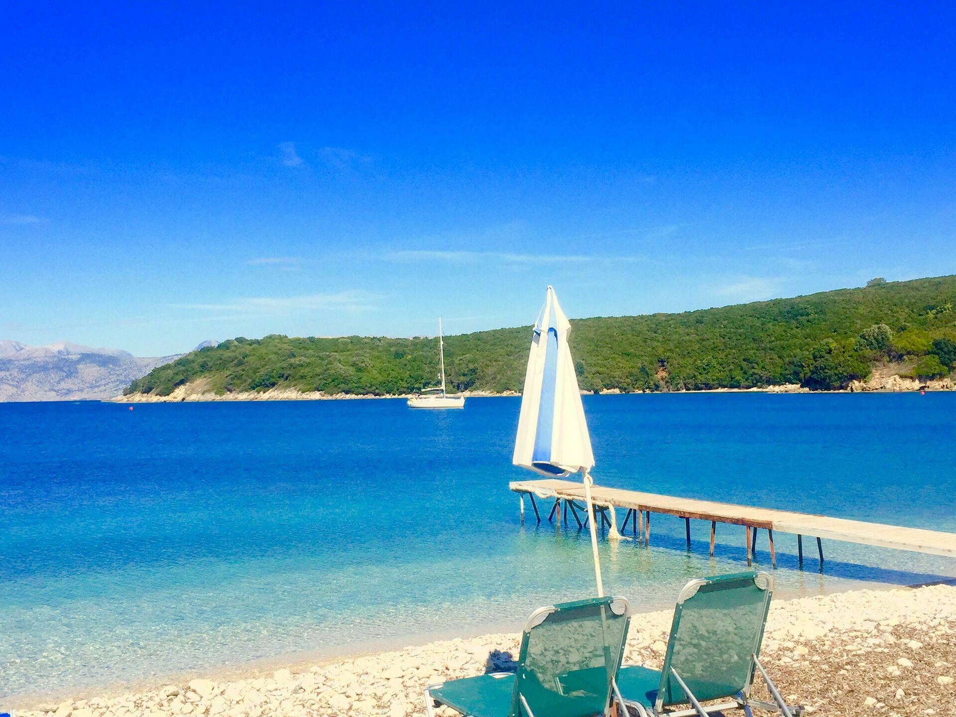 There are a couple of beaches within 10 minutes walk, the nearest accessed via a track opposite the villa, access there is bit push chair unfriendly though. Avlaki beach down the road to the right is though, and has sun loungers available. Do go further along for the cheapest ones though! Well worth a visit is the fantastically sandy Apraos beach. Great for young kids and loads of shallow warm water. It's about a 10 minute car journey.