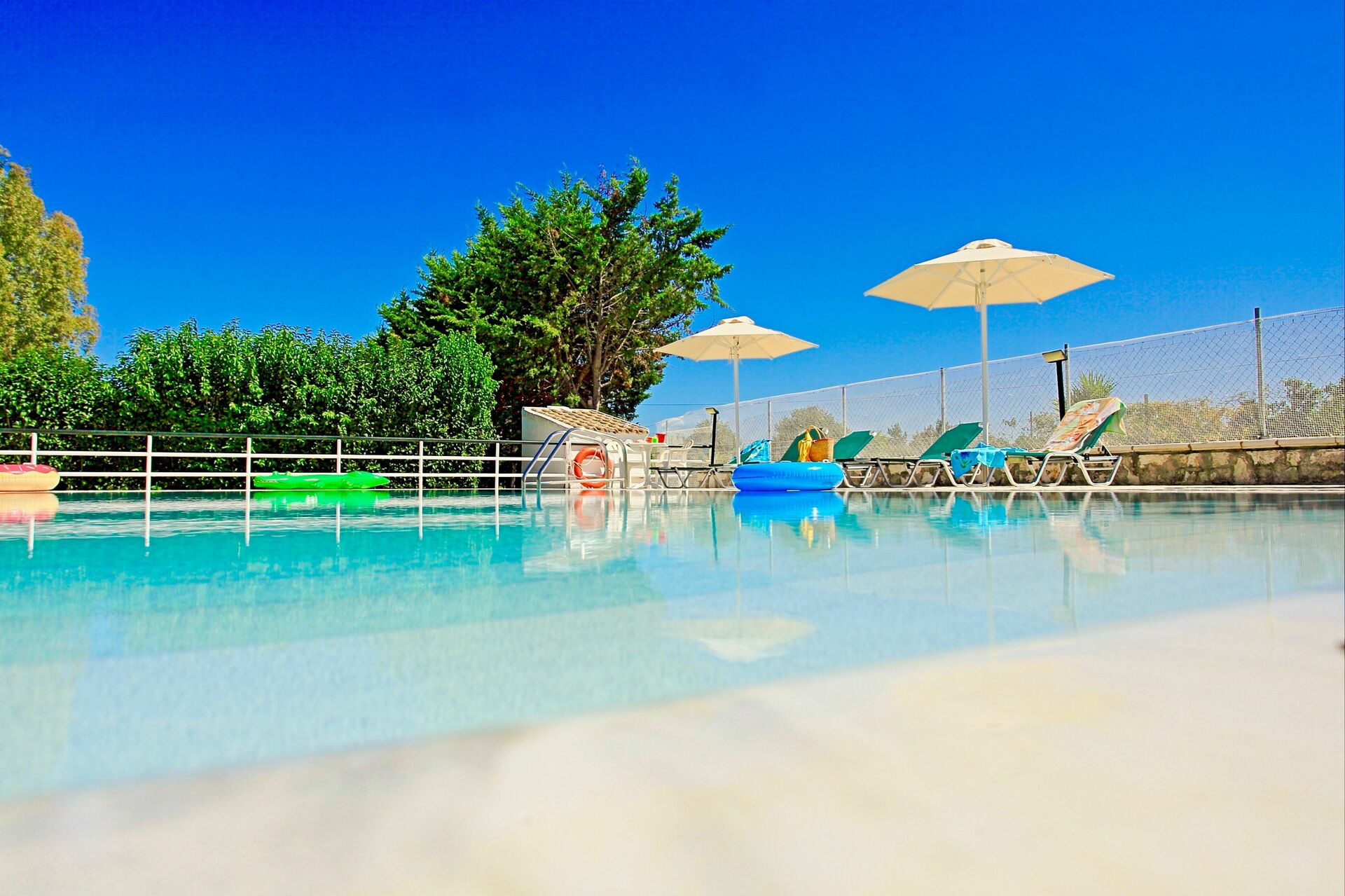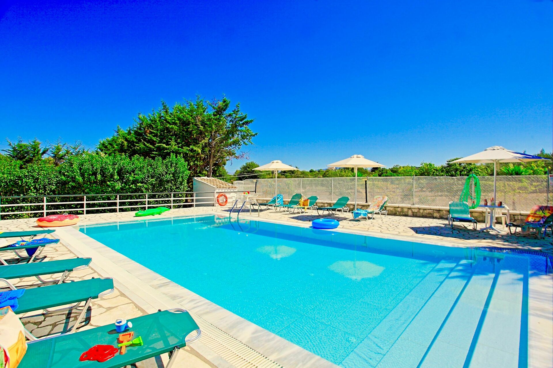 Lovely villa, in a good location, the swimming pool was excellent with numerous sun beds and chairs. only negative points was the beds were hard and slightly uncomfortable, and kitchen appliances could do with updating, but overall we were happy with the villa.