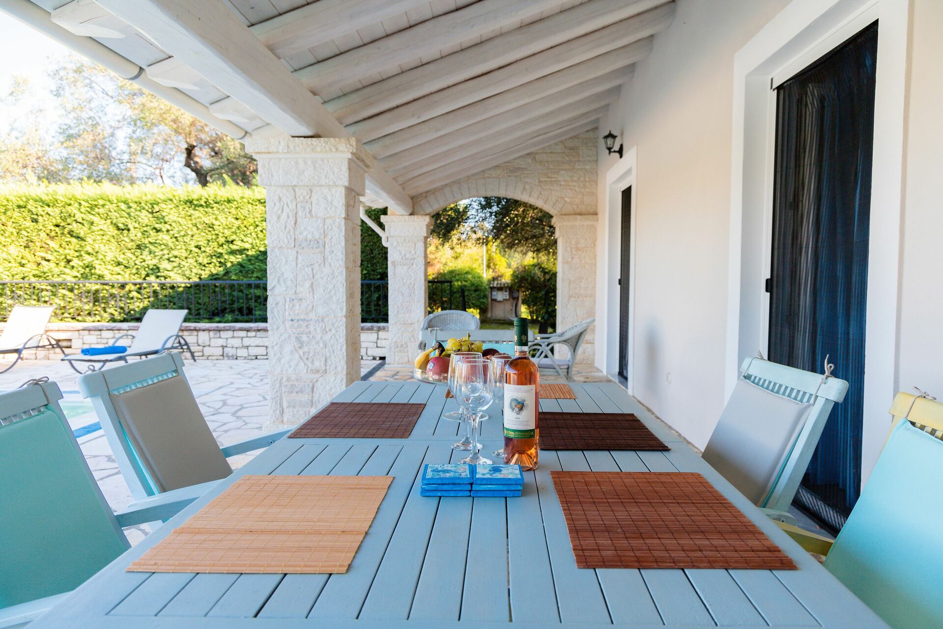 Fantastic well maintained villa in a great location. Quiet neighbourhood, but easy to walk to bars/restaurants/shops in Kassiopi. There are very pretty beaches nearby.