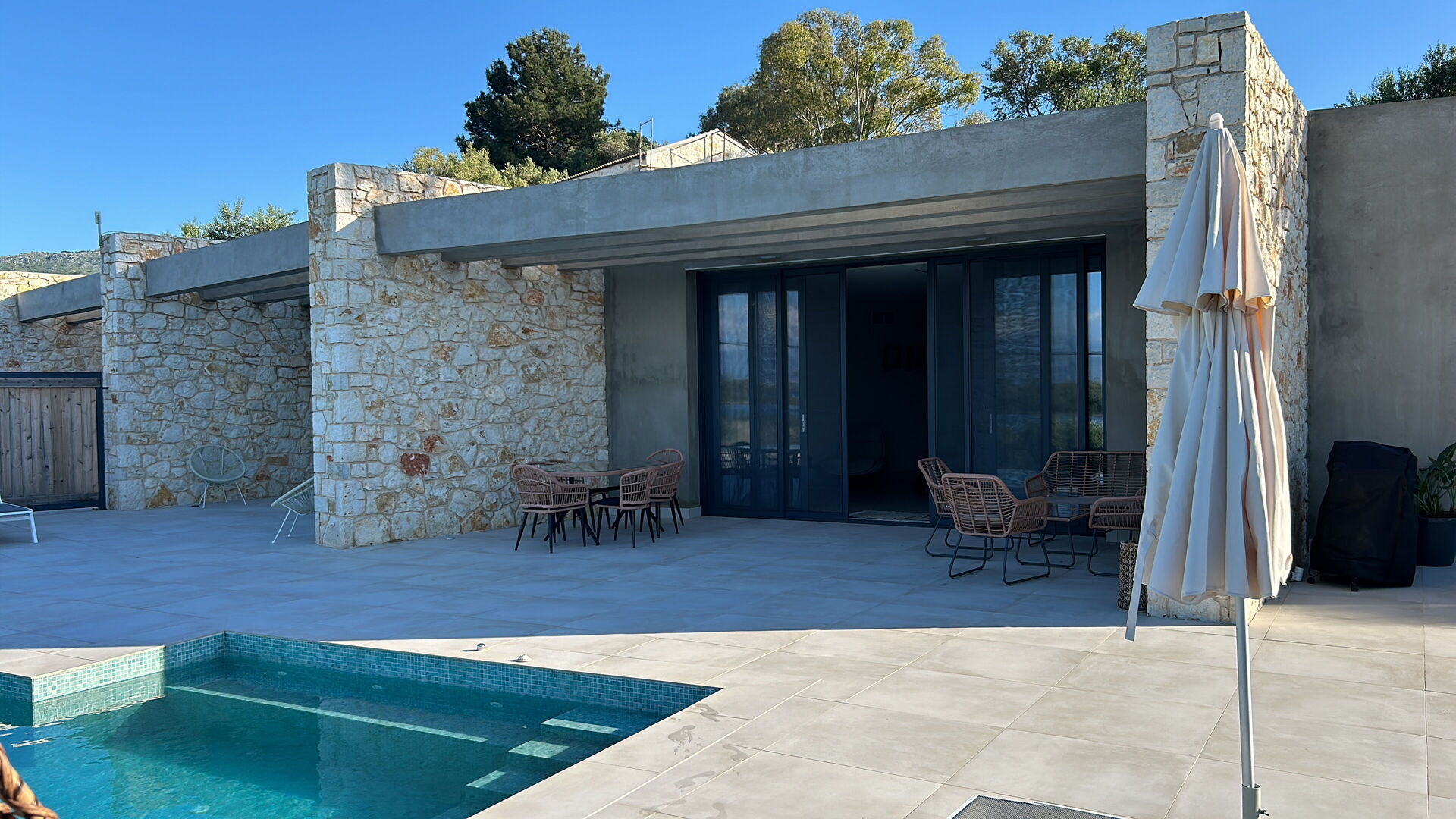 We had a perfect experience! Brand new villa, clean, modern and tidy. Hosts thought about everything to make you comfortable. Great pool with the view. Quite remote from everyone so you will be on your own, very quiet. Rare find in Corfu!