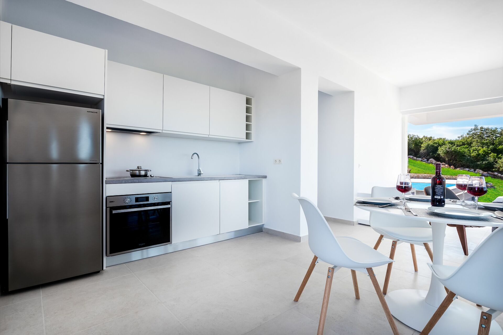 A l’intérieur un coin repas pour les invités ainsi qu'un barbecue sont disponibles pour de délicieux repas en plein air. La piscine privée mesure 7,5 m x 5,7 m (profondeur 1,5 m) et est magnifiquement éclairée la nuit (accès par des marches romaines). Grâce à sa conception astucieuse, il offre une excellente intimité et constitue le lieu idéal pour se rafraîchir ou prendre un verre admirer le soleil qui se couche dans la mer.