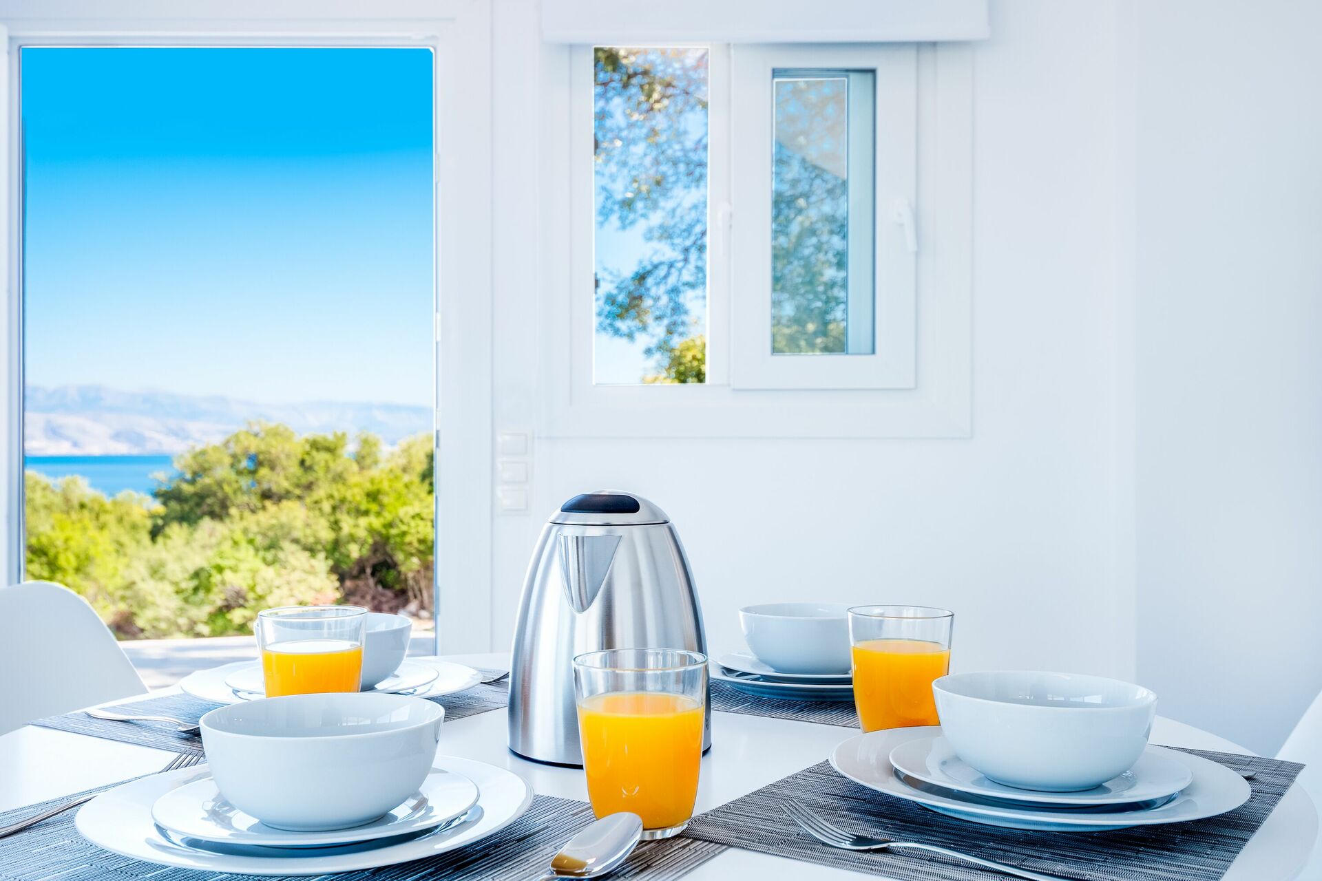 Really great place with stunning views, lovely pool and excellent air conditioning! Notes - the villas are split into two apartments which means you get two kitchens, two living rooms and two outdoor areas; great perk. The hosts left a bottle of wine on arrival which was a lovely touch. There is plenty of spare towels and bedding etc. Pros - great space for entertaining, stunning and well-maintained property, comfy beds, good showers, and good location (secluded but within 10mins walk of a few shops and restaurants) Cons - the hill up to the villas is quite steep but still perfectly manageable, getting a taxi into the closest towns can be a bit tricky at busy times (though this is true of most of Corfu) and there were quite a lot of insects when you say out at night with the lights on. In summary a fantastic place I wouldn't hesitate to recommend!