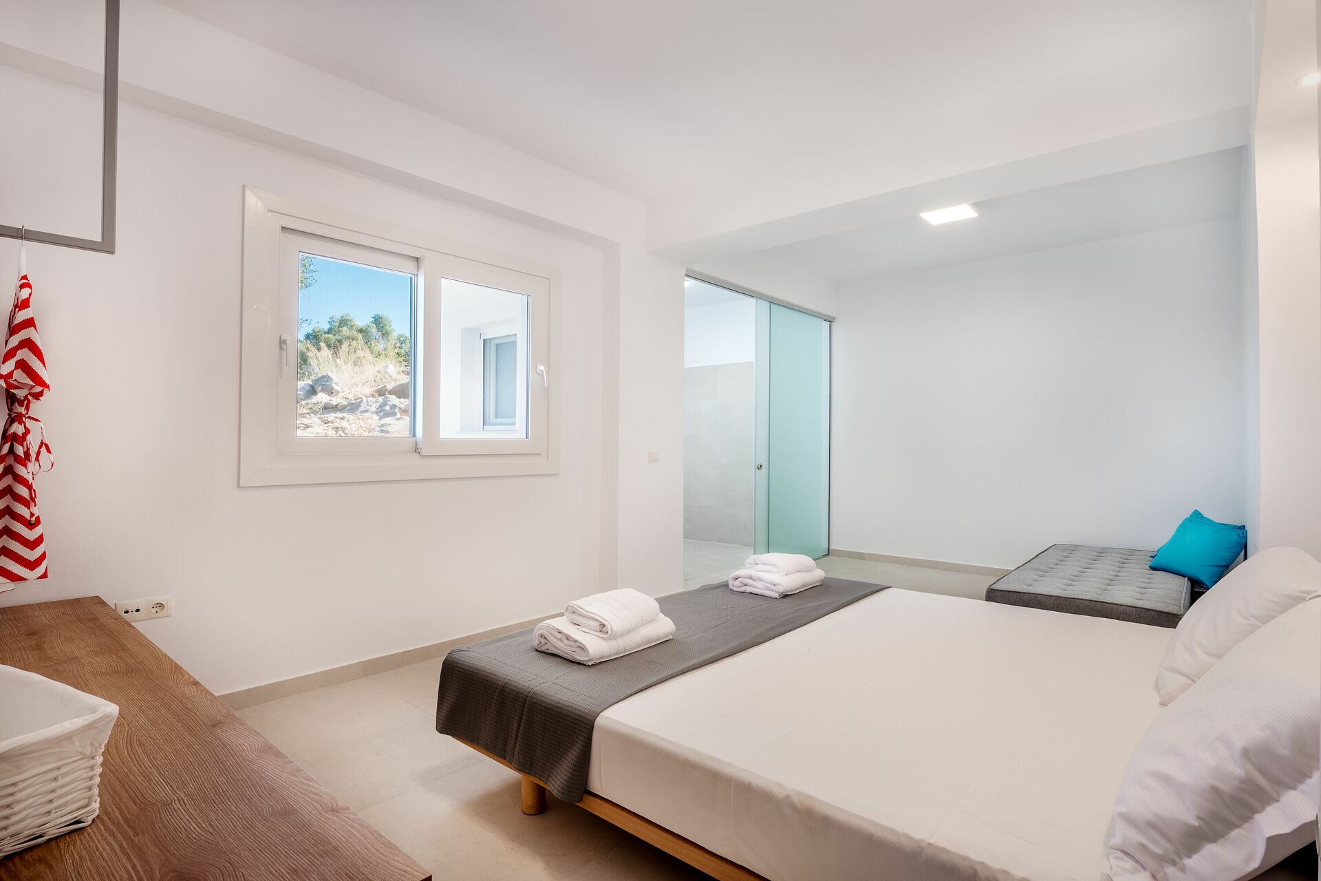 Avec ses 4 chambres à coucher, ses 4 salles de bain, ses vastes salons et patios ainsi que sa piscine privée, cette villa a tout pour plaire. La position surélevée (pourtant très proche d’incroyable plages) avec une vue panoramique à 180 degrés, offre le cadeau le plus étonnant de la nature: une vue panoramique imprenable sur la mer, le lever et le coucher du soleil.