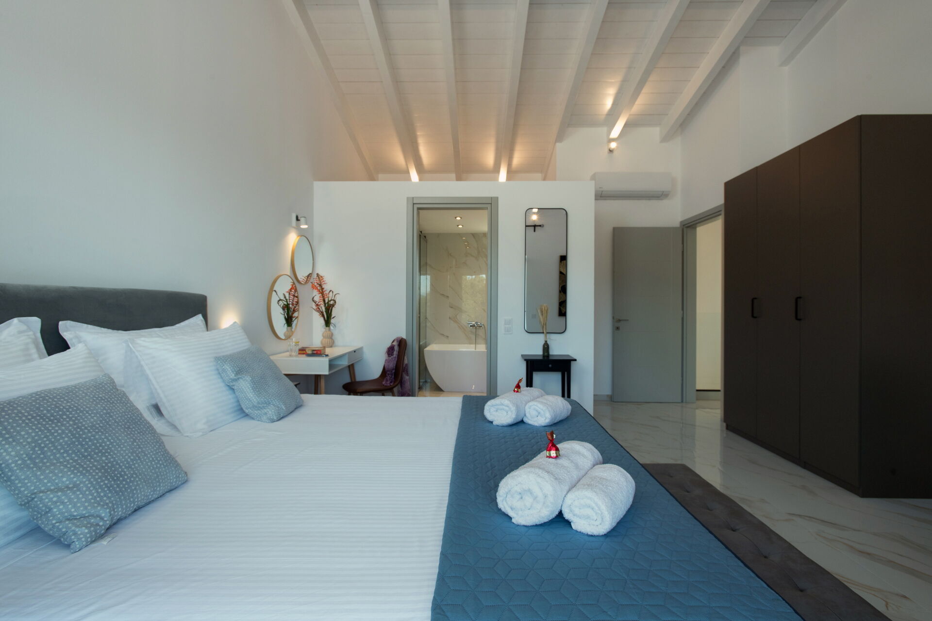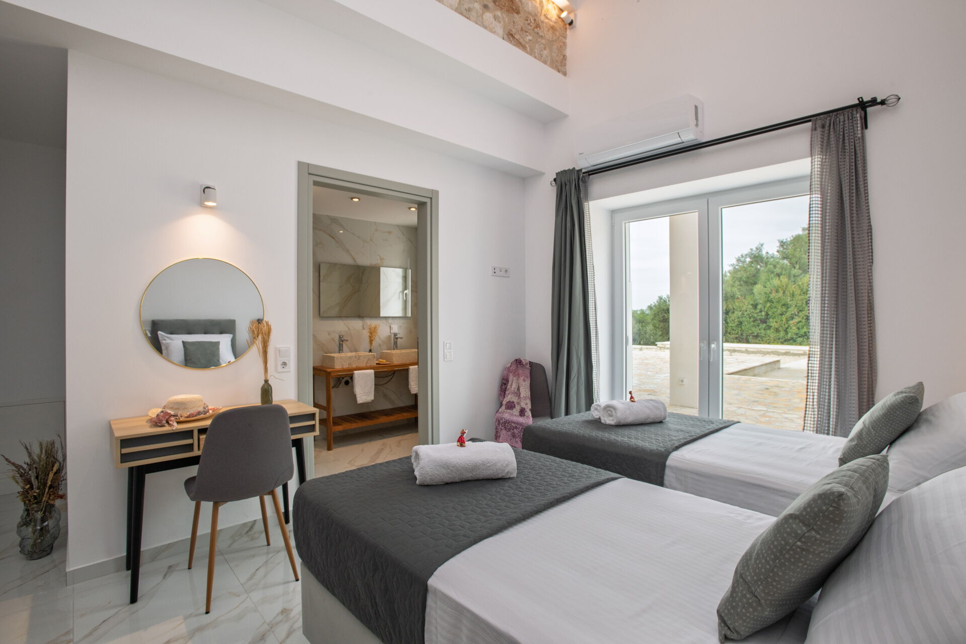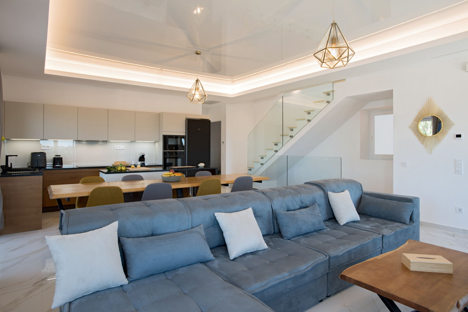 Cette villa en Grèce a été entièrement rénovée en 2025: les meubles sont modernes et l’ensemble de la maison est très confortable.