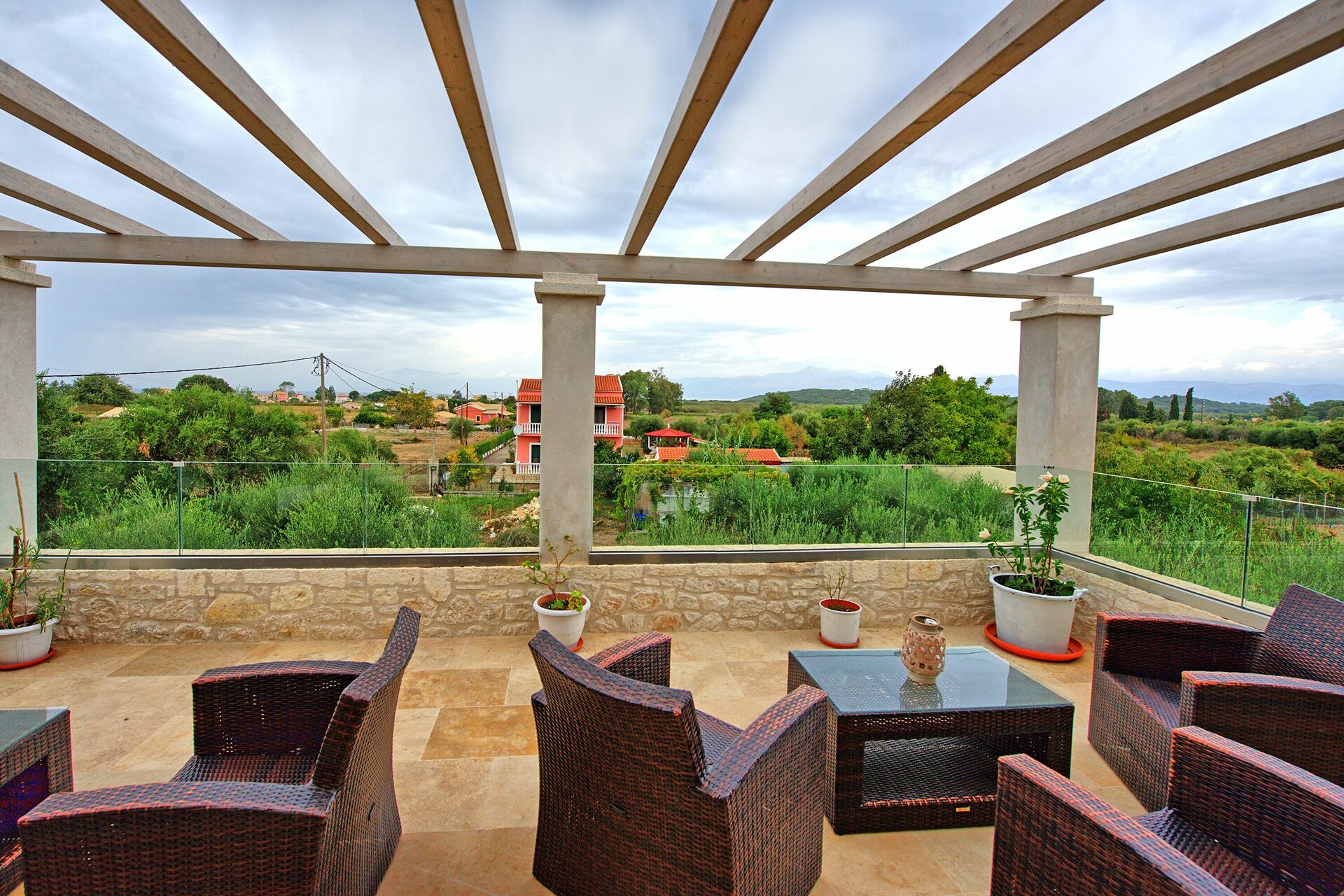 We had a fantastic holiday. Lovely, well equipped Villa in a peaceful area, beautiful views from several terraces. Very close to beautiful beach. Close to a small town. Good places to eat both near beach and in town. Highly recommend