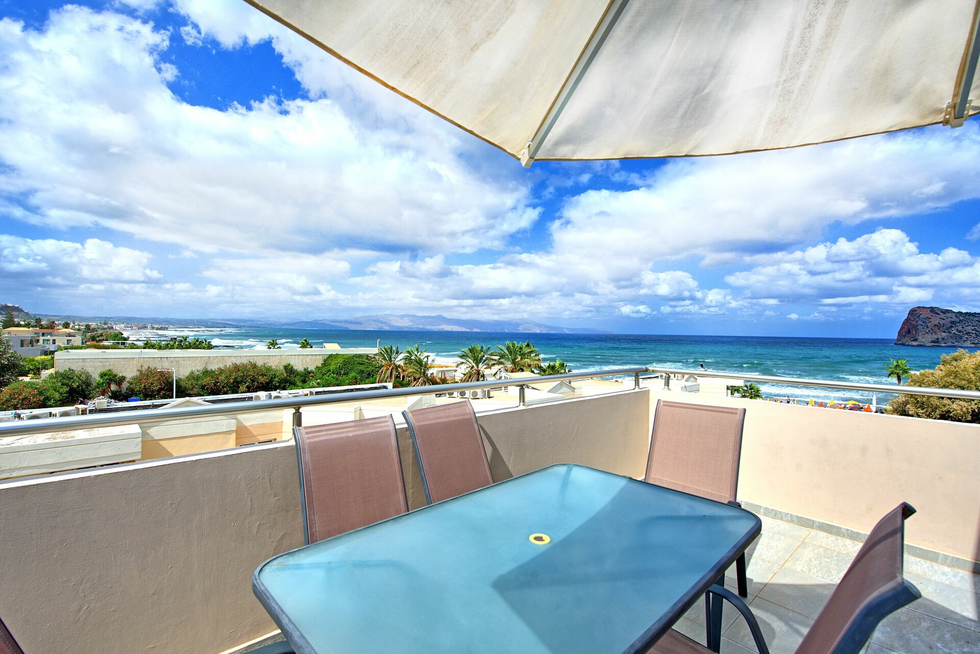 Distances: mer 100m, Agia Marina (toutes sortes de magasins) 100m, Cabana Mare Beach Club 300m, Chania 11km, aéroport 30km.