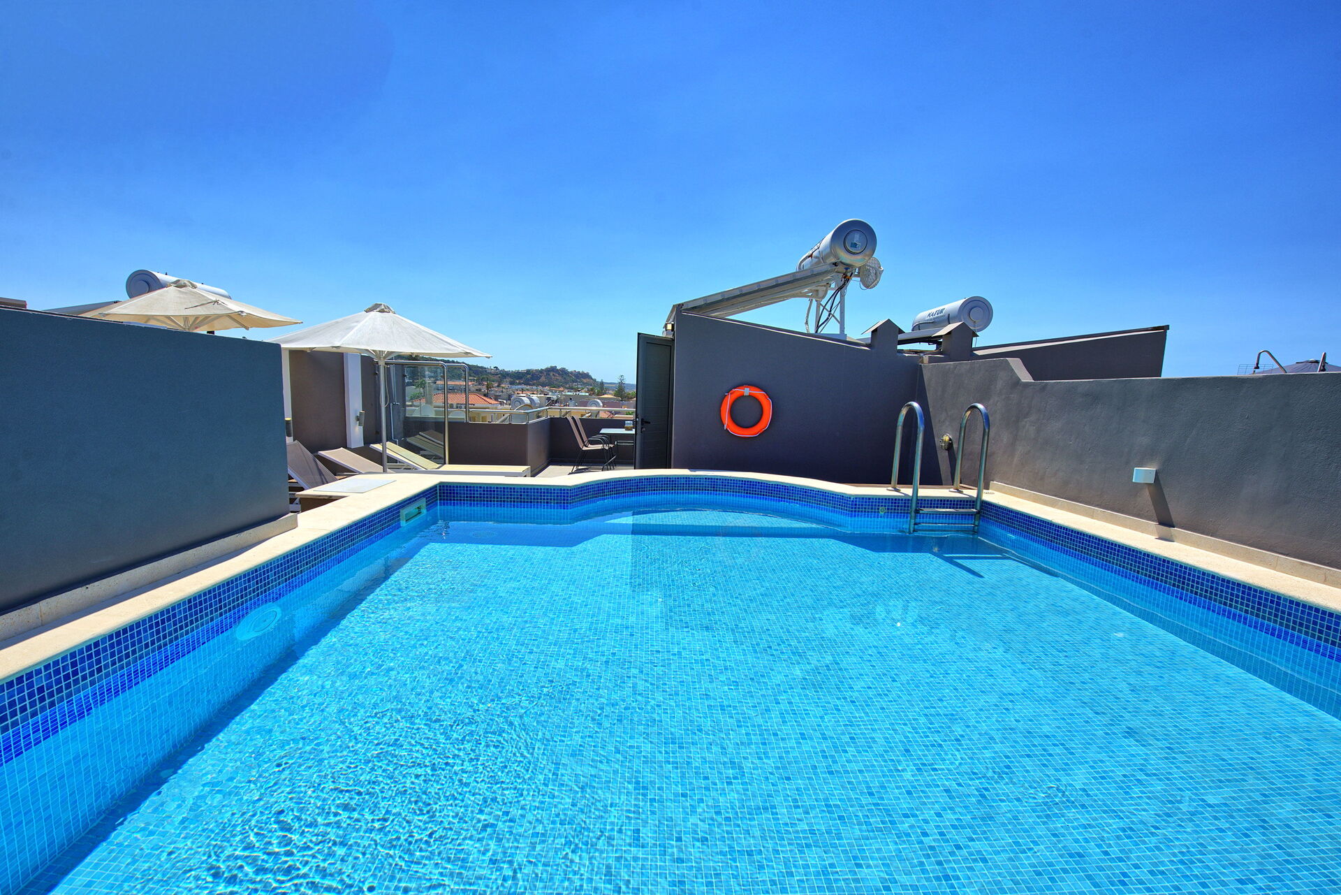 Troisième étage: terrasse panoramique avec piscine privée (profondeur : 0,55 mètres), douche extérieure, table et chaises pour manger en plein air.