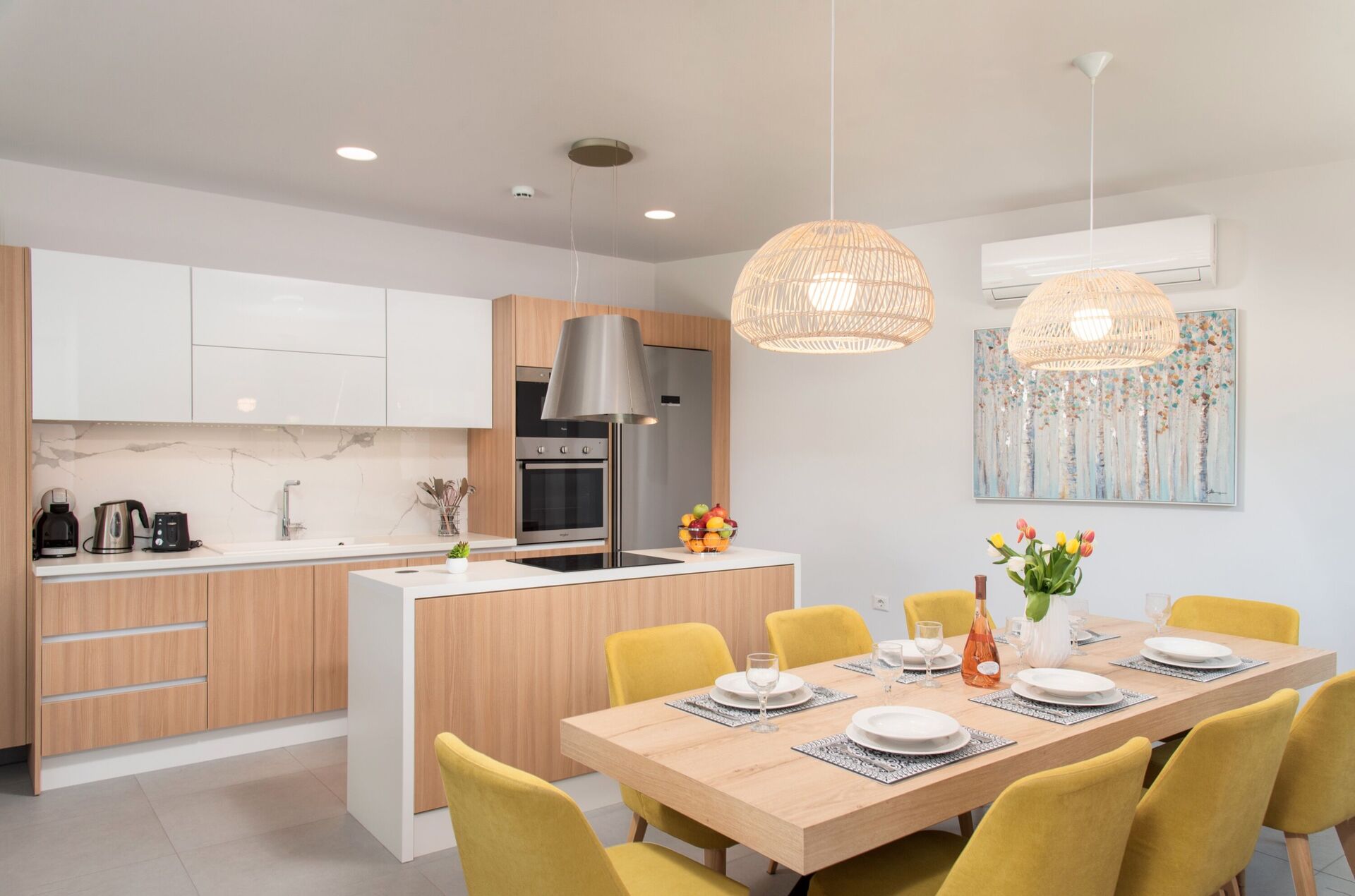 We were two families with four adults and two teenagers renting the house for one week in July. We especially liked that all the bedrooms had their own bathroom and the modern style. It is walking distance to everywhere, restaurants, supermarkets and the beautiful beach. Only thing we missed was some nice lounge furniture to hang out in in the evening.