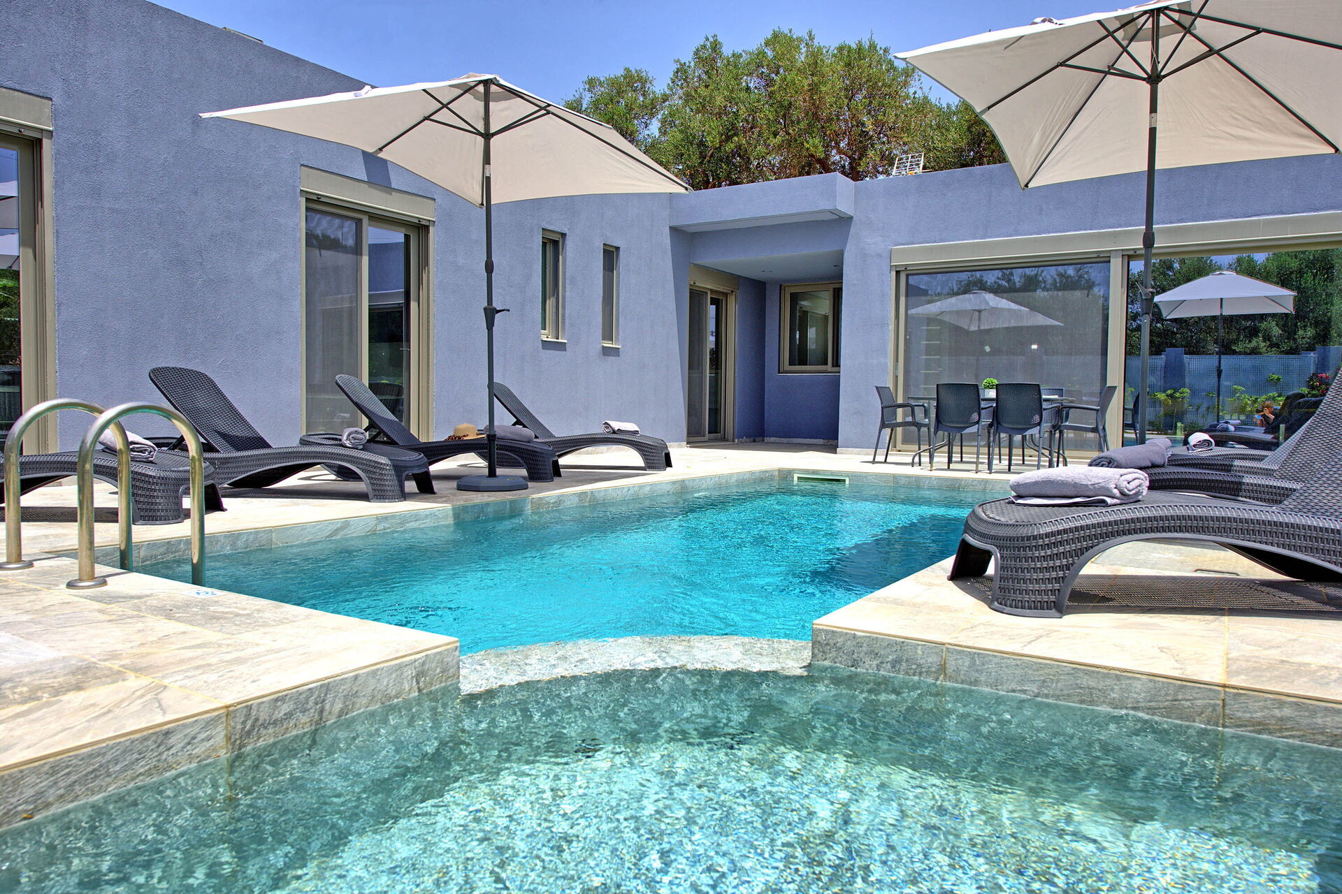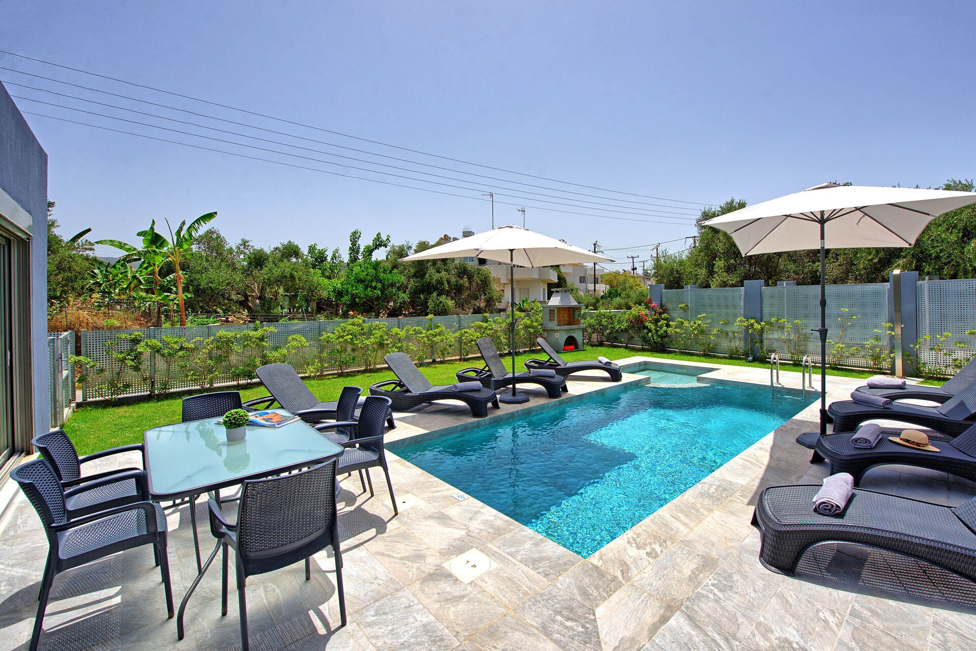 Villa Ampela est une toute nouvelle villa indépendante moderne avec jardin et piscine privée à louer en Crète, à seulement 600 mètres de la mer.