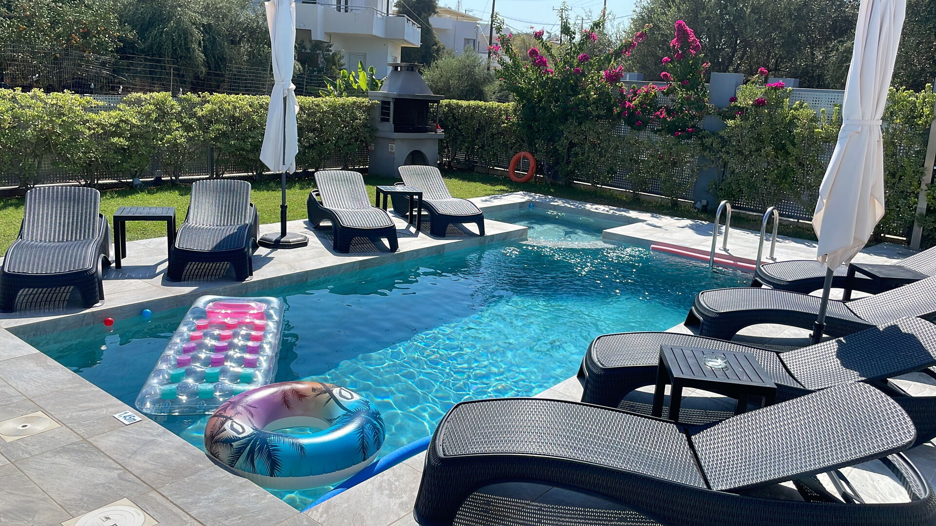 You can enjoy the entire day at the pool and have a barbecue in the evening, or walk a short distance to the beach and enjoy swimming in the sea, plenty of restaurants nearby , and supermarkets within walking distance.