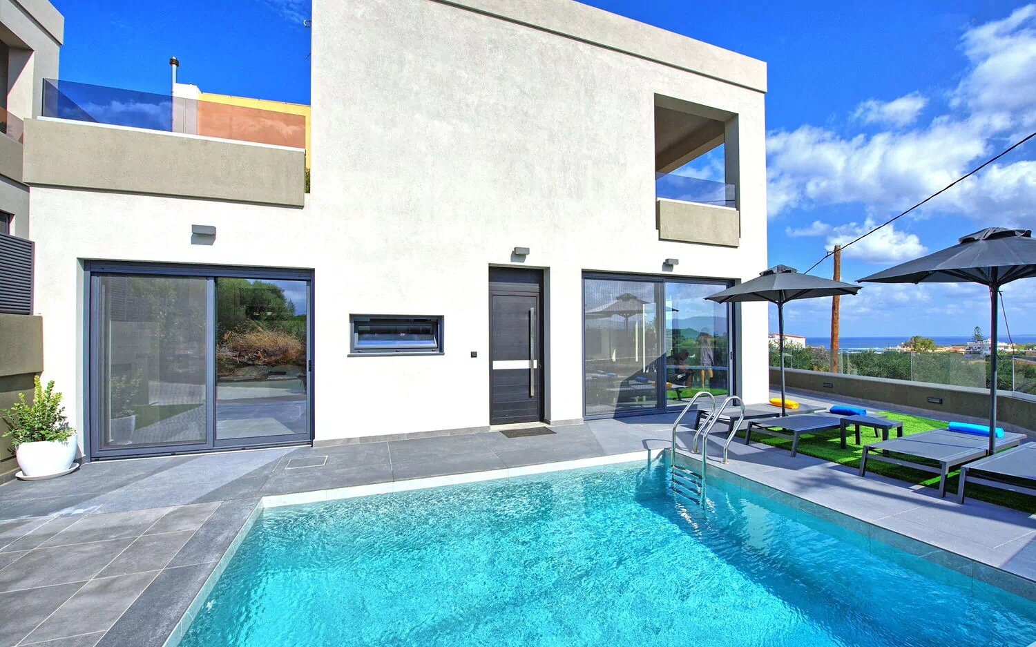 Villa Popi est une toute nouvelle villa moderne avec piscine privée à louer pour les vacances en Crète.