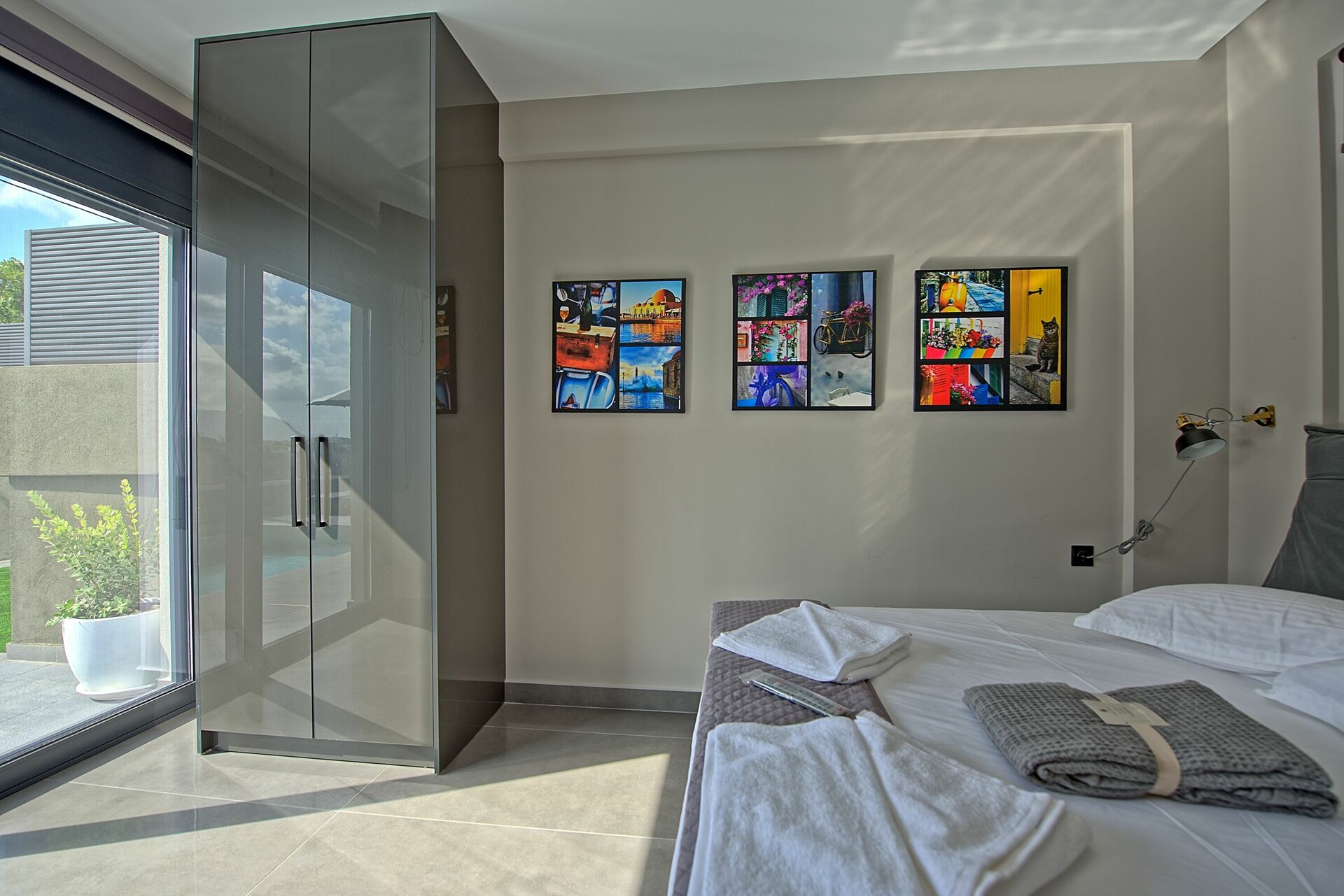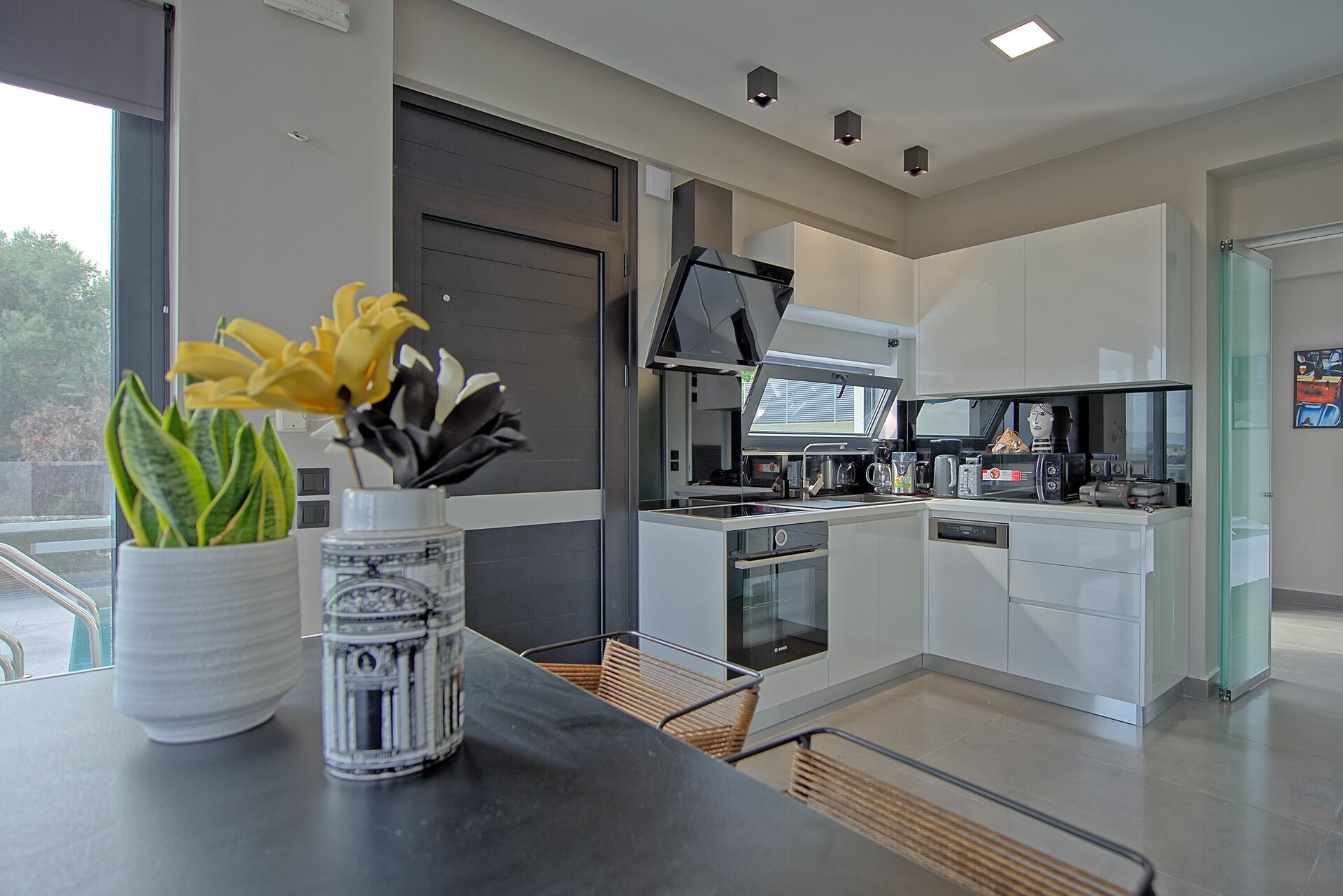 very modern villa with a lovely view of Chania. We didn’t rent a car and walked to the seafront which was doable but needed the pool afterwards. There was a bit of a problem with ants in the kitchen during our stay.